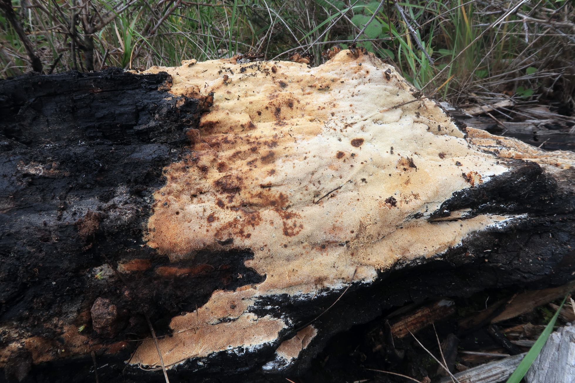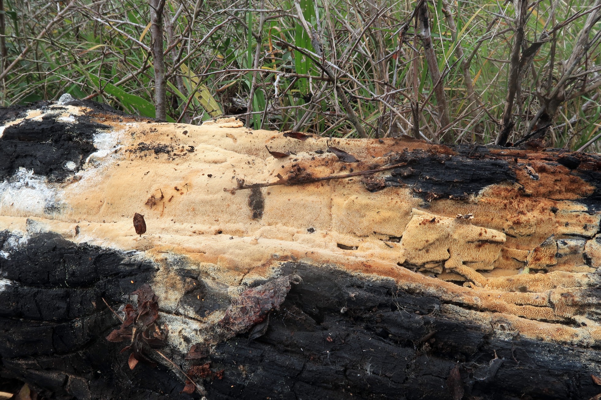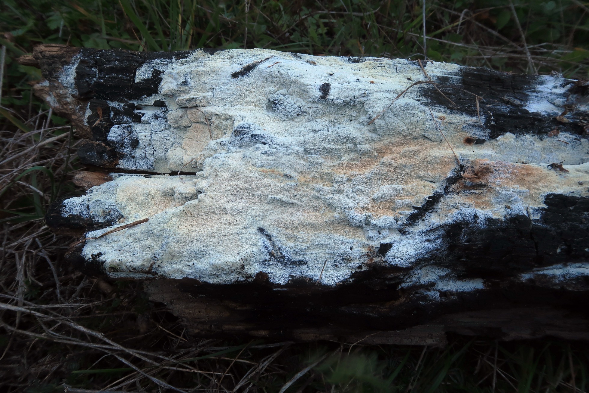 Una Antrodia fotografiada el 6 de diciembre del pasado año, brotando sobre la superficie de un tronco completamente carbonizado de pino.