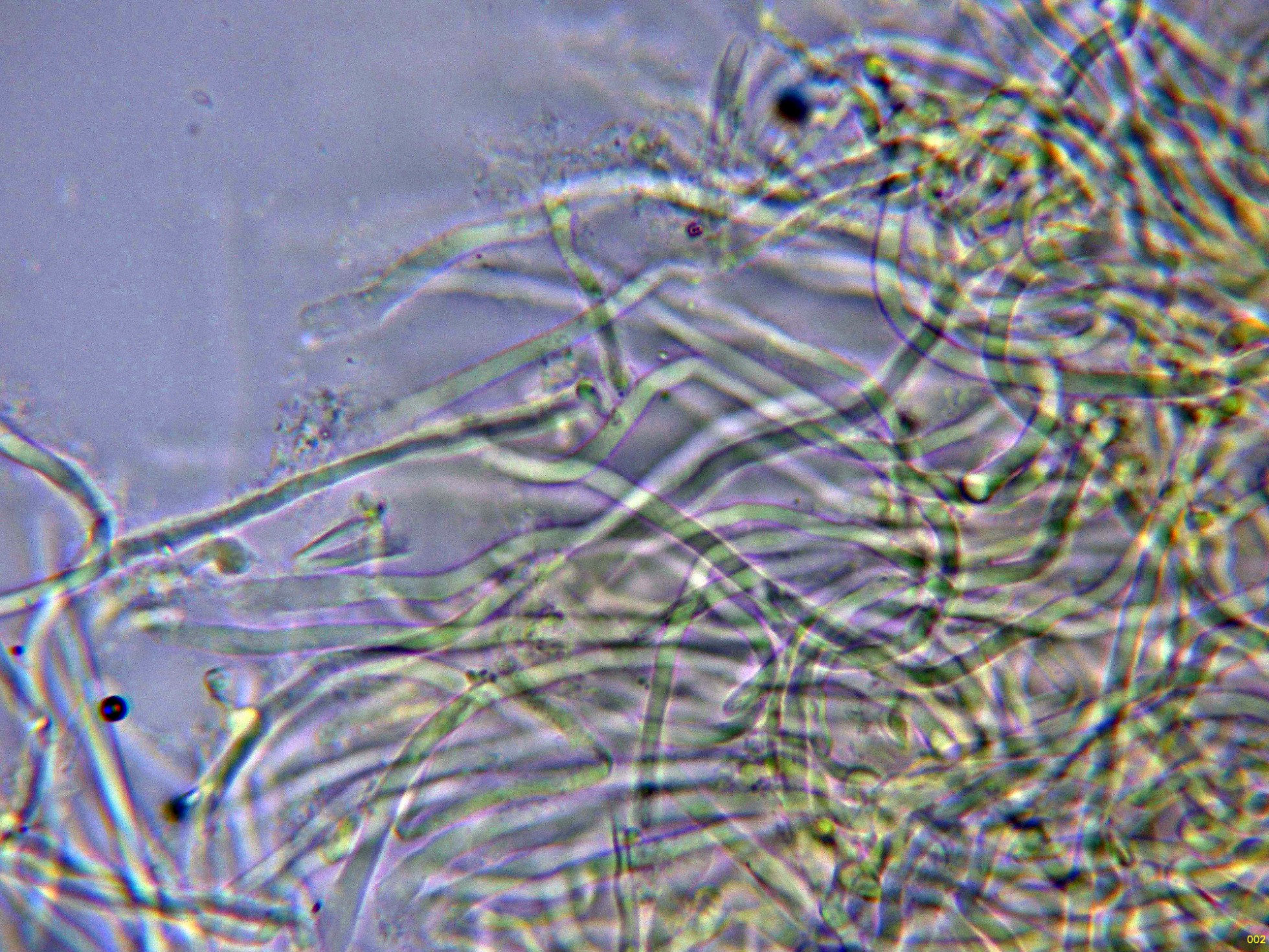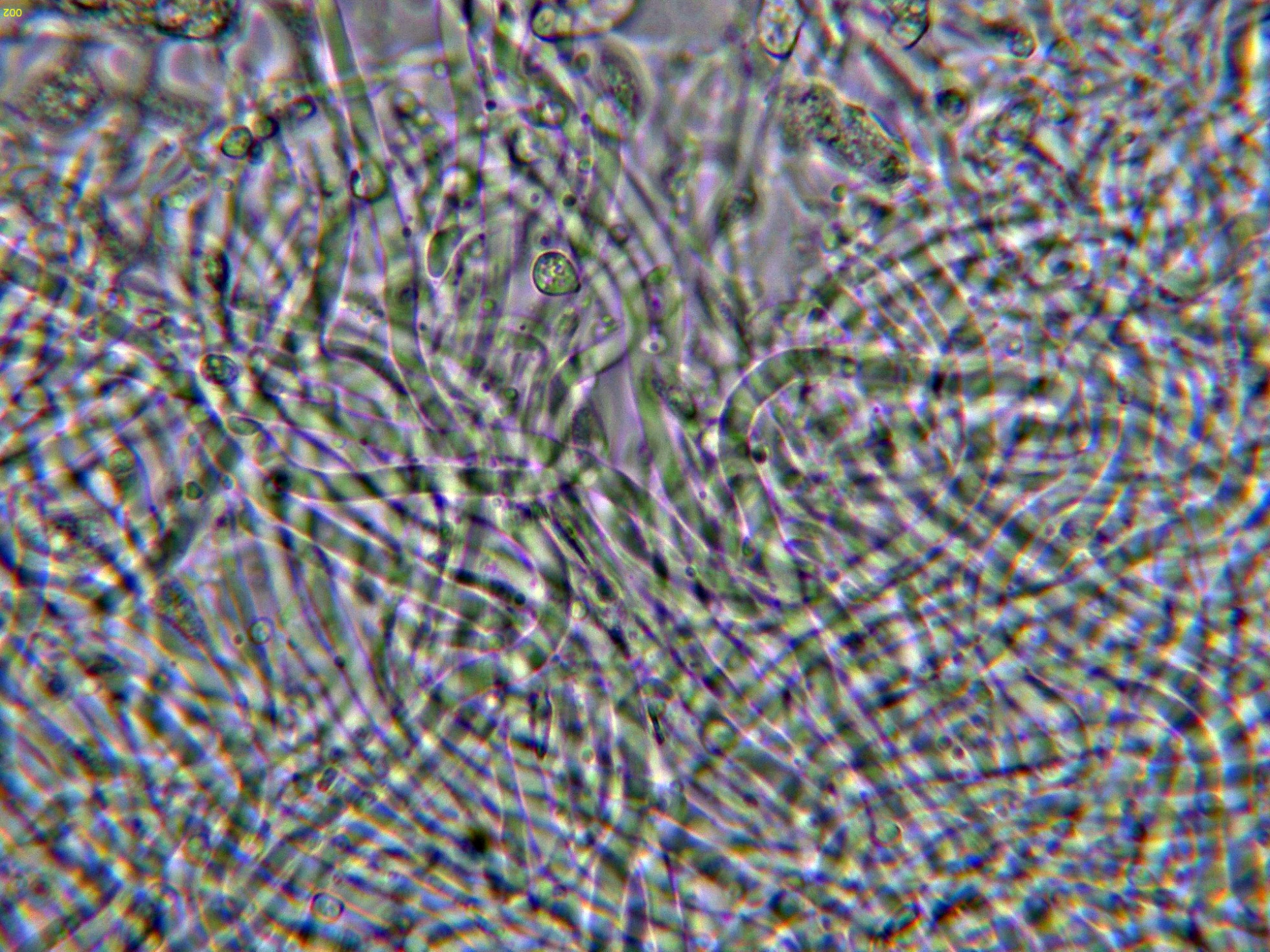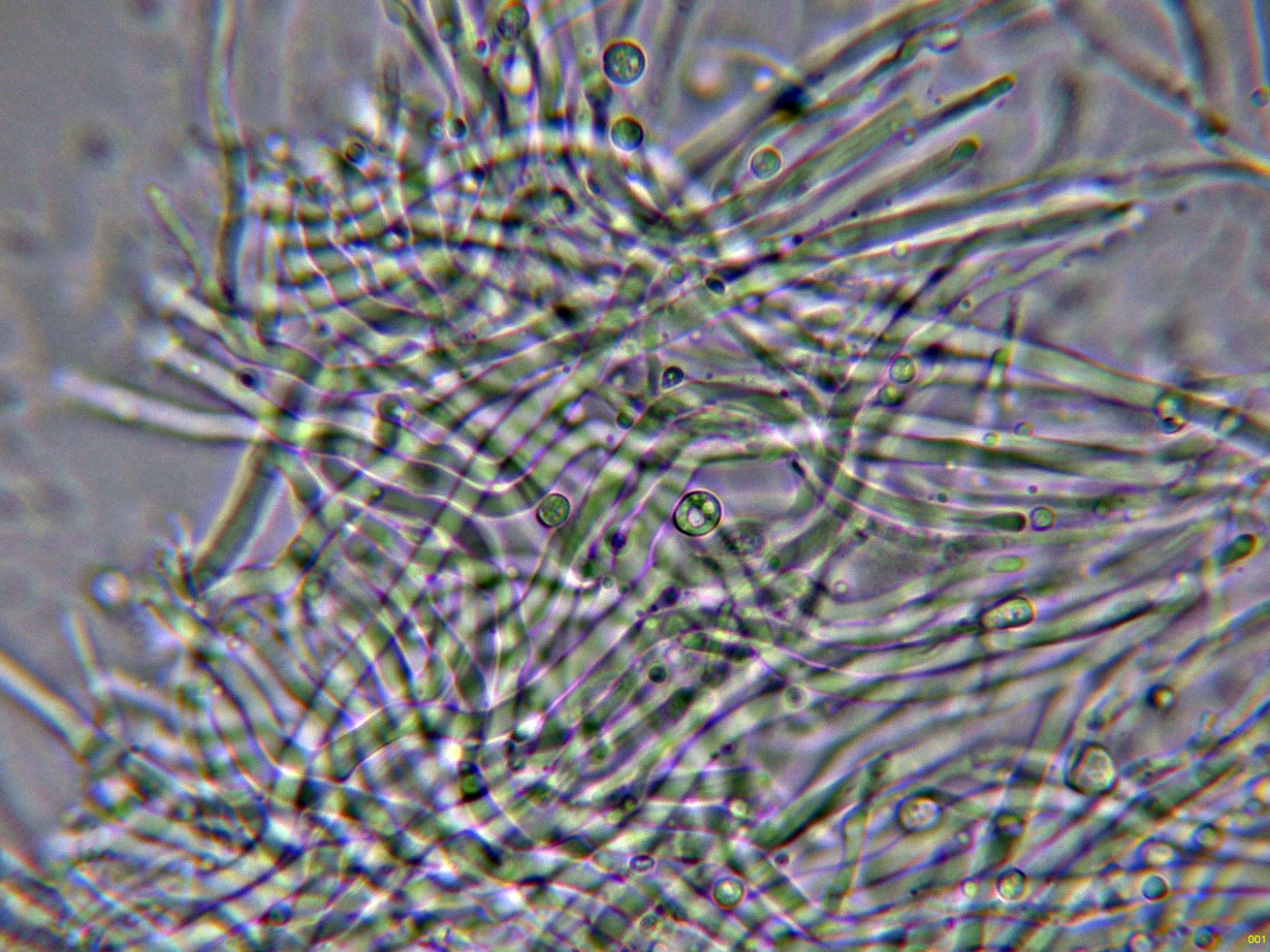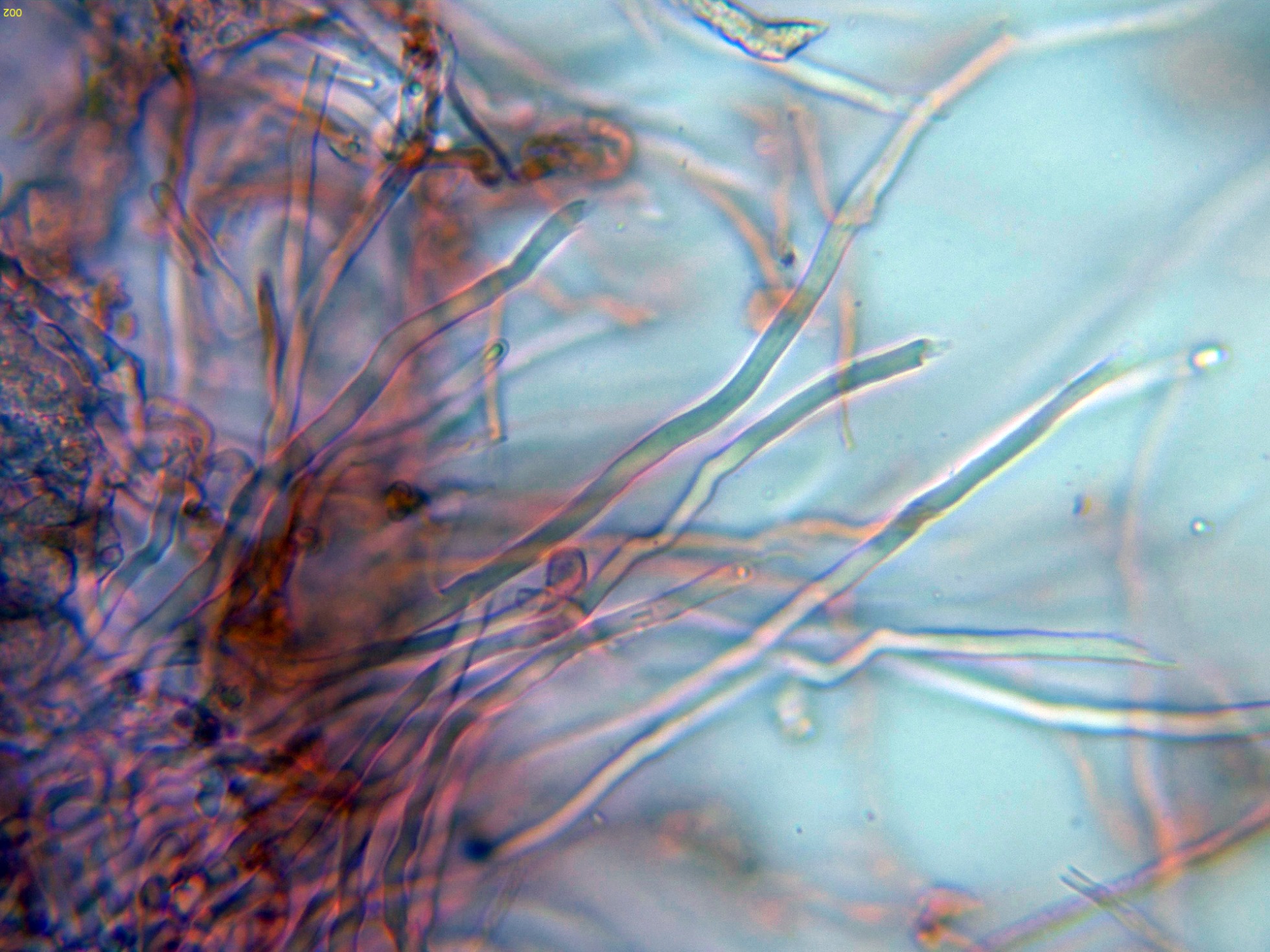 No hay cistidios, pero los cistidiolos fusoides no salientes suelen estar presentes entre los basidios, de 1,2-20 x 3-4 μm.
