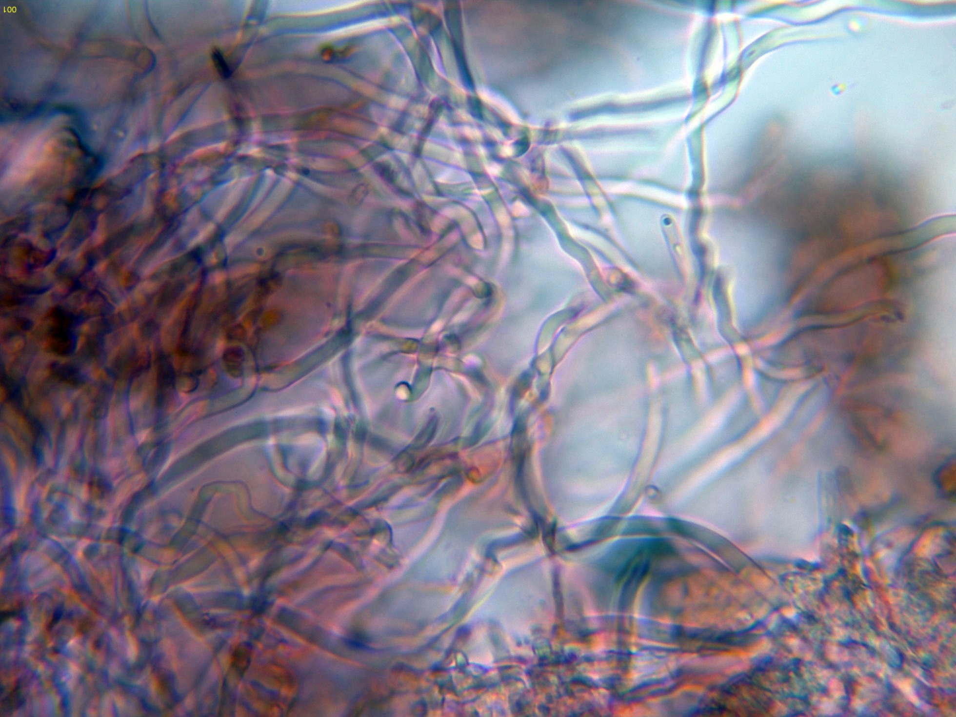 Hifas subiculares en solución de KOH: