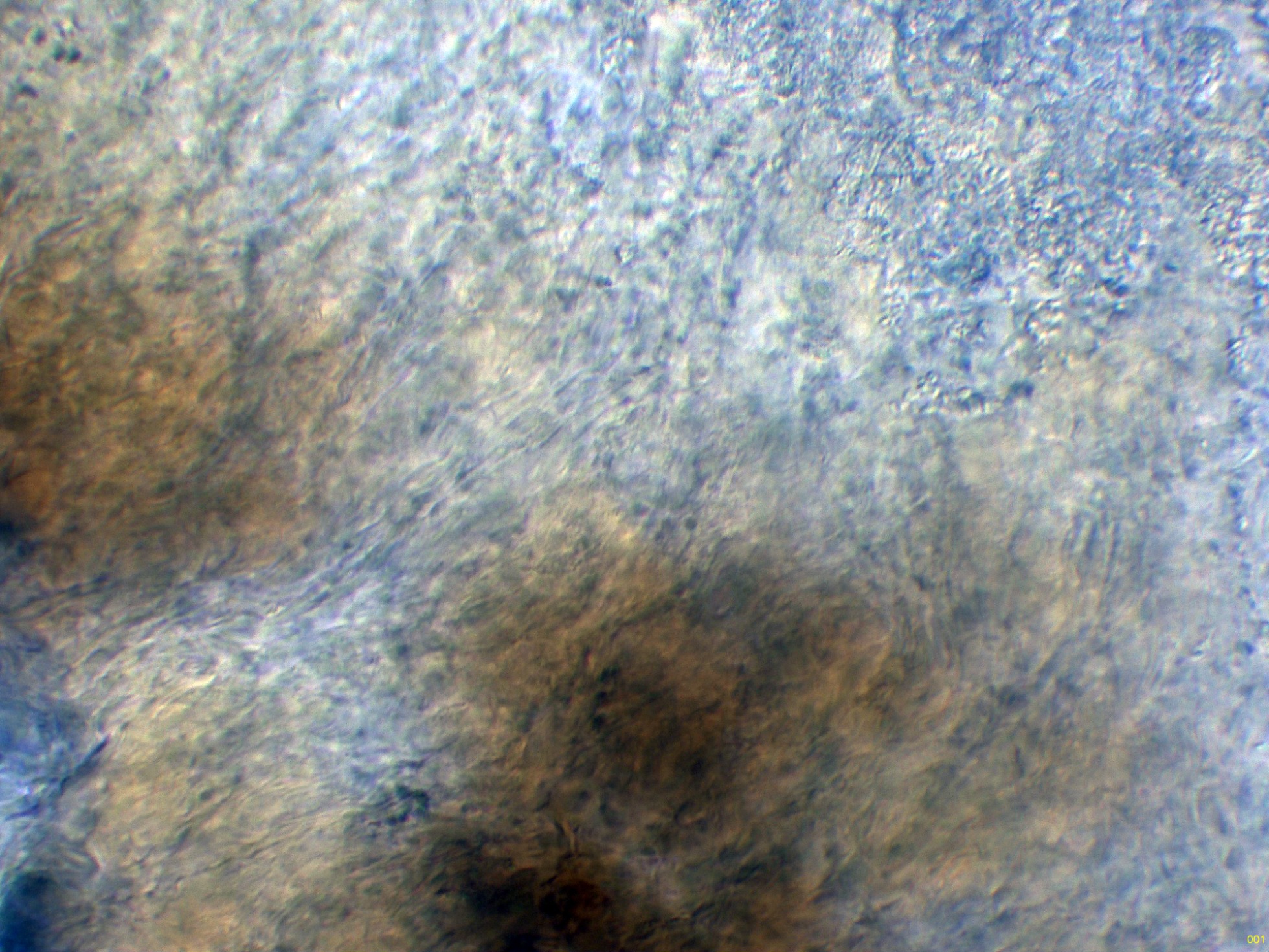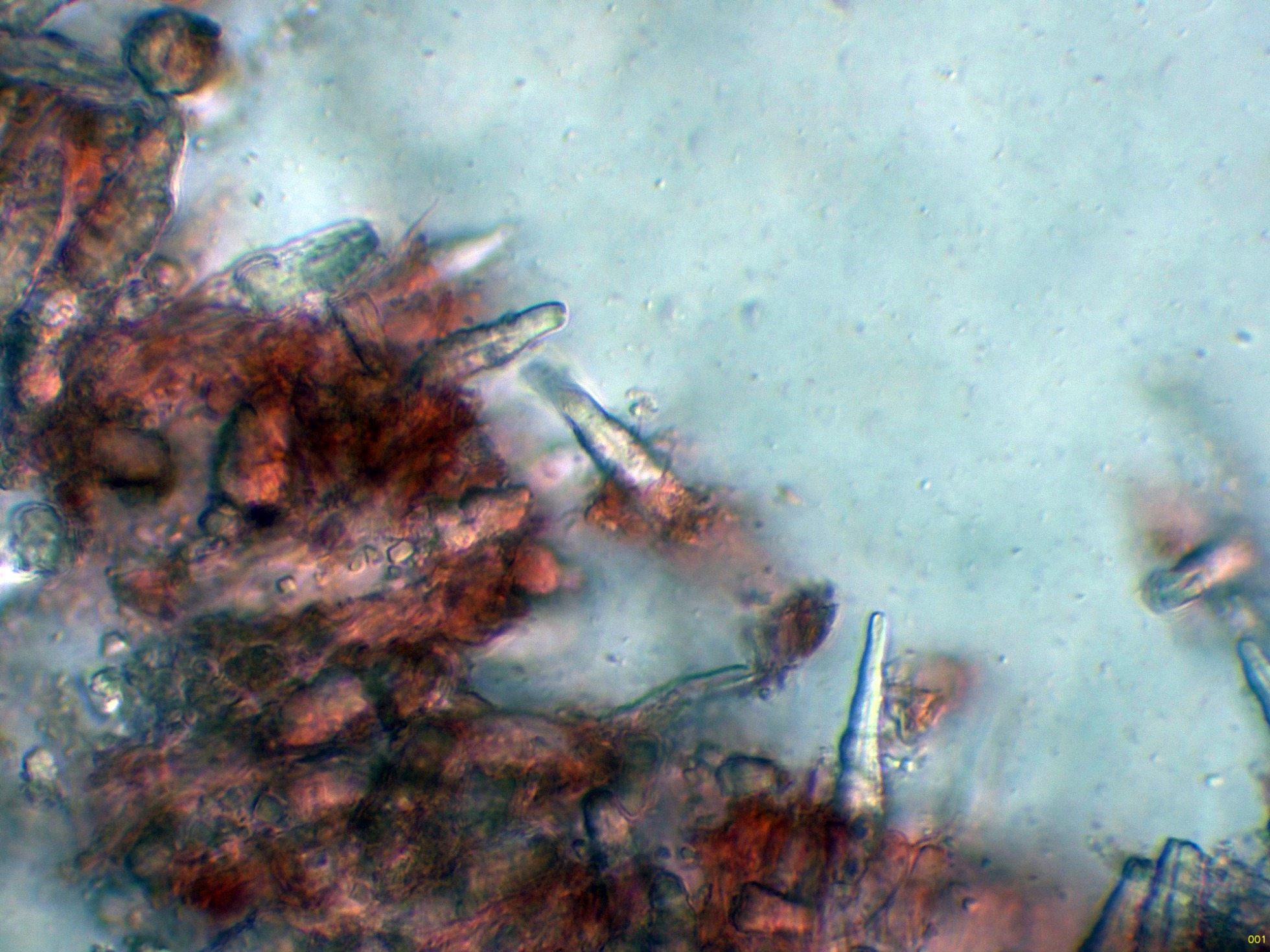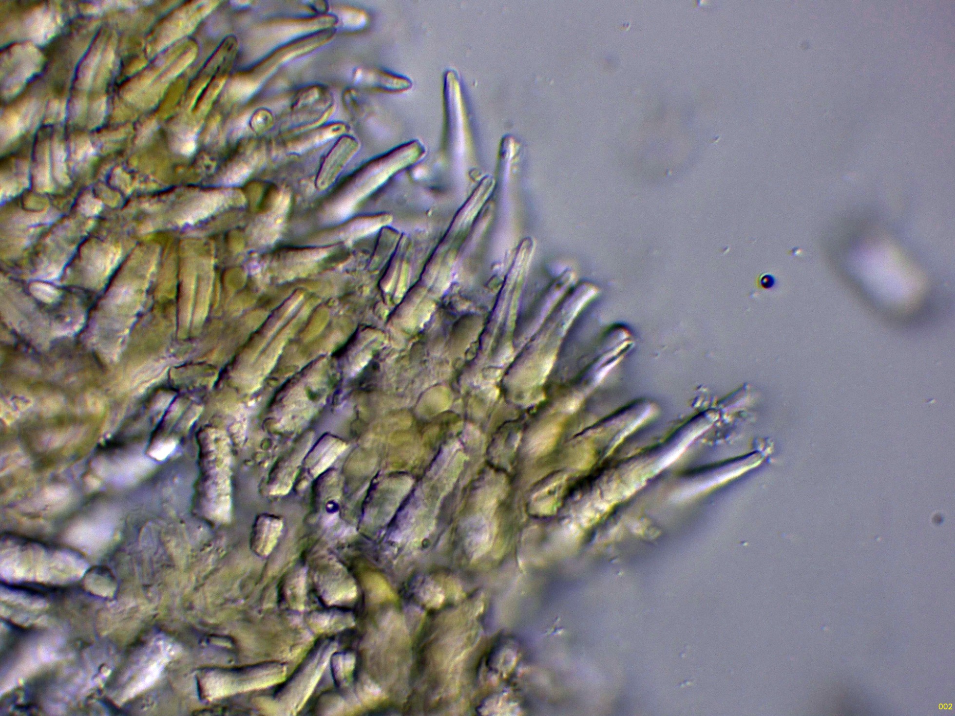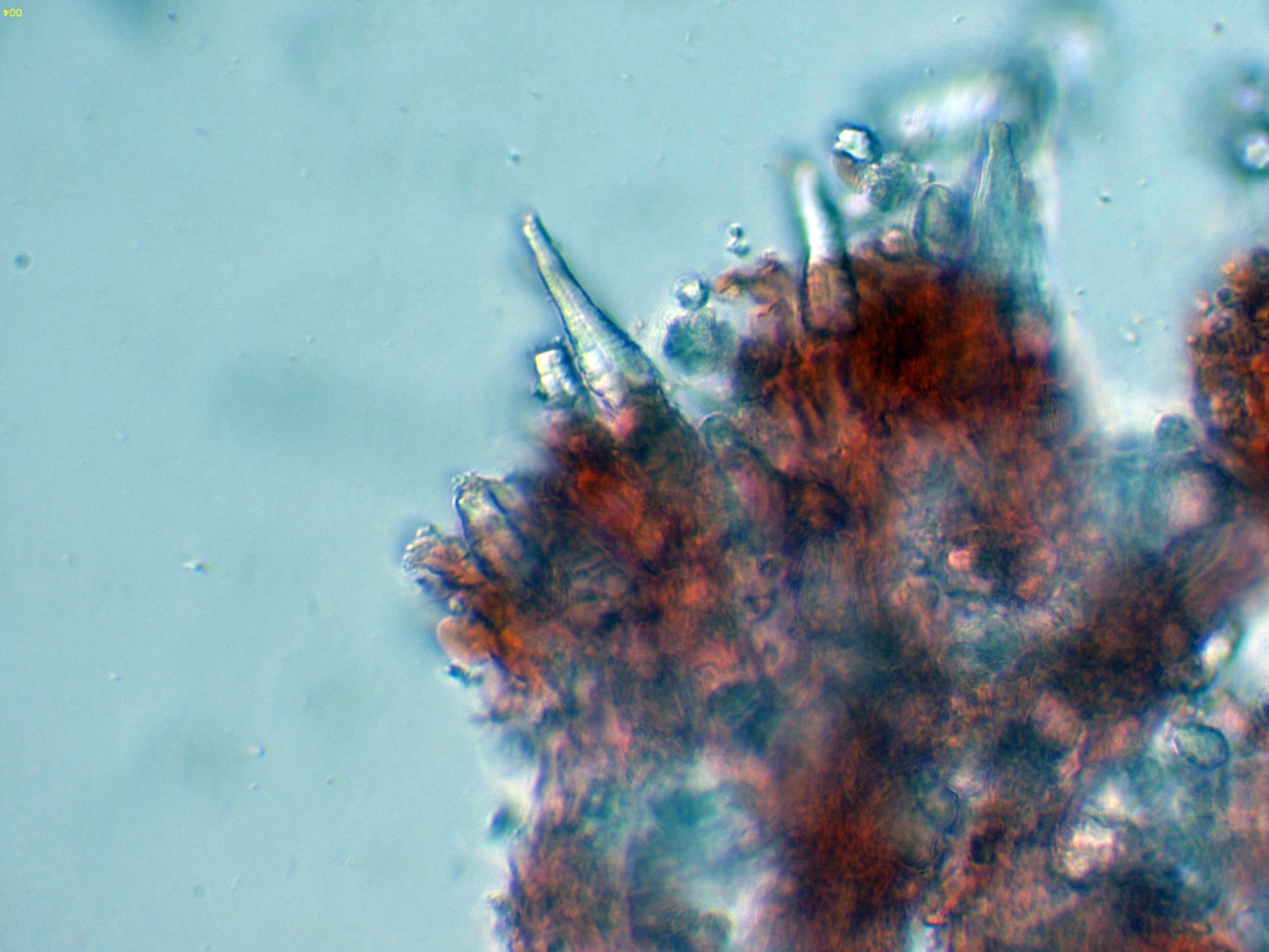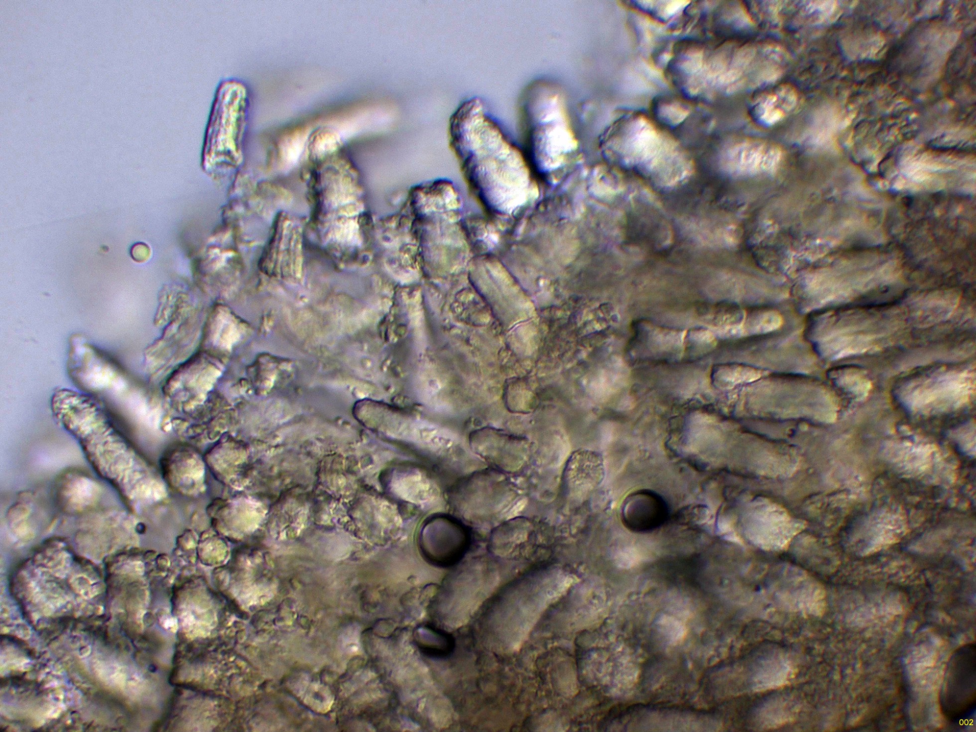 Si bien los parámetros parecen ajustarse bastante bien a los del presente estudio, las medidas indicadas para los cistidios se encuentran en lo que respecta a la anchura por encima, en mi caso con una anchura de (4.7) 4.74 - 7.1 (7.8) µm., y además tenemos las esporas que aunque todas las medidas entran bien dentro del rango de las que se atribuyen a la especie, quizás se quedan un poco cortas en lo que respecta a la longitud, según el documento de hasta 8,5 µm., y en el presente estudio de solo hasta 6.5 µm.