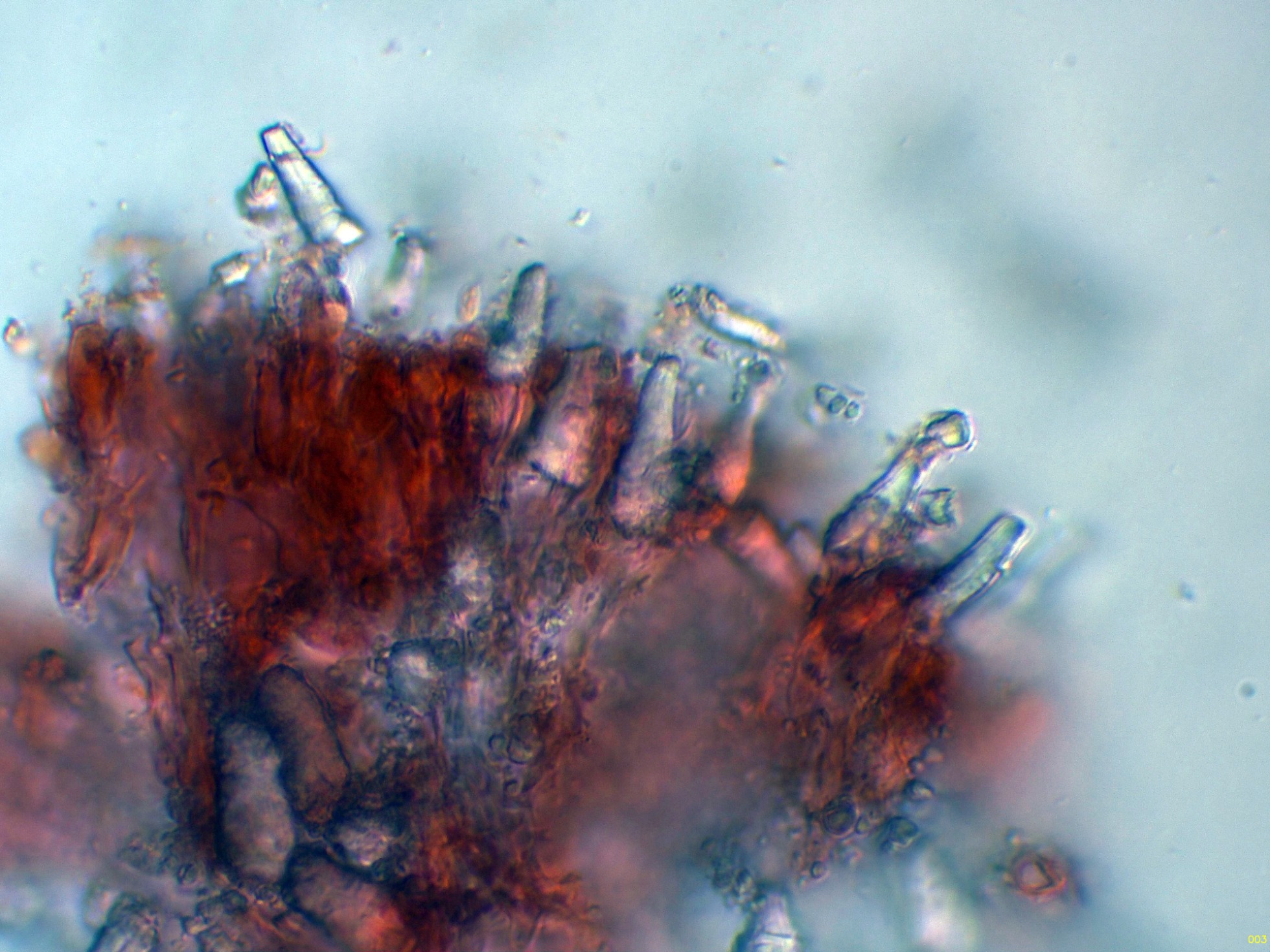Los lamprocistidios en solución de Rojo Congo diluido: