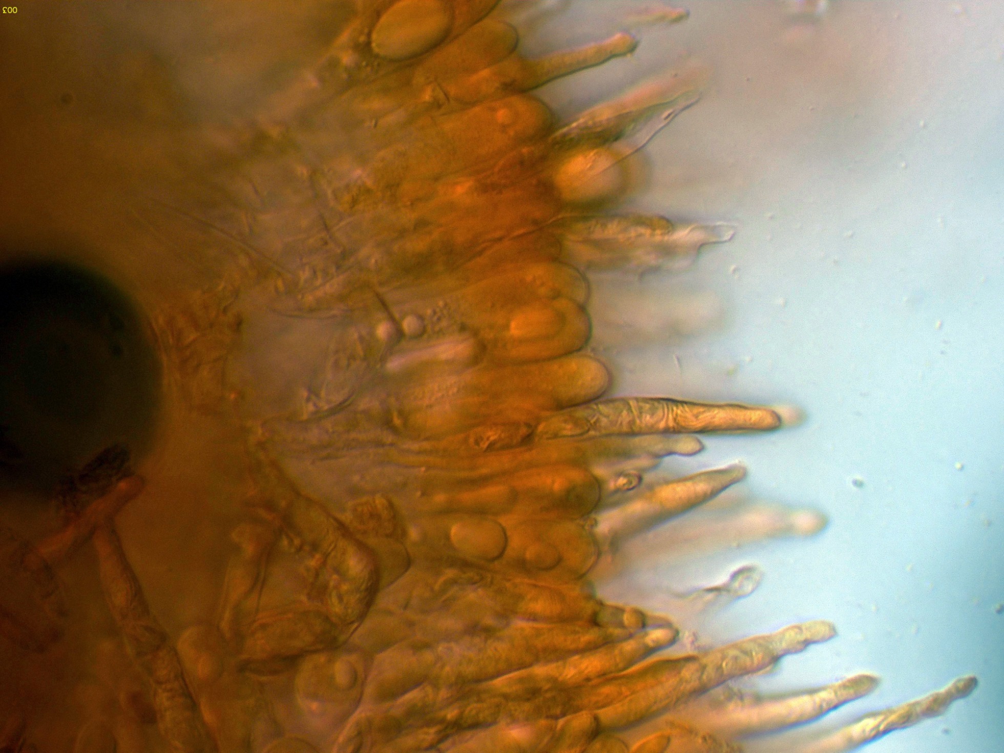 Muy abundantes queilocistidios y pleurocistidios lanceolados.