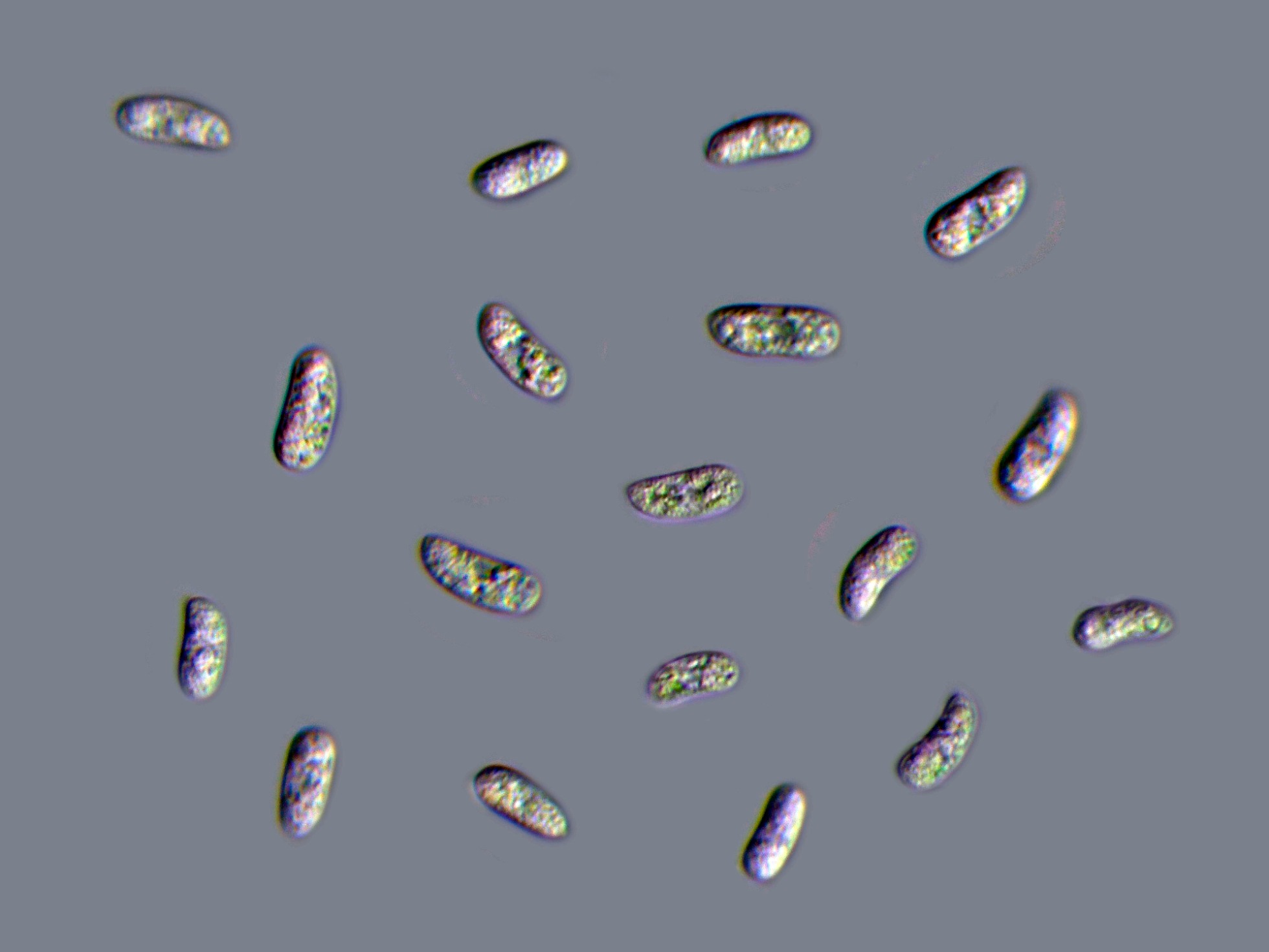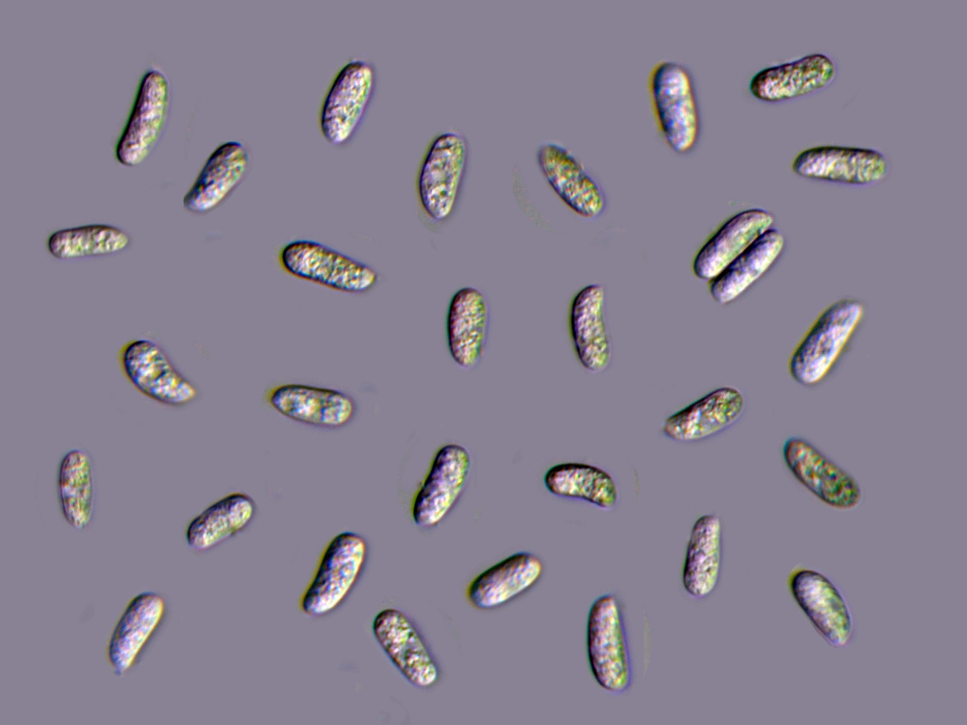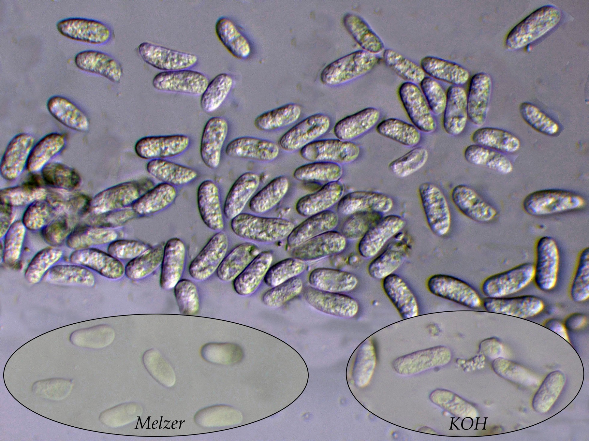 Y para terminar en las miniaturas, las esporas en Reactivo de Melzer (inamiloides) a la izquierda y a la derecha las esporas en solución de KOH:
