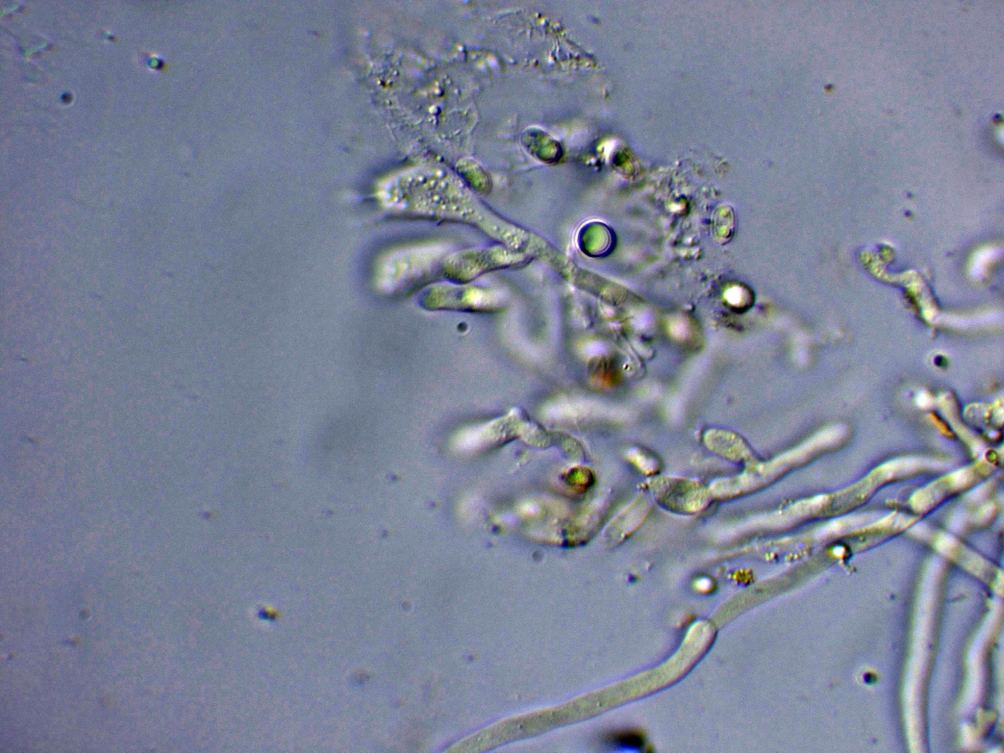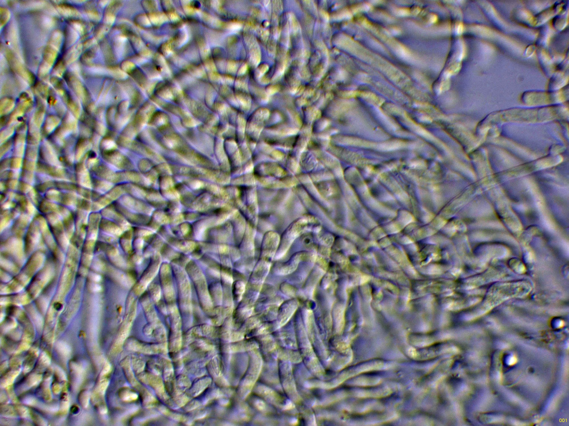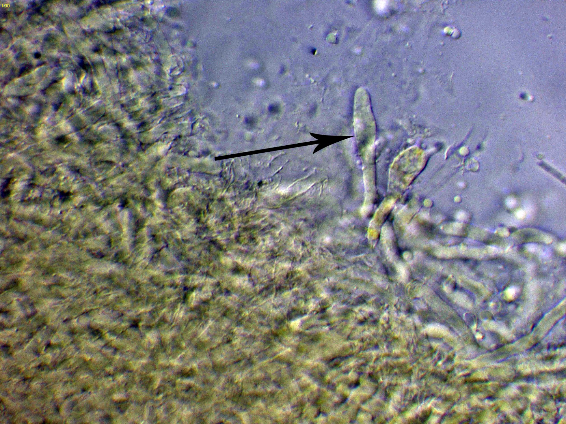 Hifas generativas fibuladas, bastante escondidas en el subhimenio.