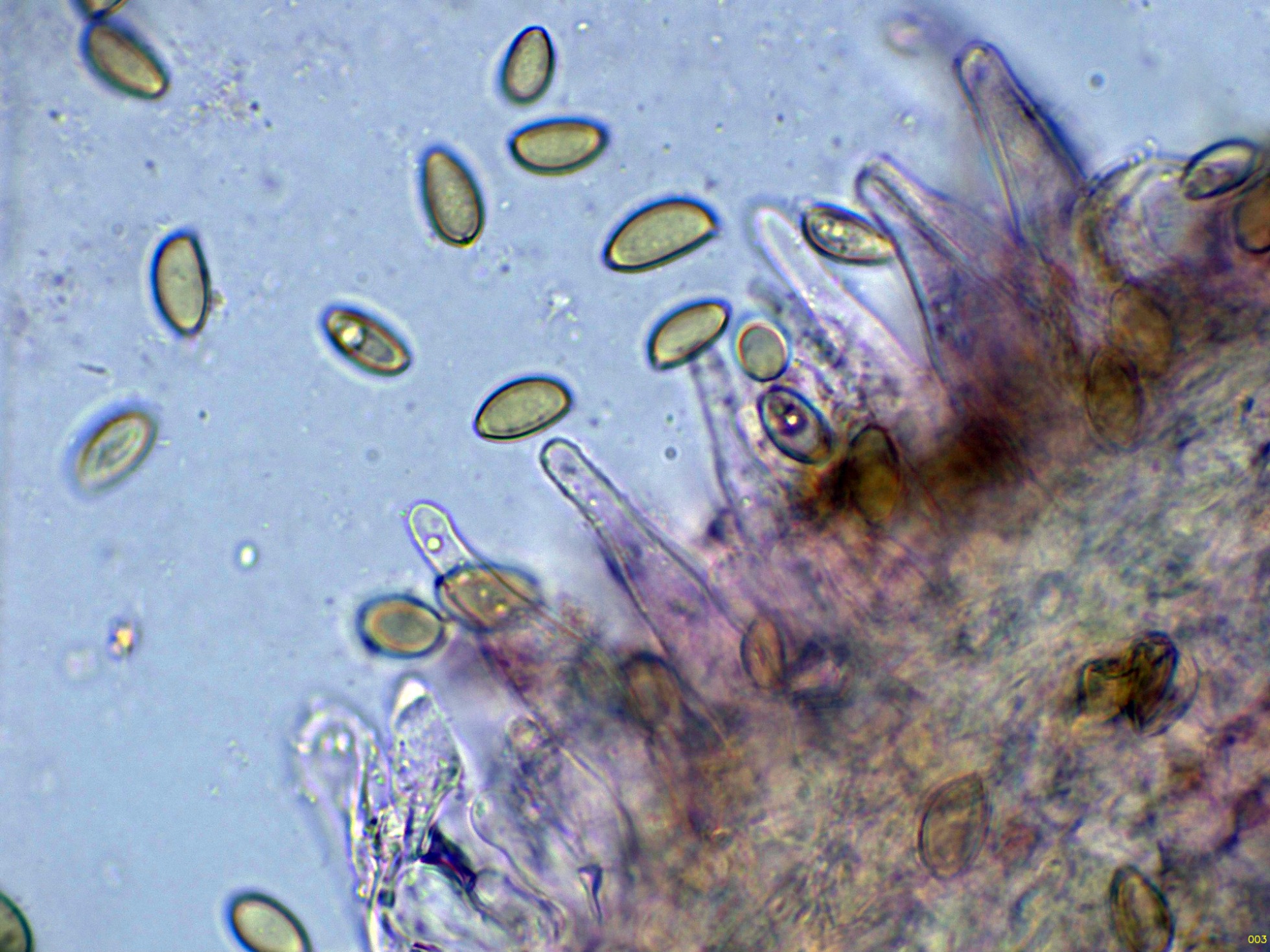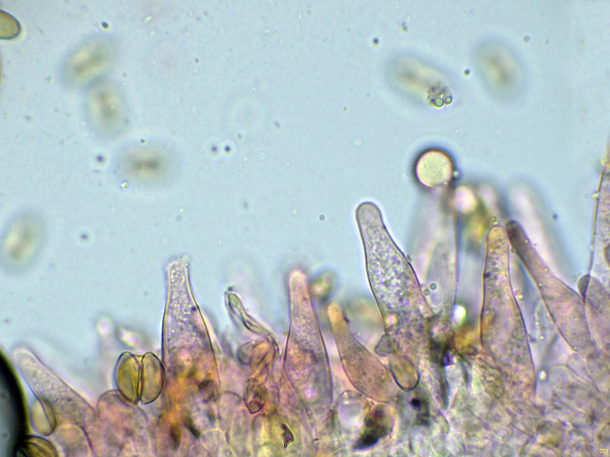 Queilocistidios muy abundantes que dejan prácticamente estéril la arista laminar: