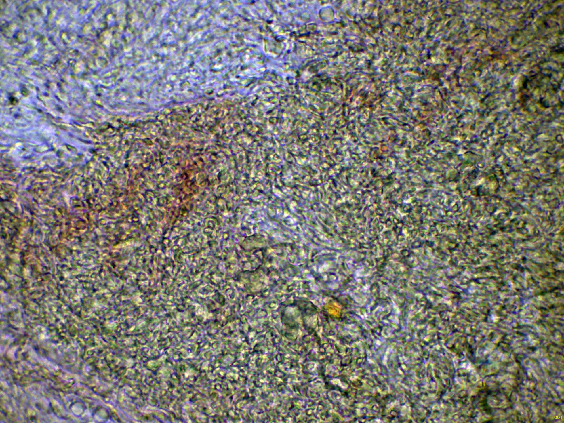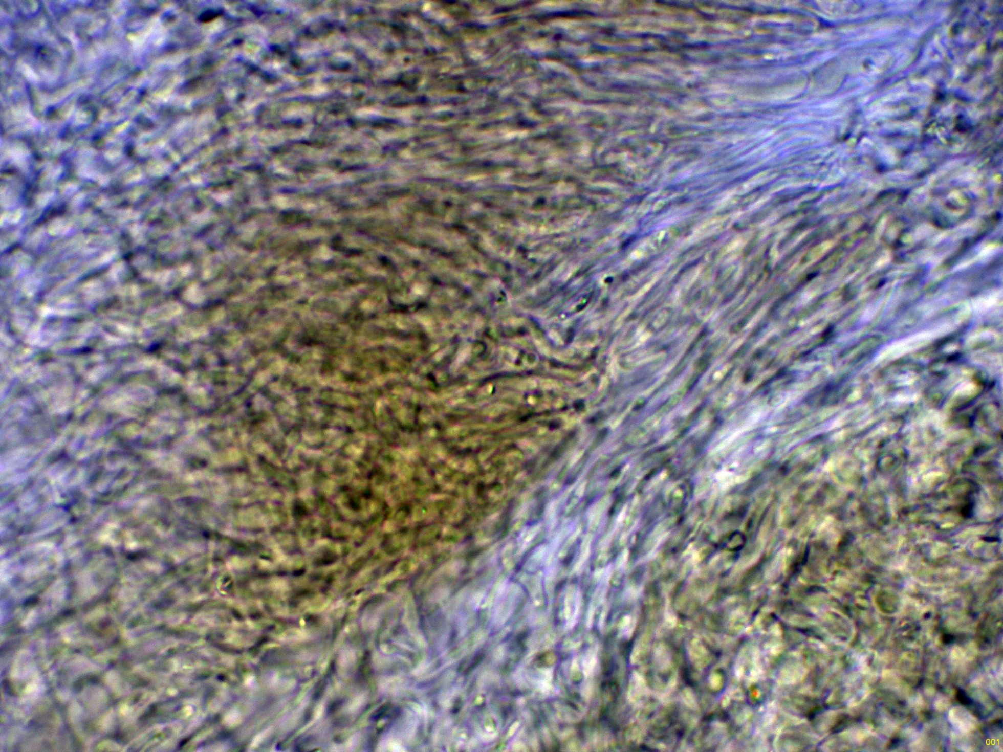 El himenio en solución de Rojo Congo a 400 aumentos:
