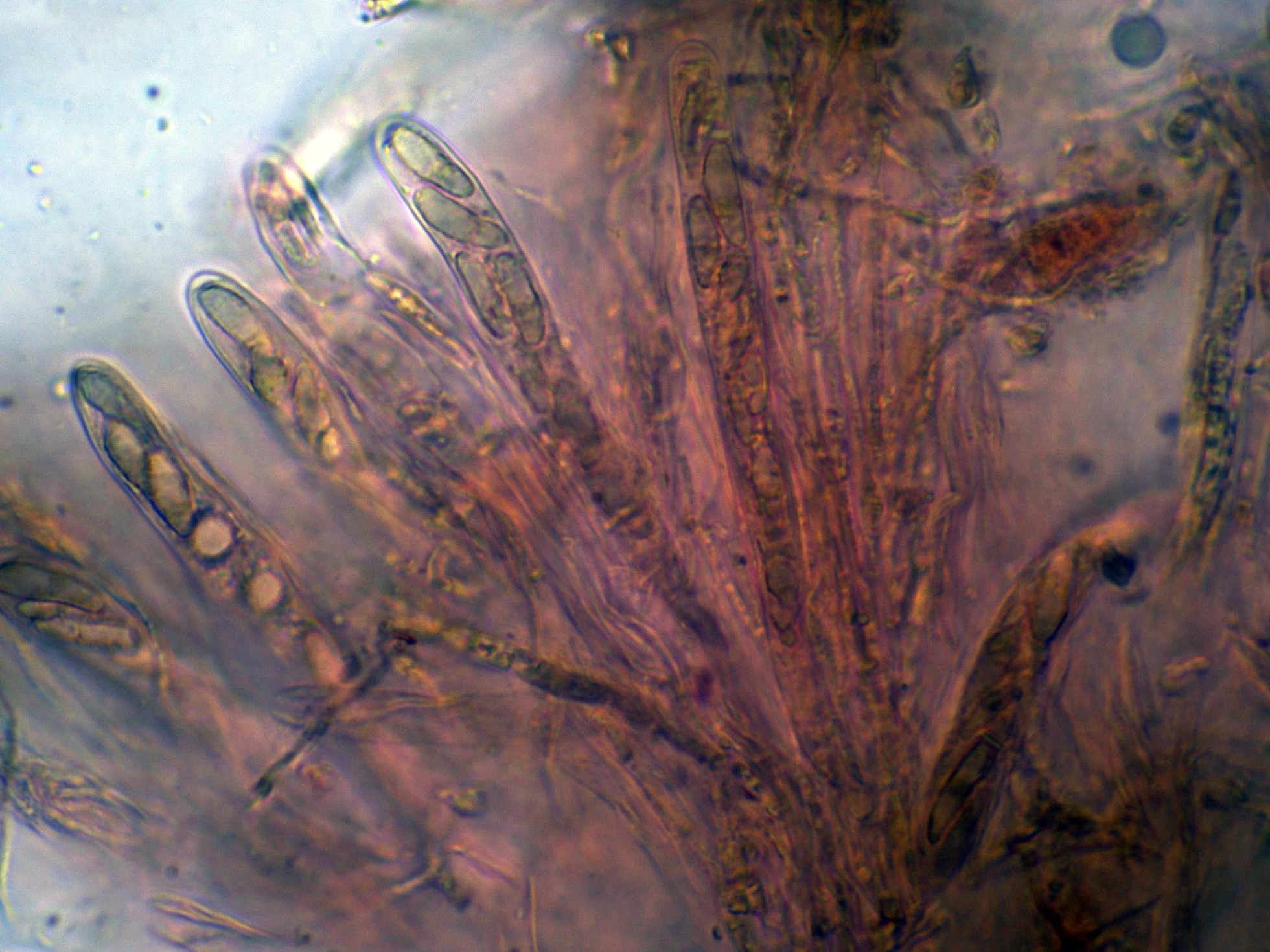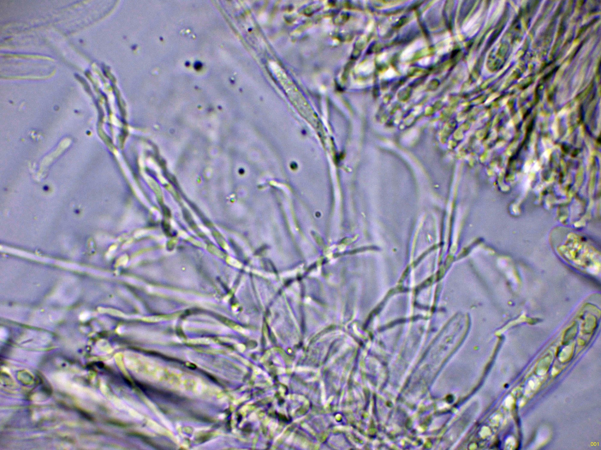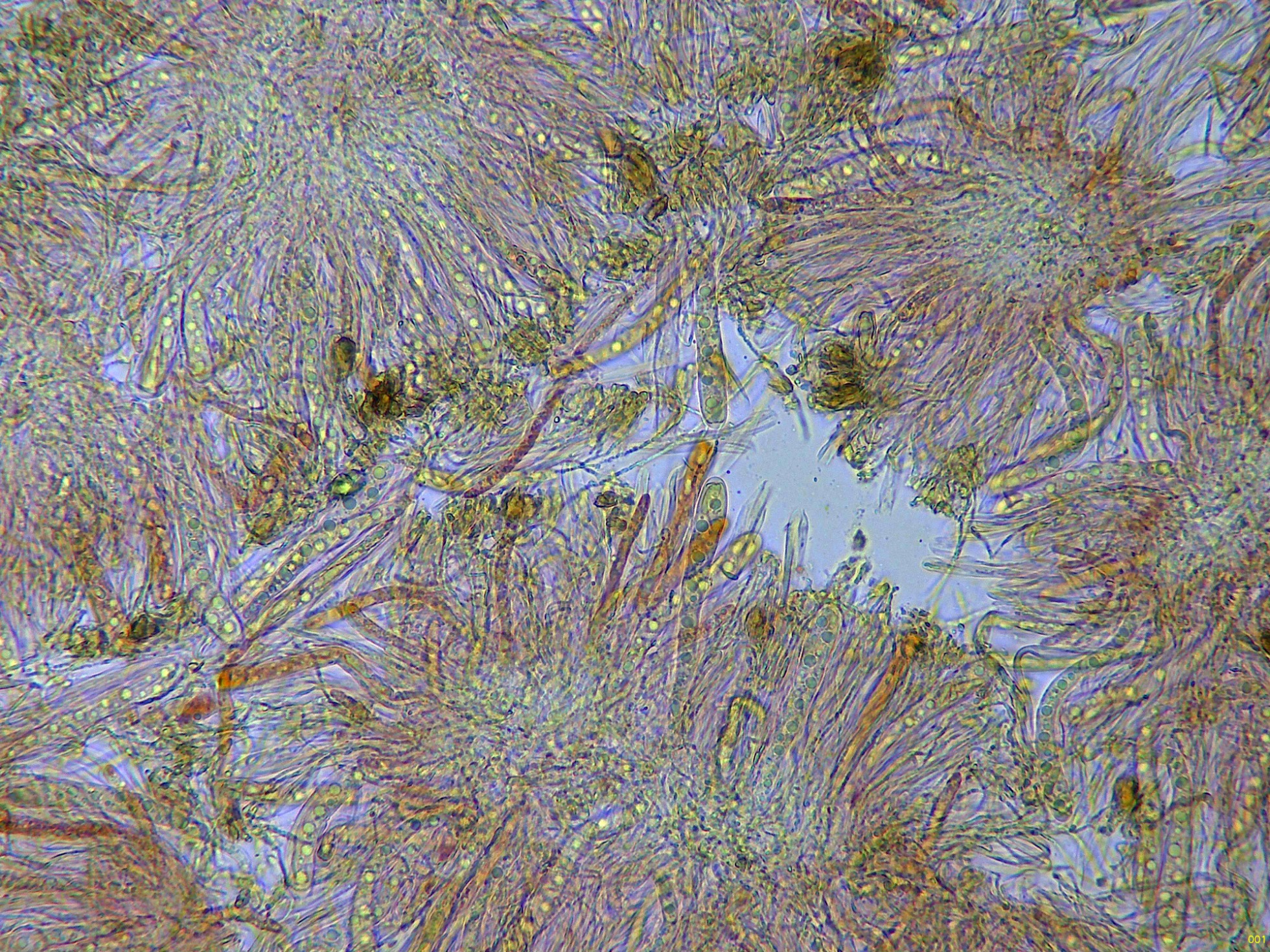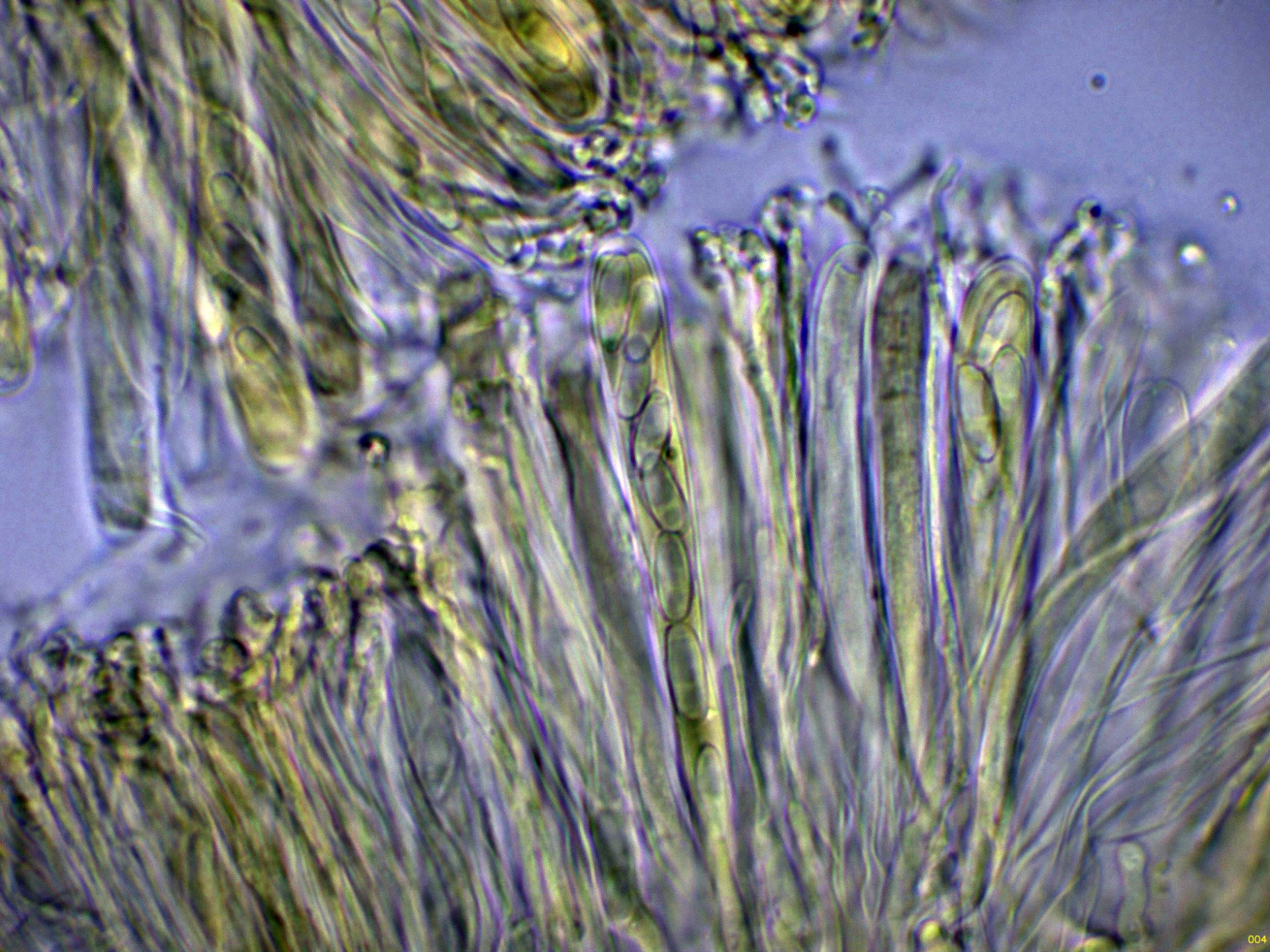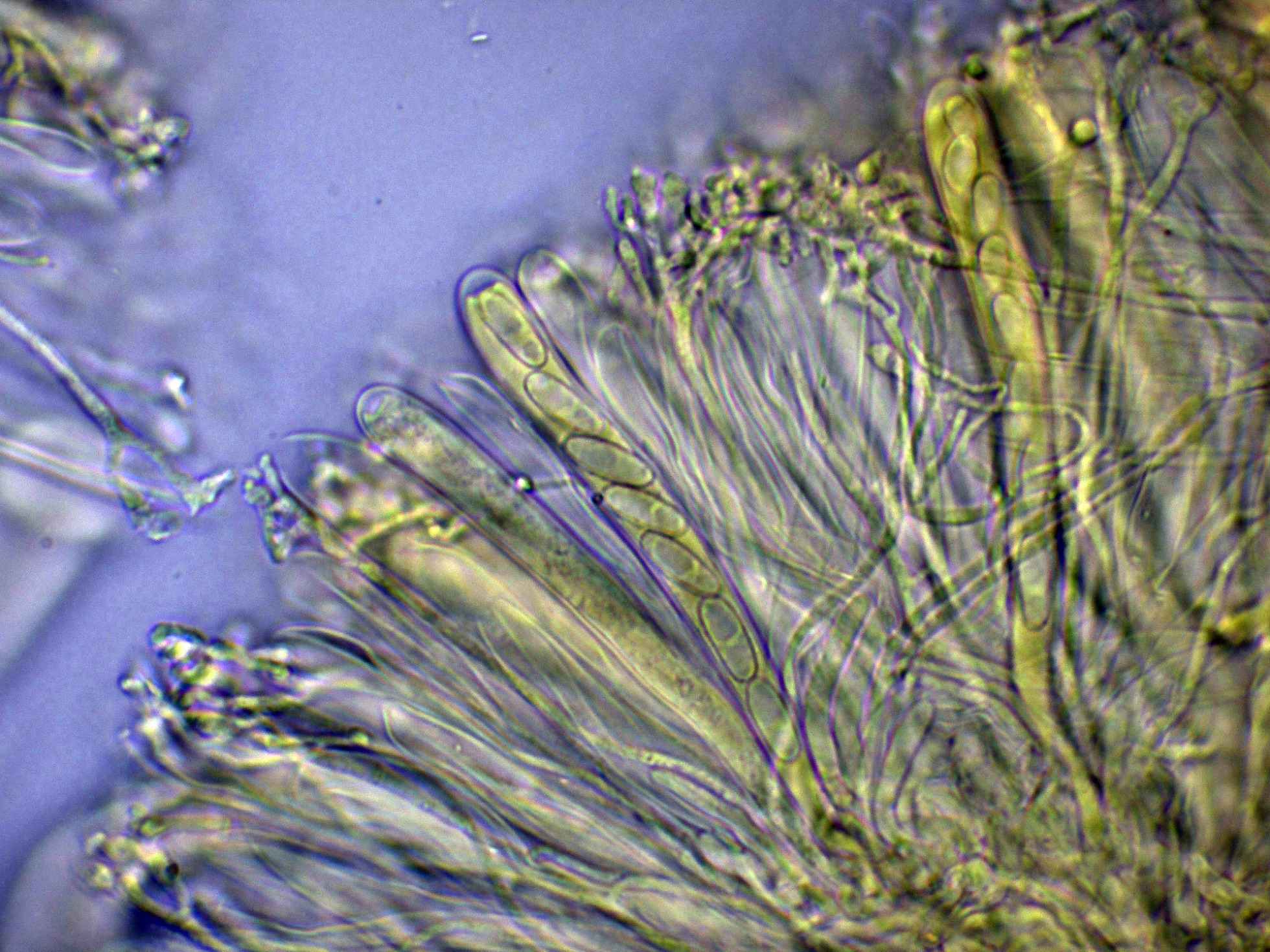 Ascos y paráfisis en Melzer a 1000 aumentos: