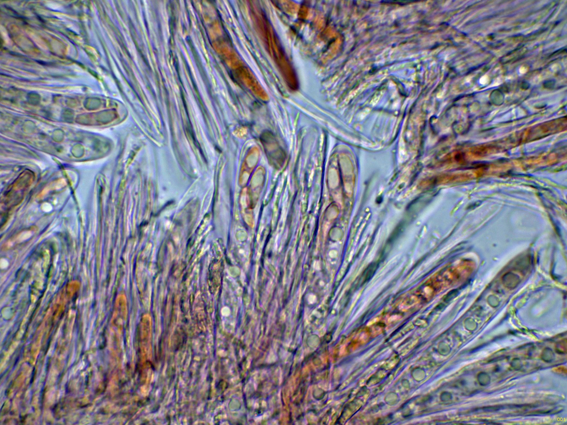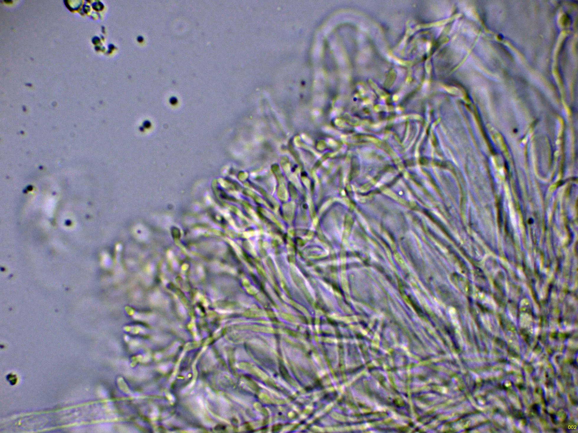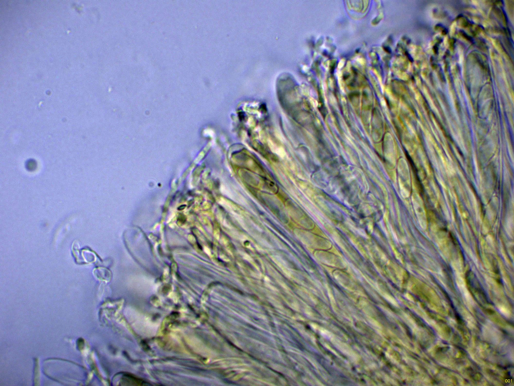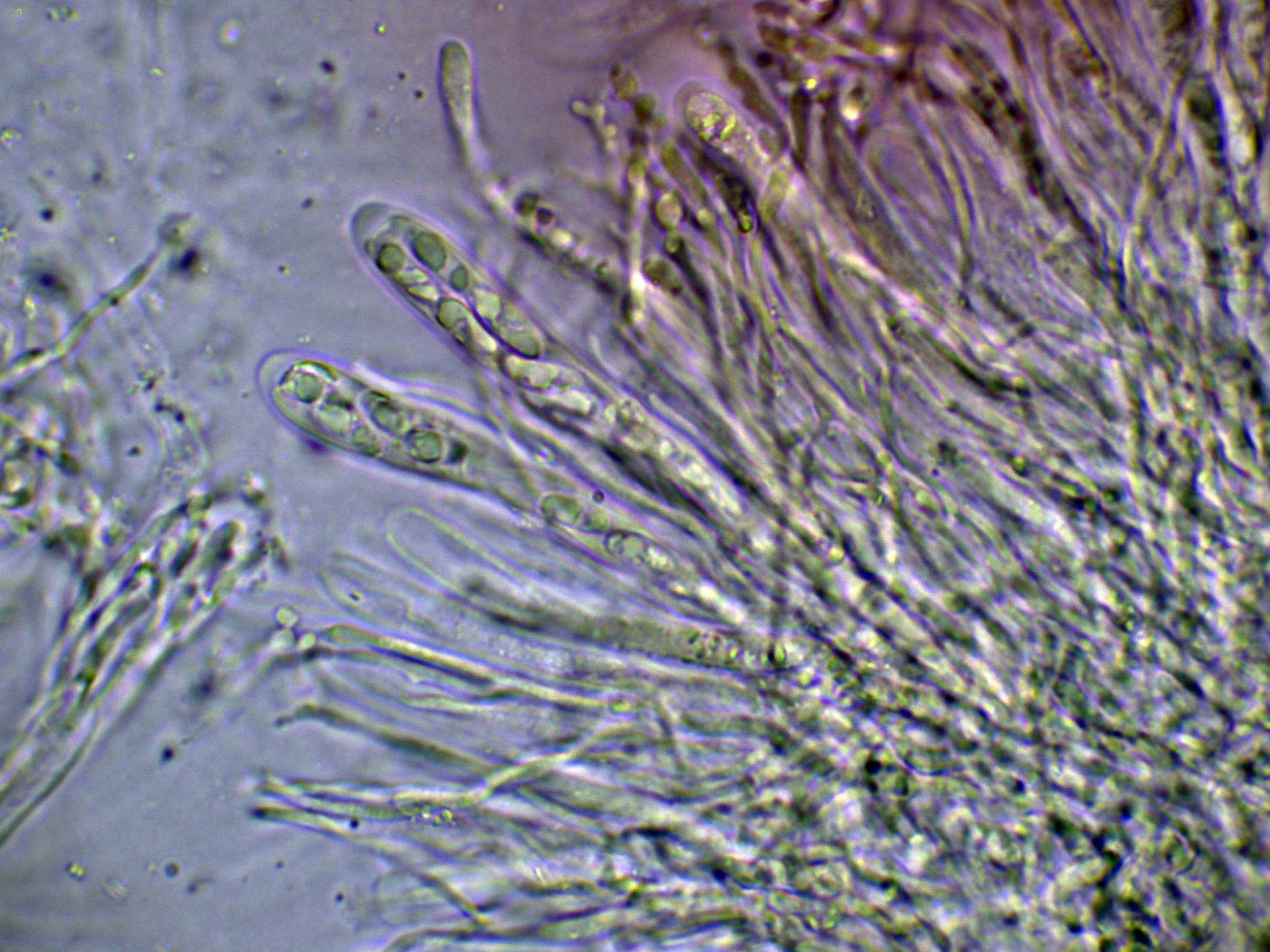 El himenio en Reactivo de Melzer a 400 aumentos, sin ninguna reacción significativa: