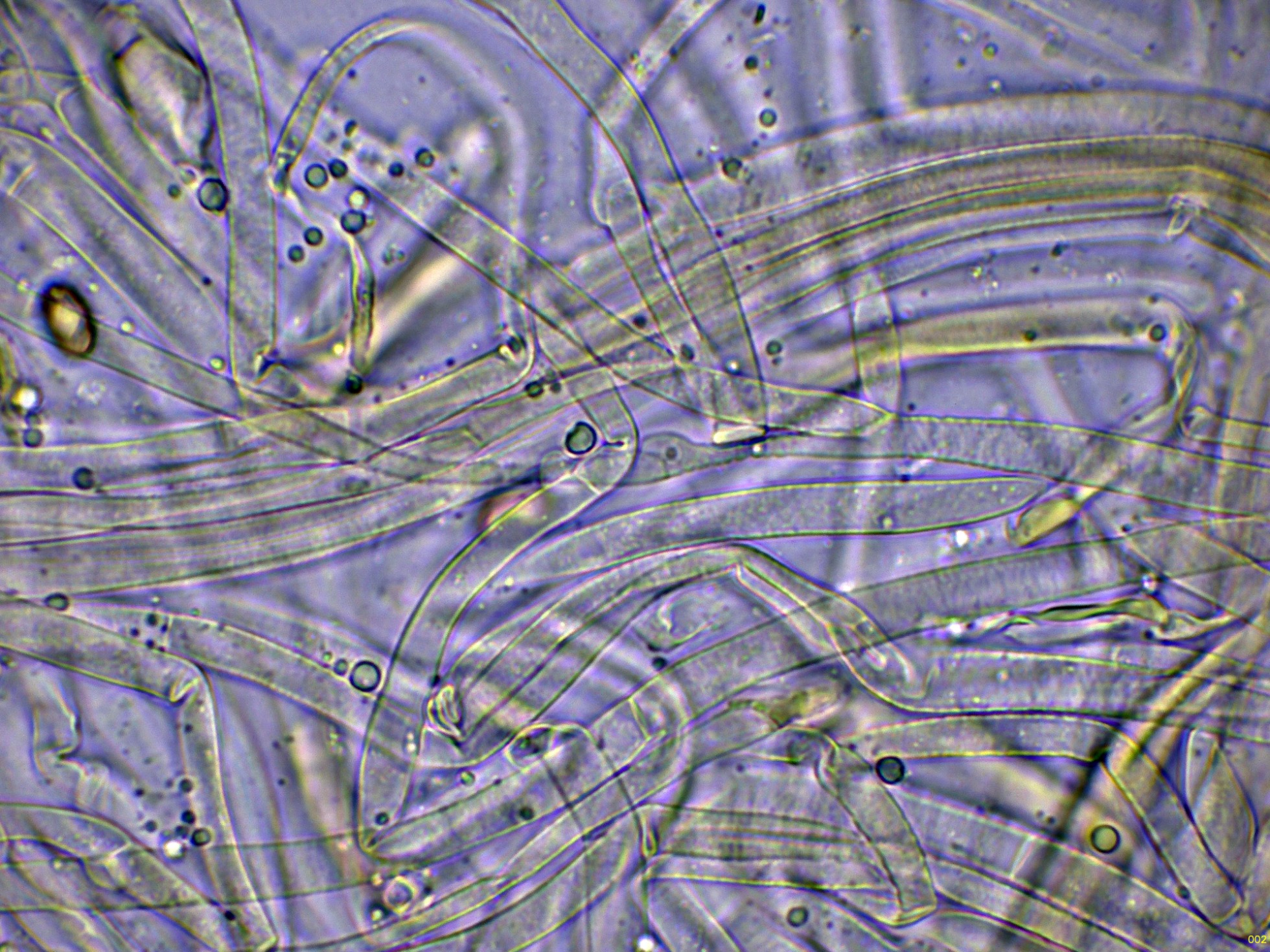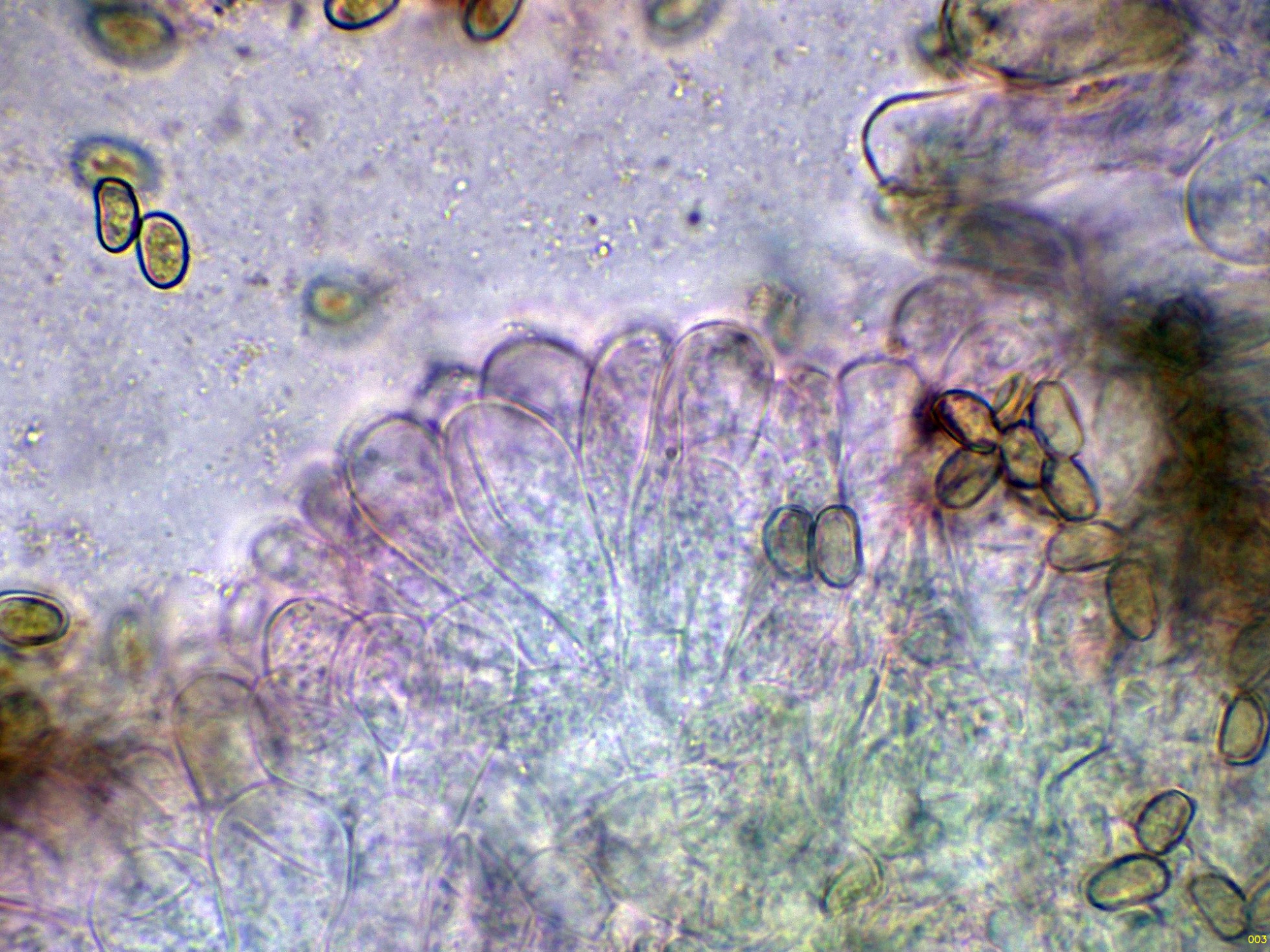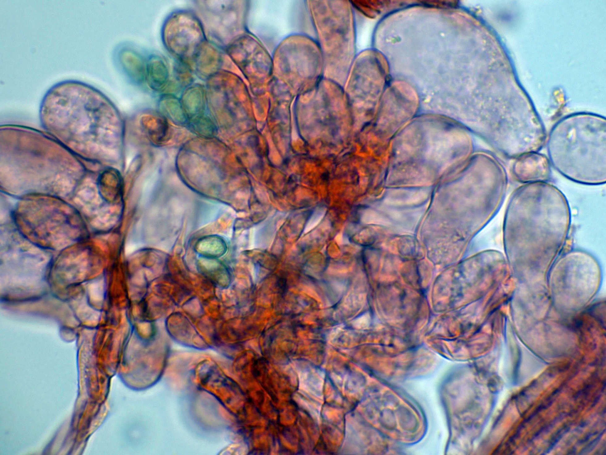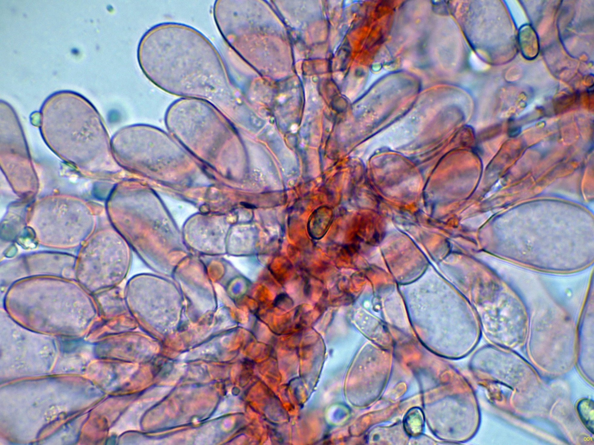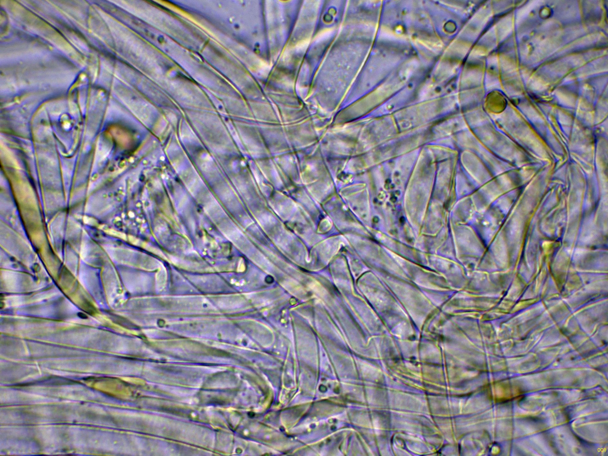 Las hifas de la suprapellis en agua, ligeramente pigmentadas y fibuladas: