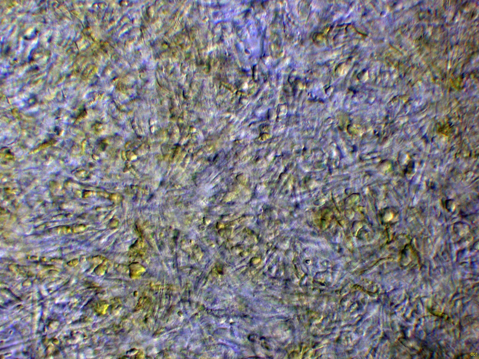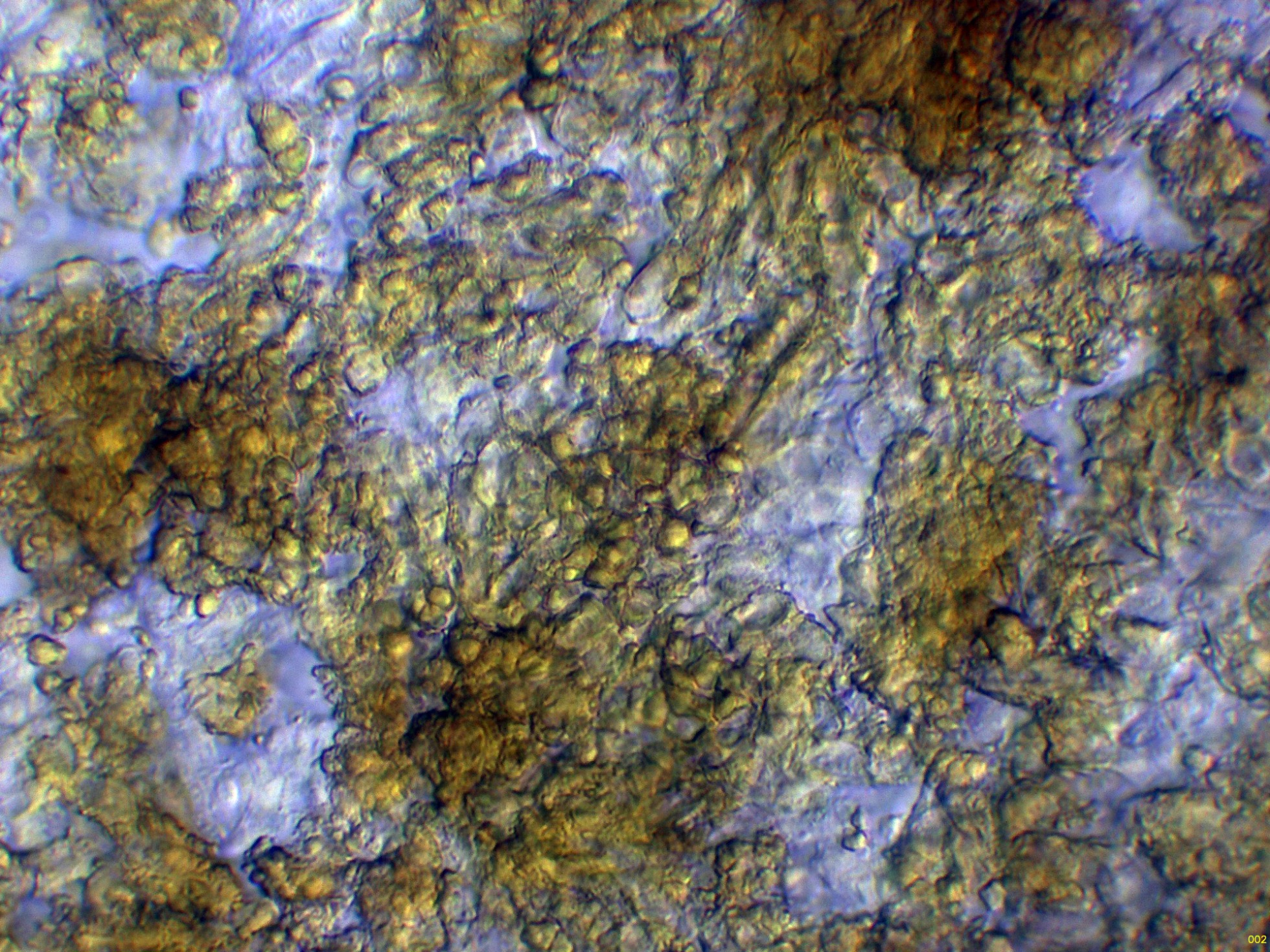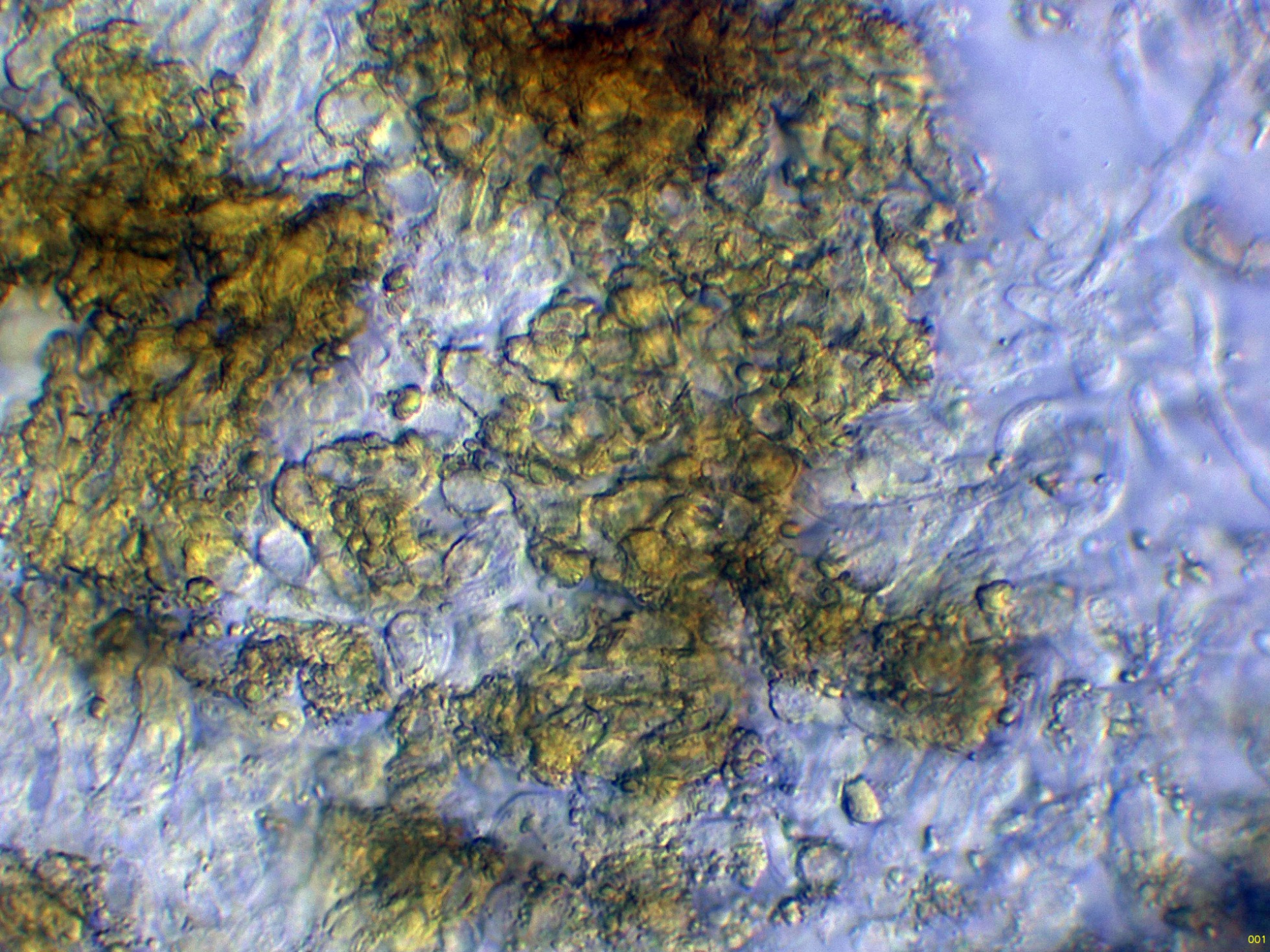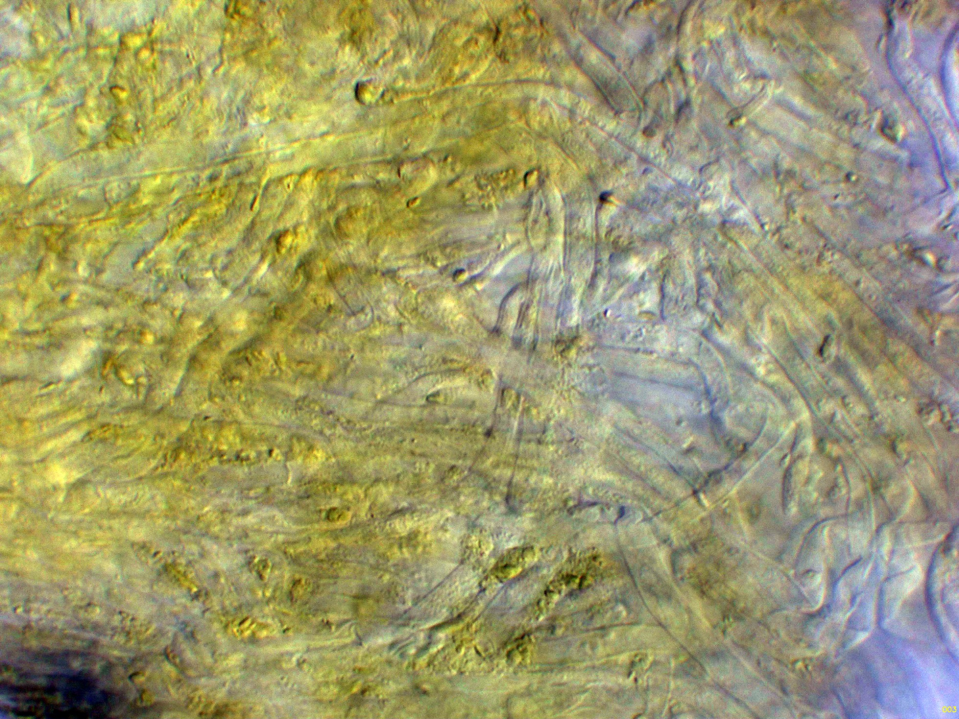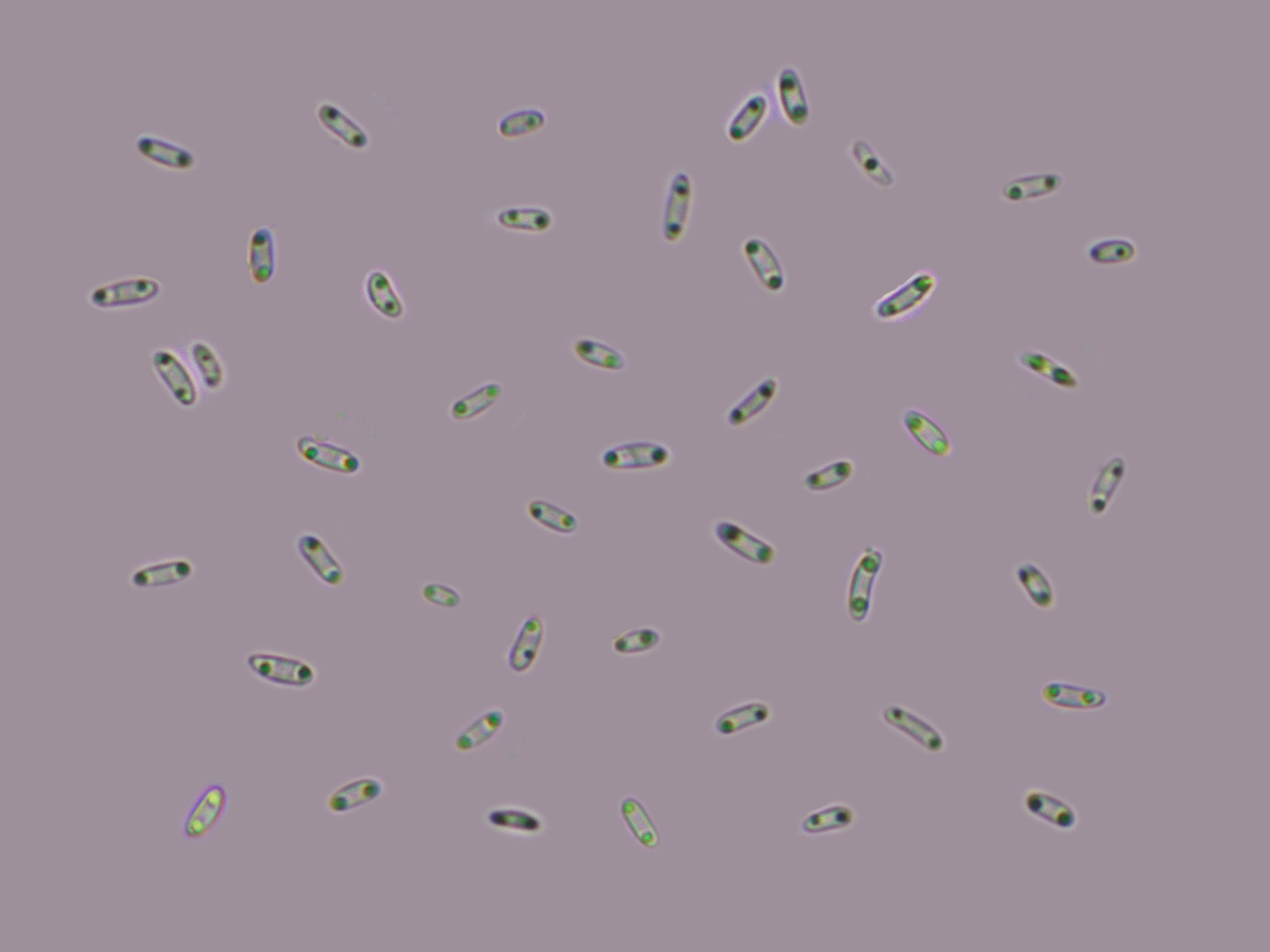 Los ascos en solución de Lugol, sin ninguna reacción aparente: