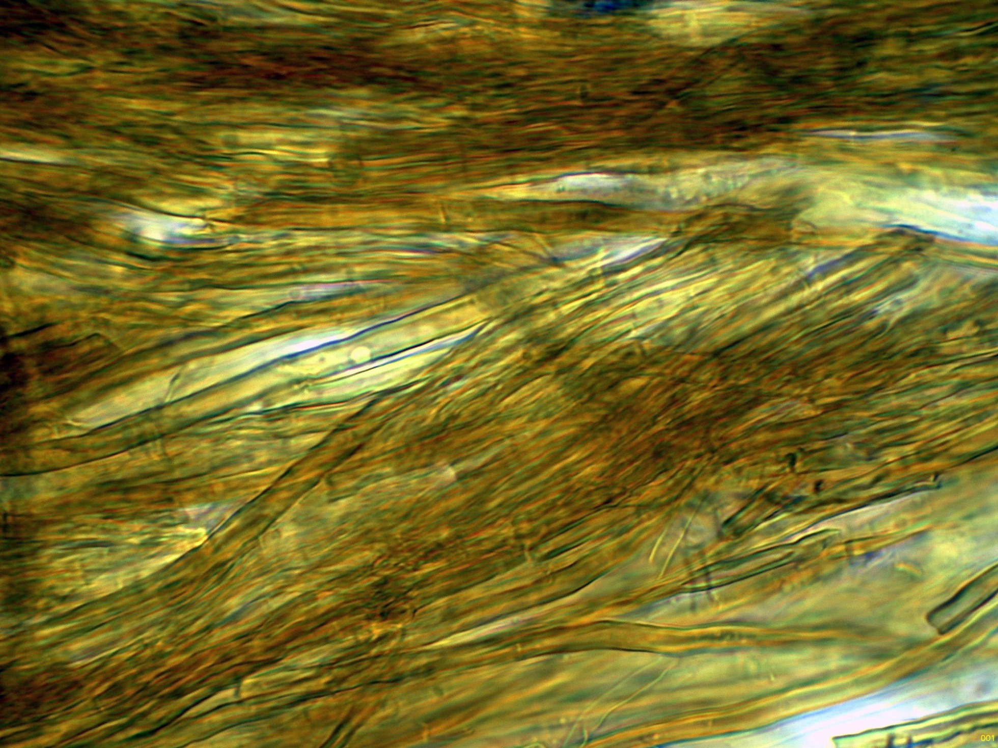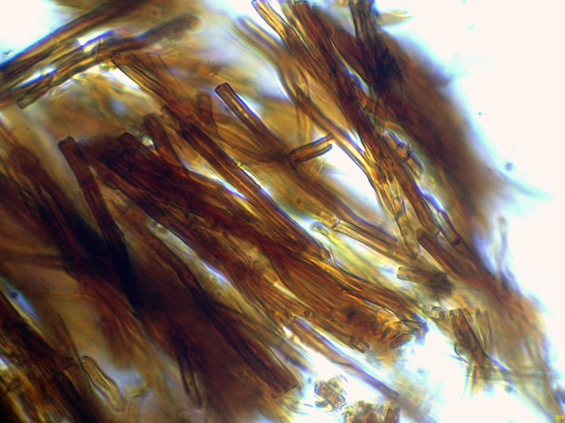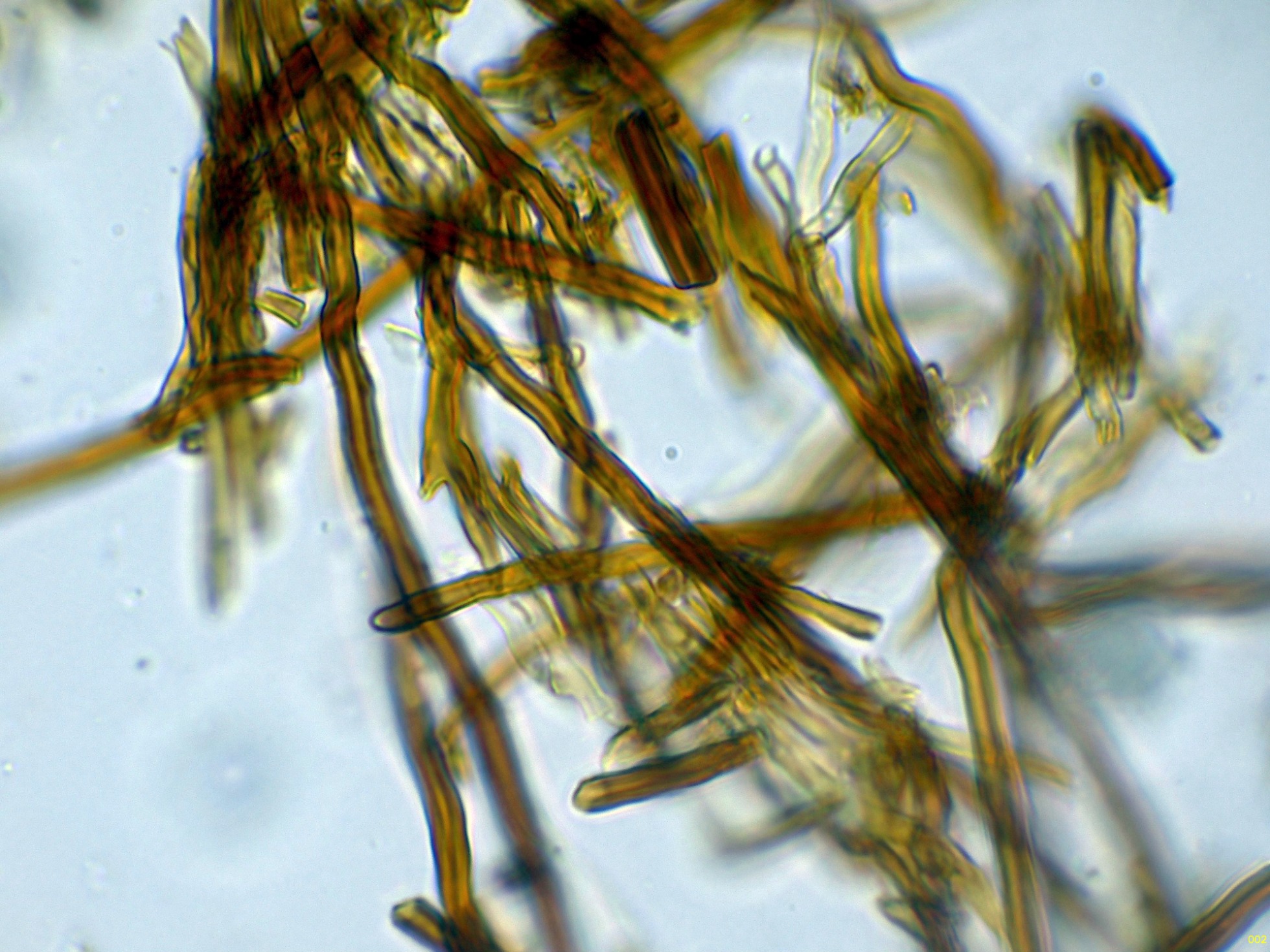 Las hifas tramales en agua, que se corresponden con un sistema hifal dimítico, con hifas generativas desprovistas de fíbulas: