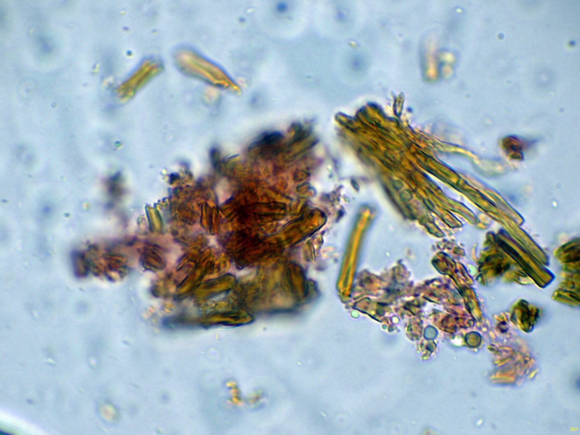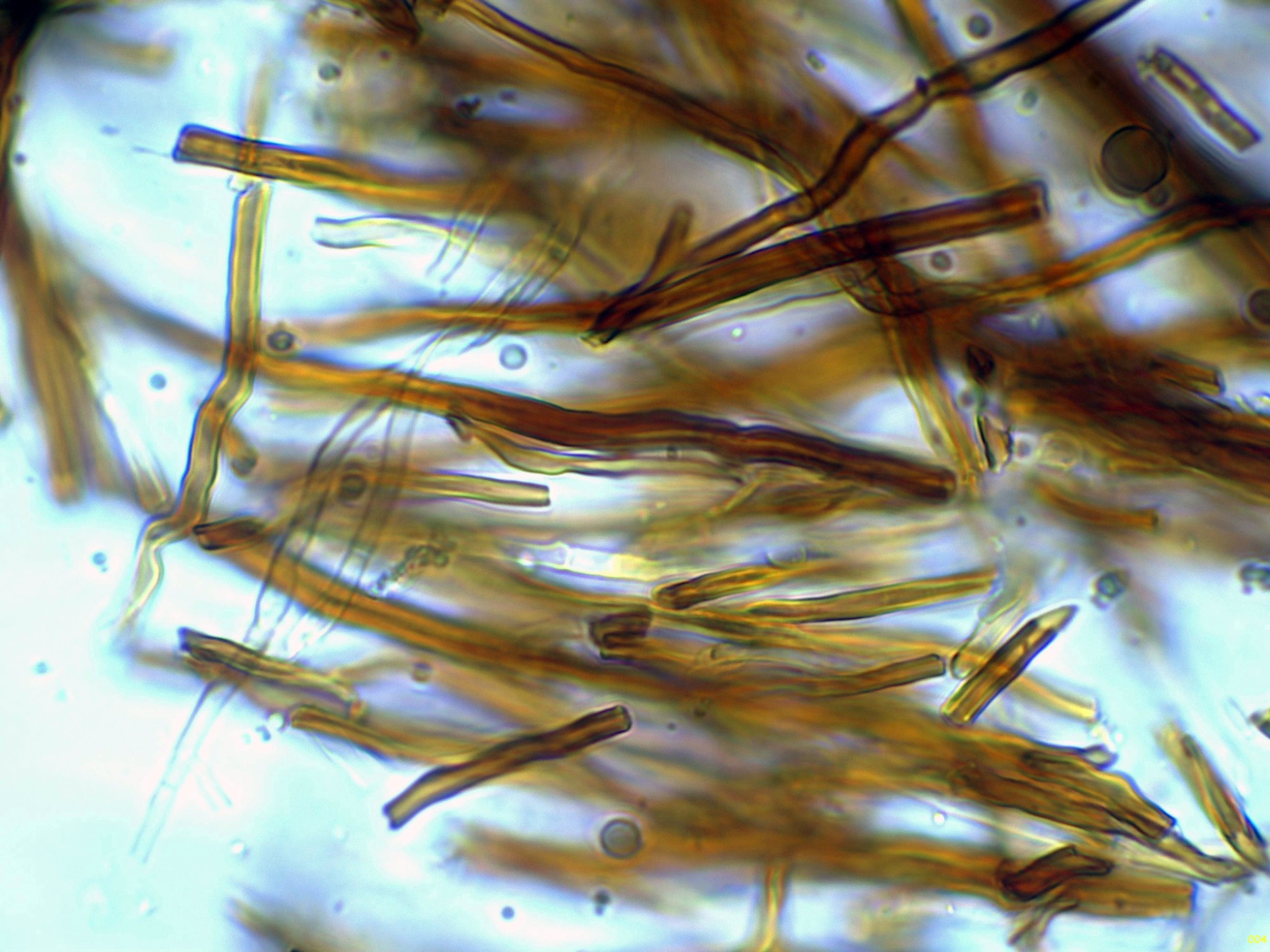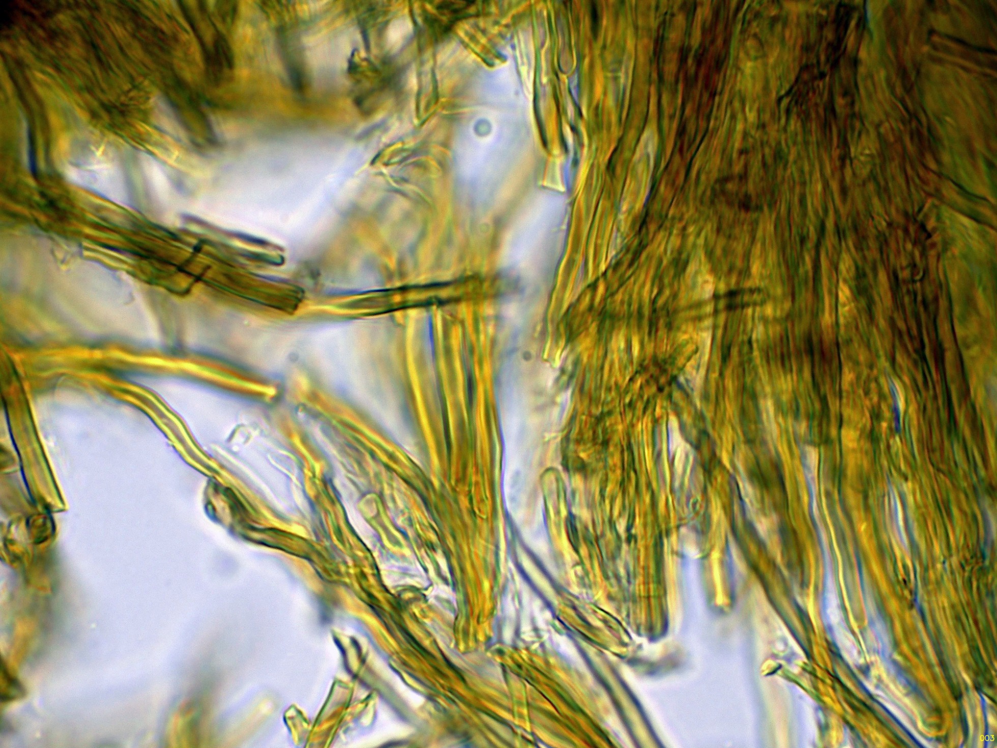 Las hifas tramales en agua, que se corresponden con un sistema hifal dimítico, con hifas generativas desprovistas de fíbulas: