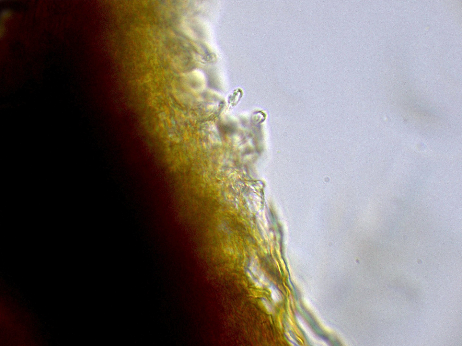 Para colmo tampoco pude obtener esporas, dejo un par de imágenes, donde con mucha imaginación se pueden intuir los basidios: