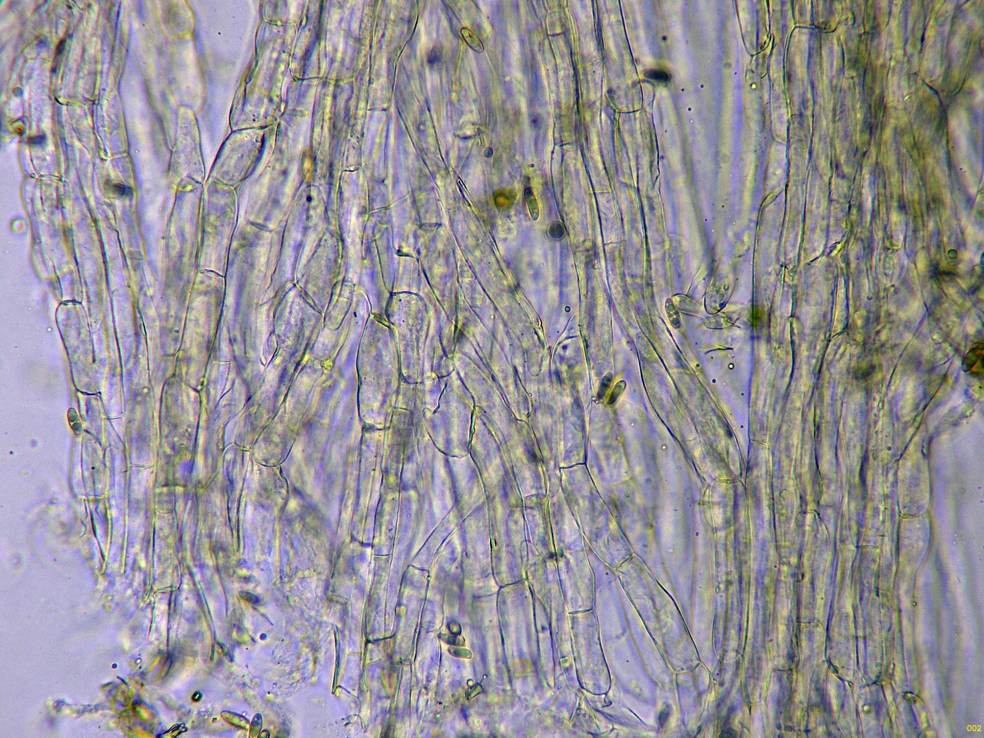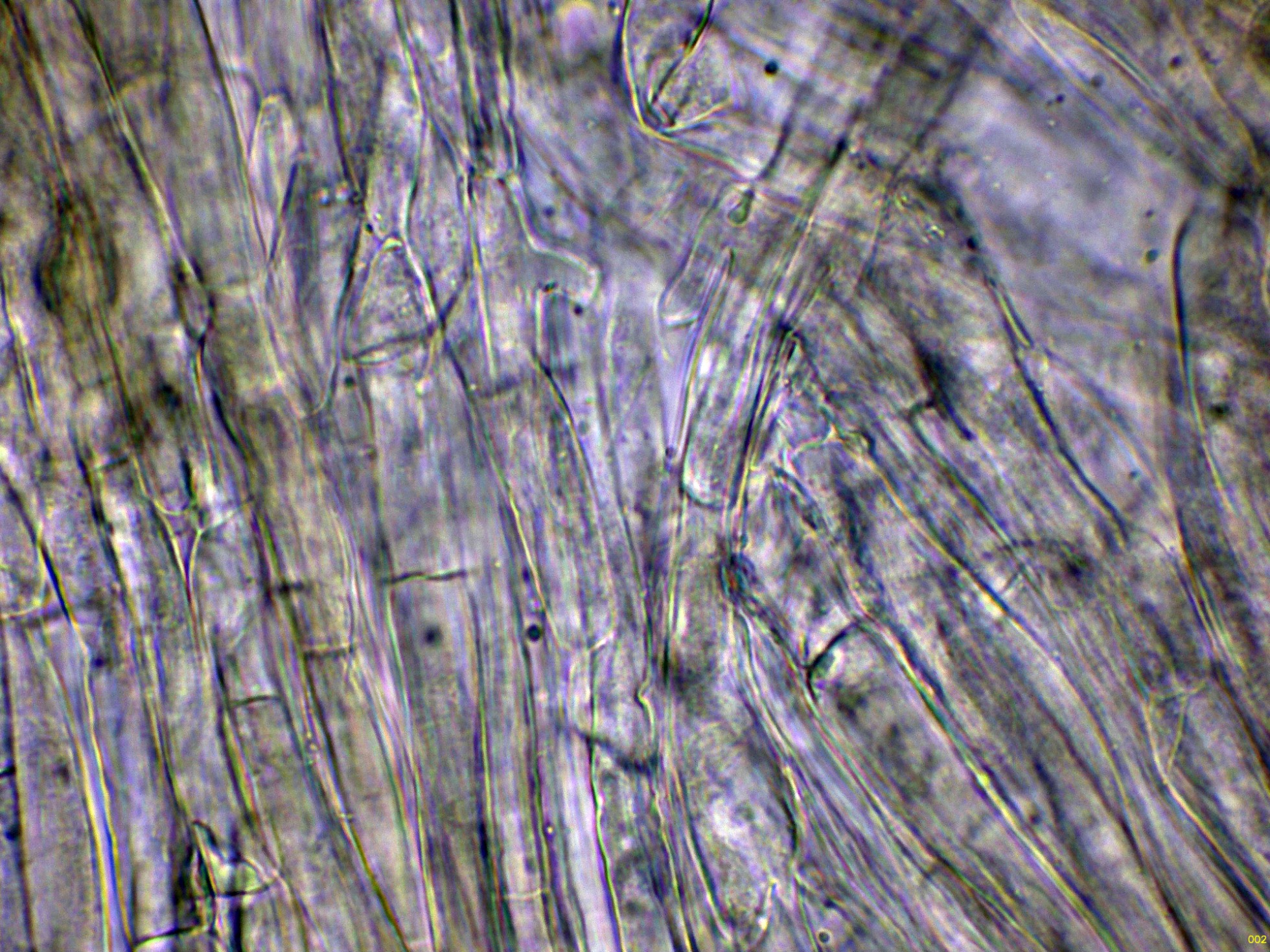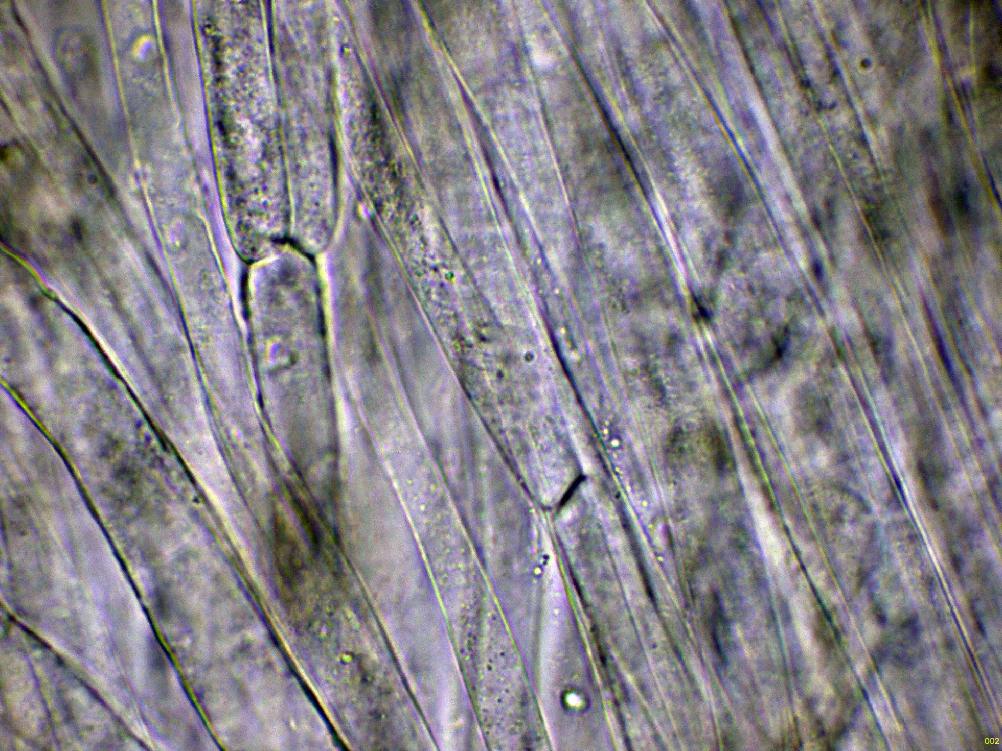 Las hifas de la subpellis en agua, parecidas a las de la suprapellis pero ya más hialinas: