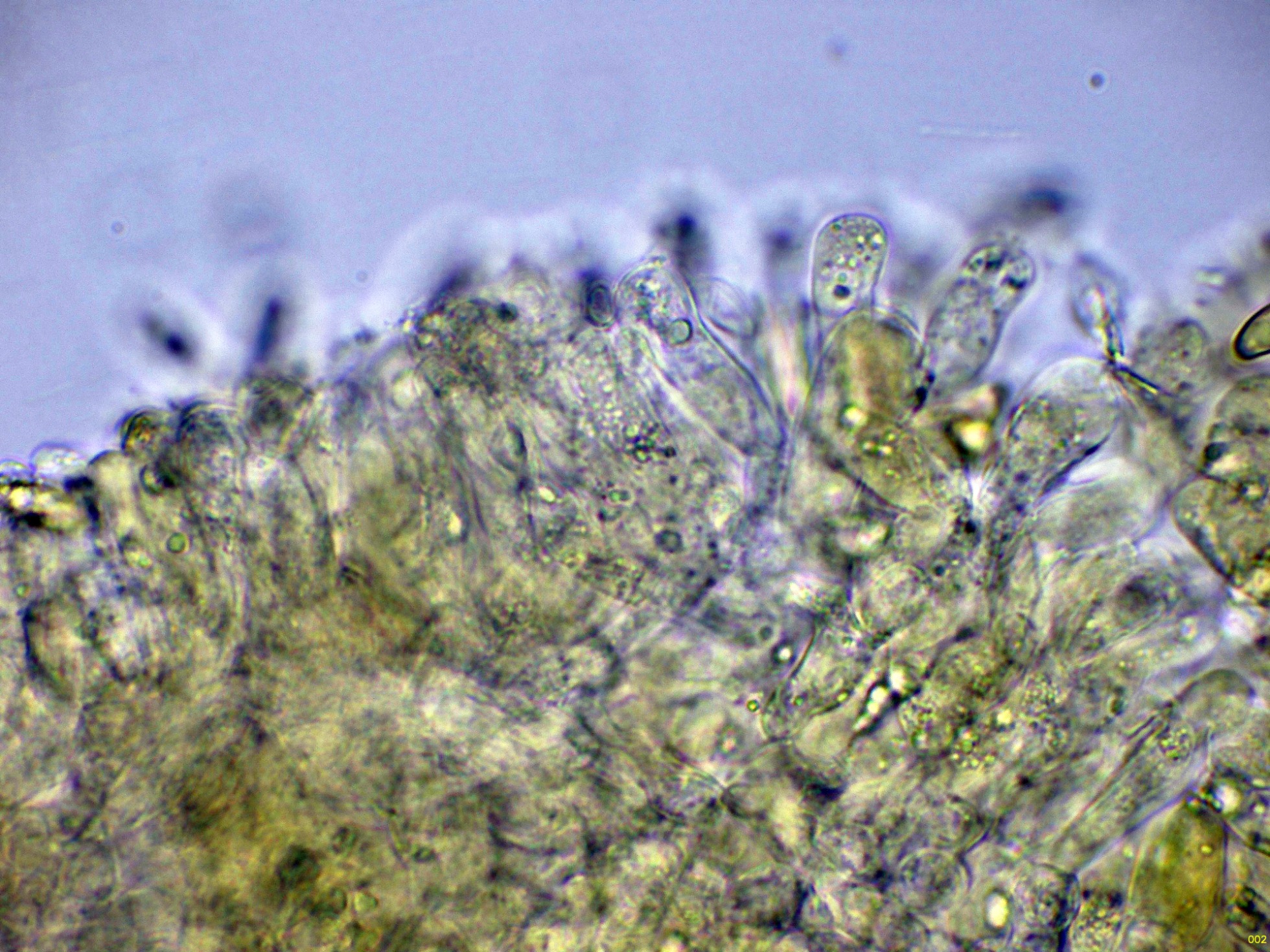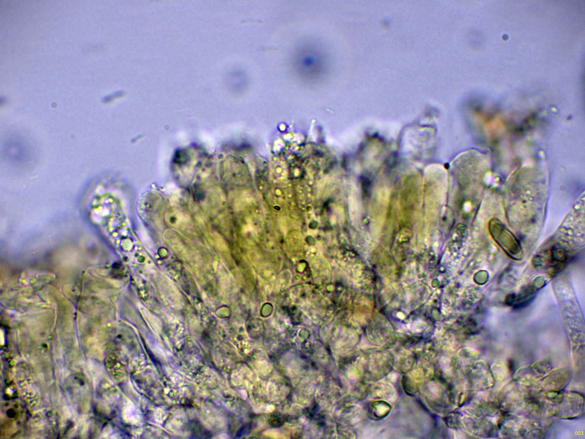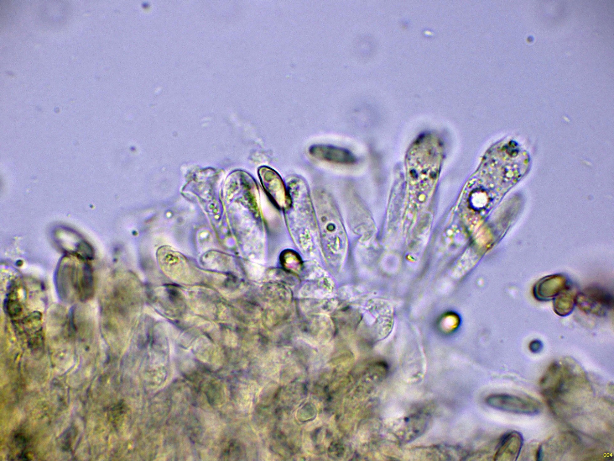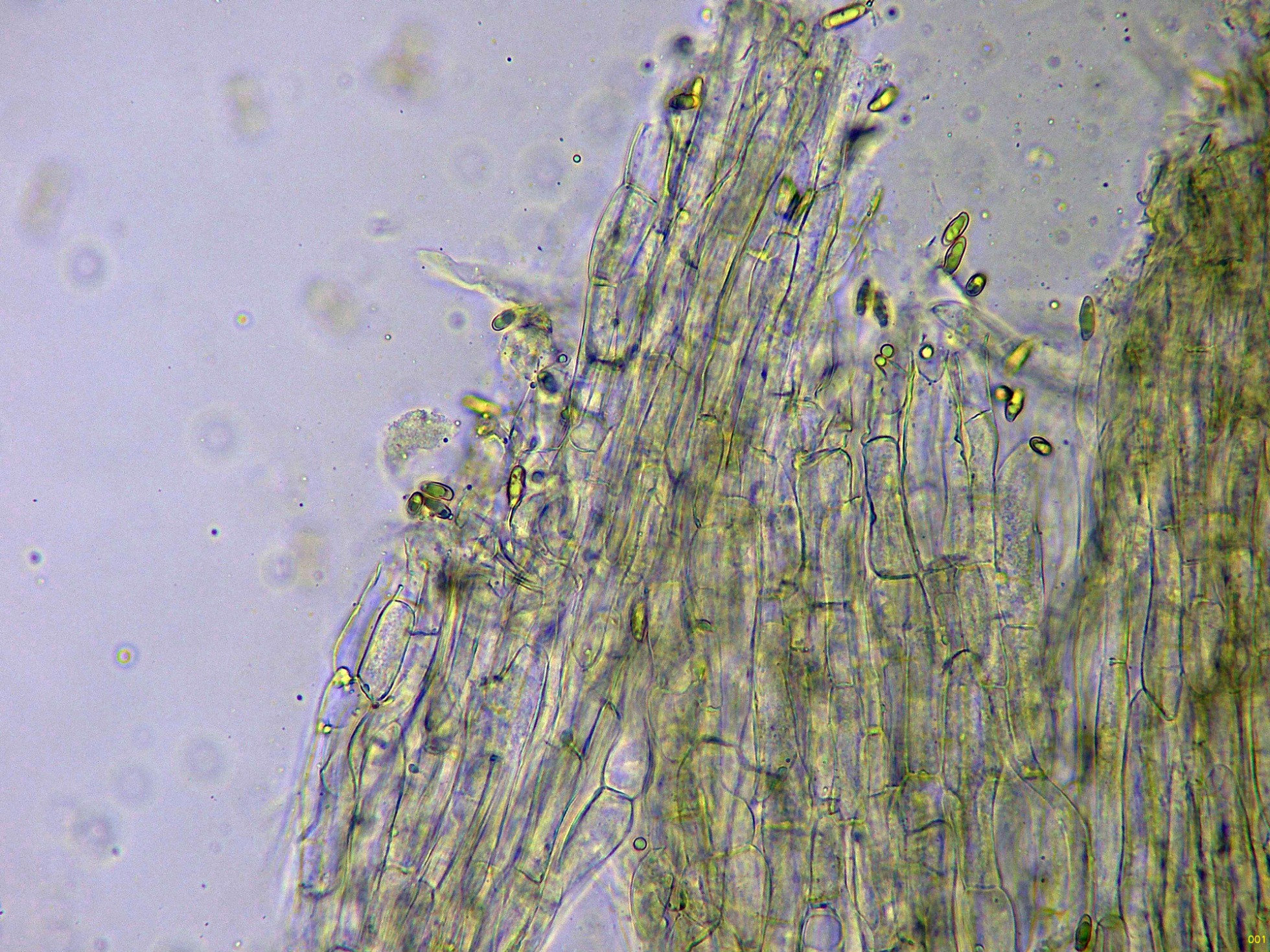 Las hifas de la subpellis en agua, parecidas a las de la suprapellis pero ya más hialinas: