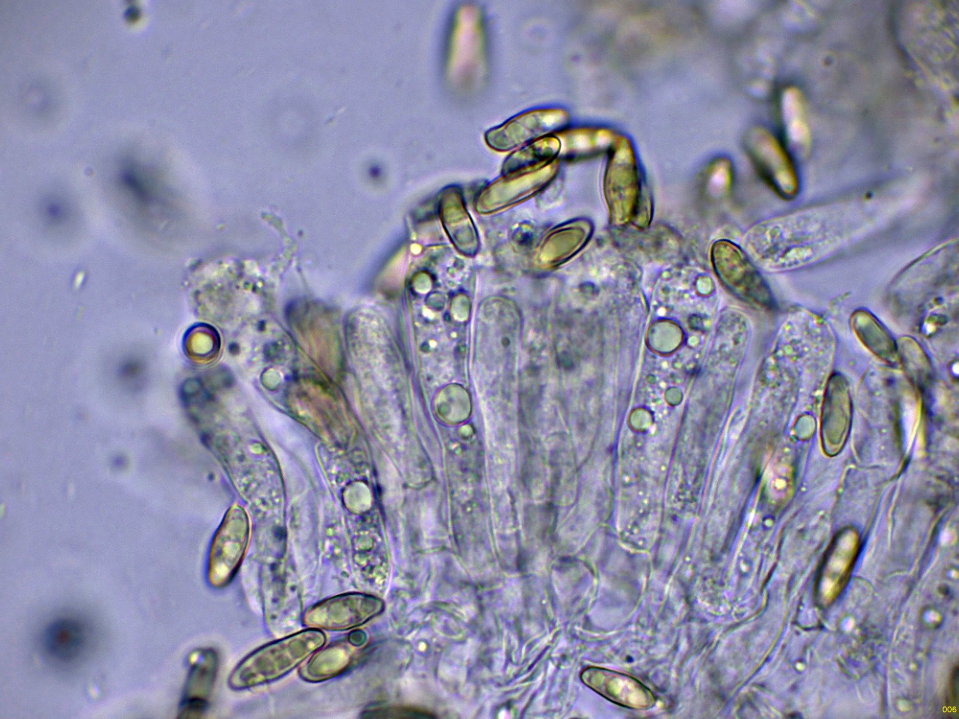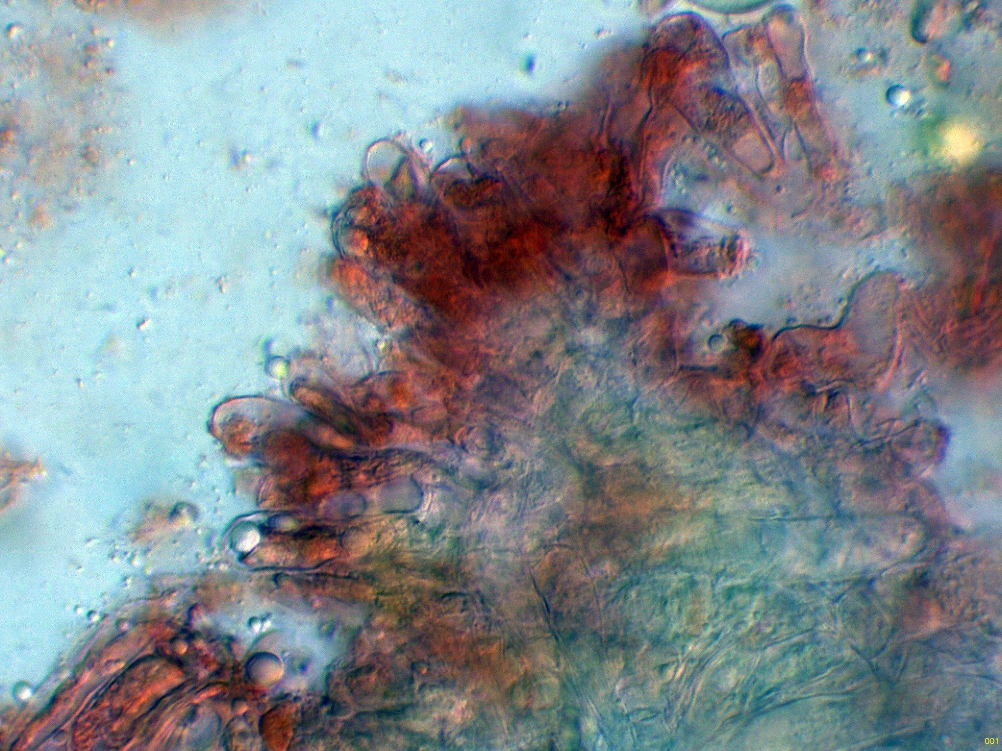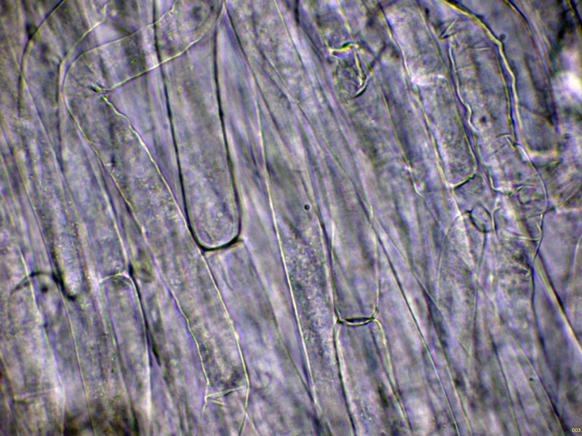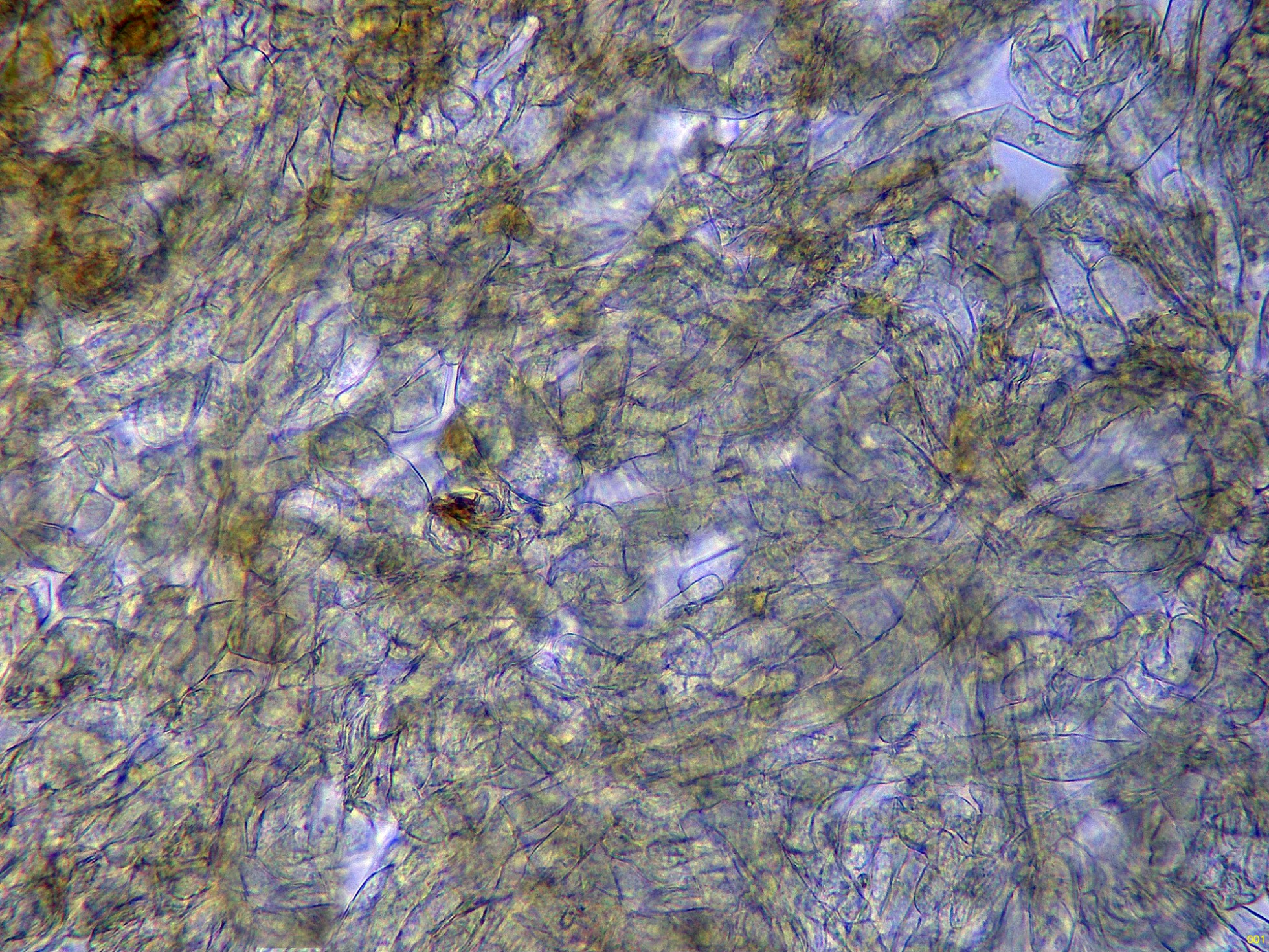 Las hifas de la suprapellis en agua a 400 aumentos, con pigmento intracelular ocráceo: