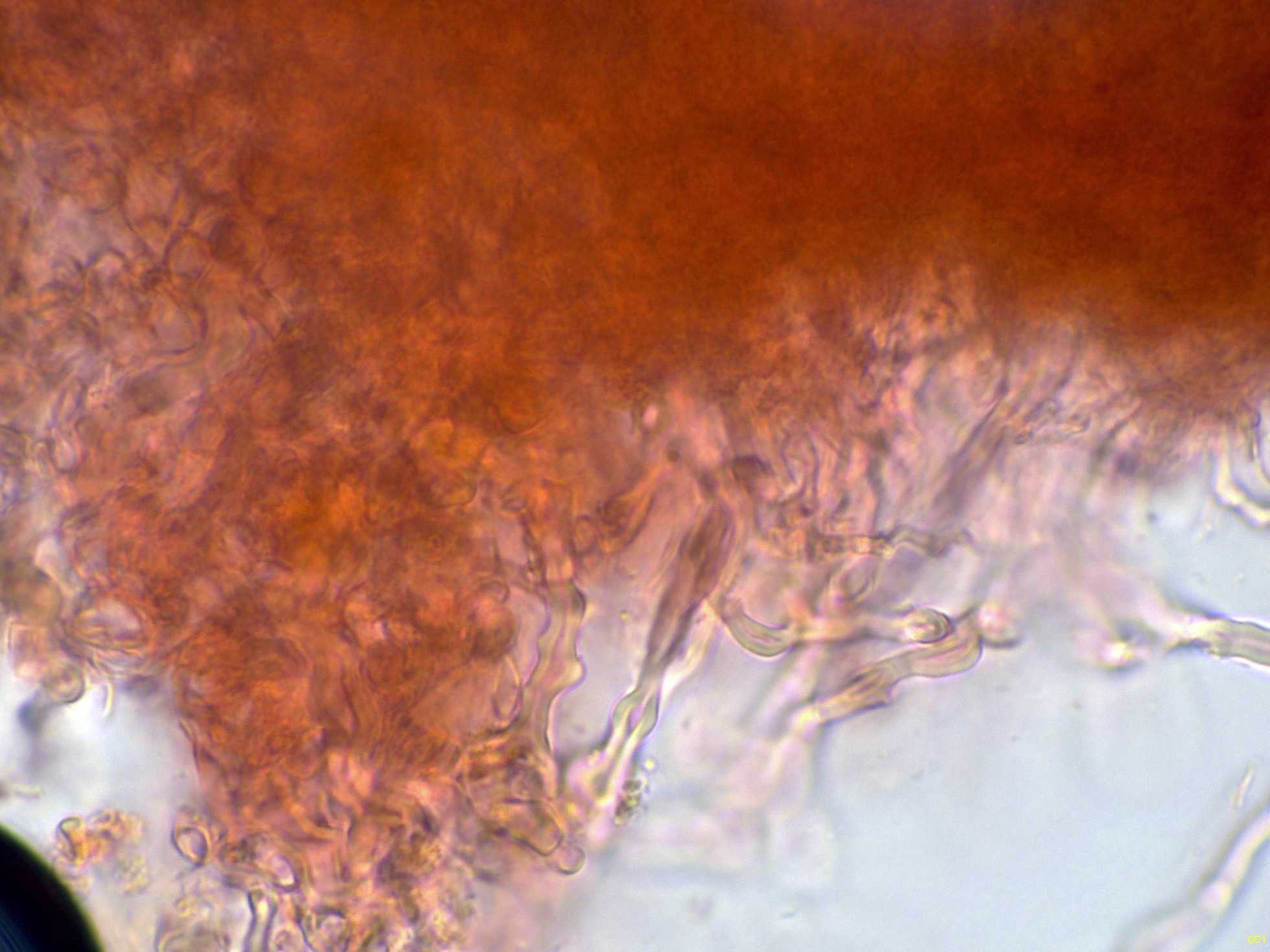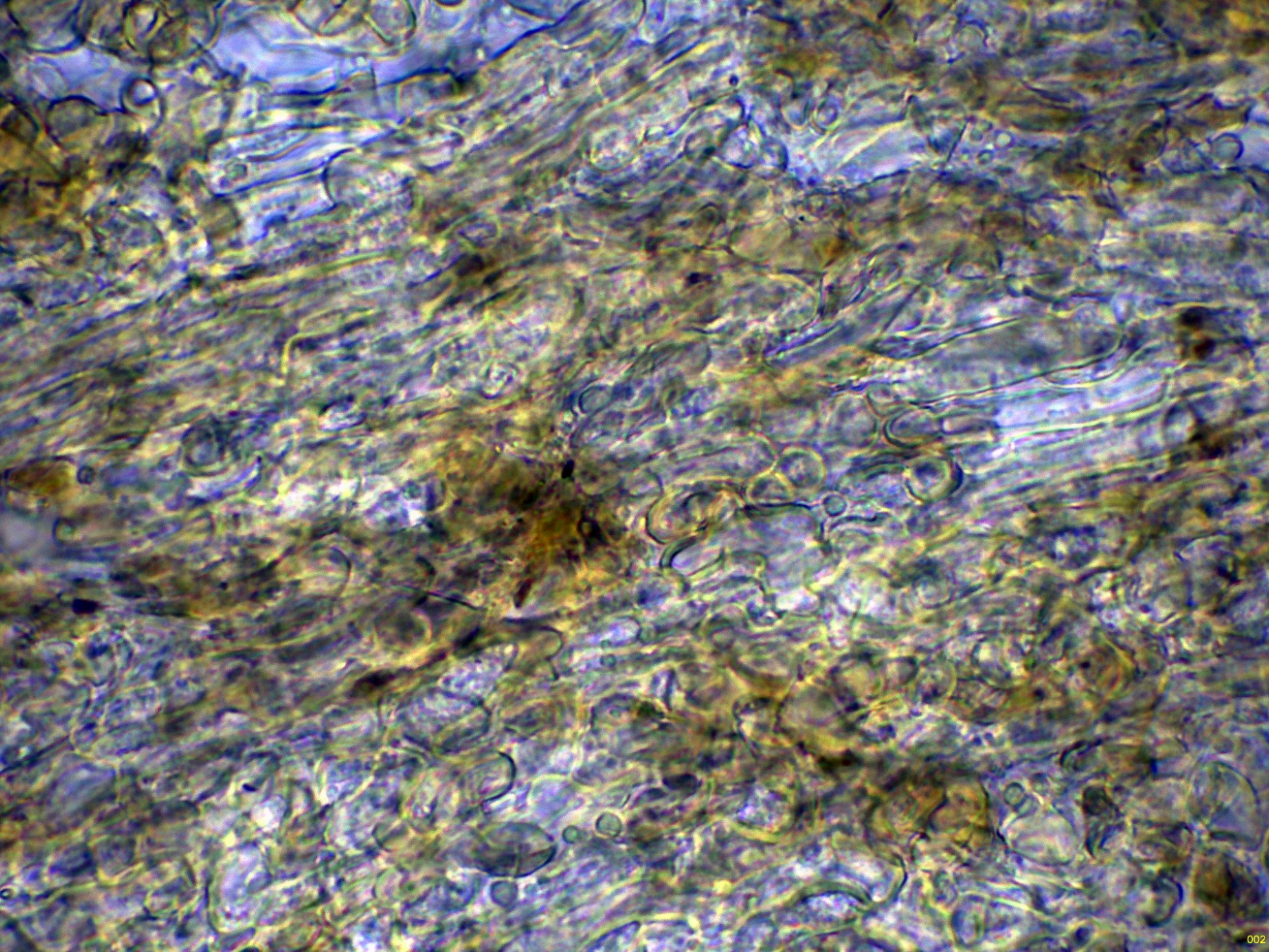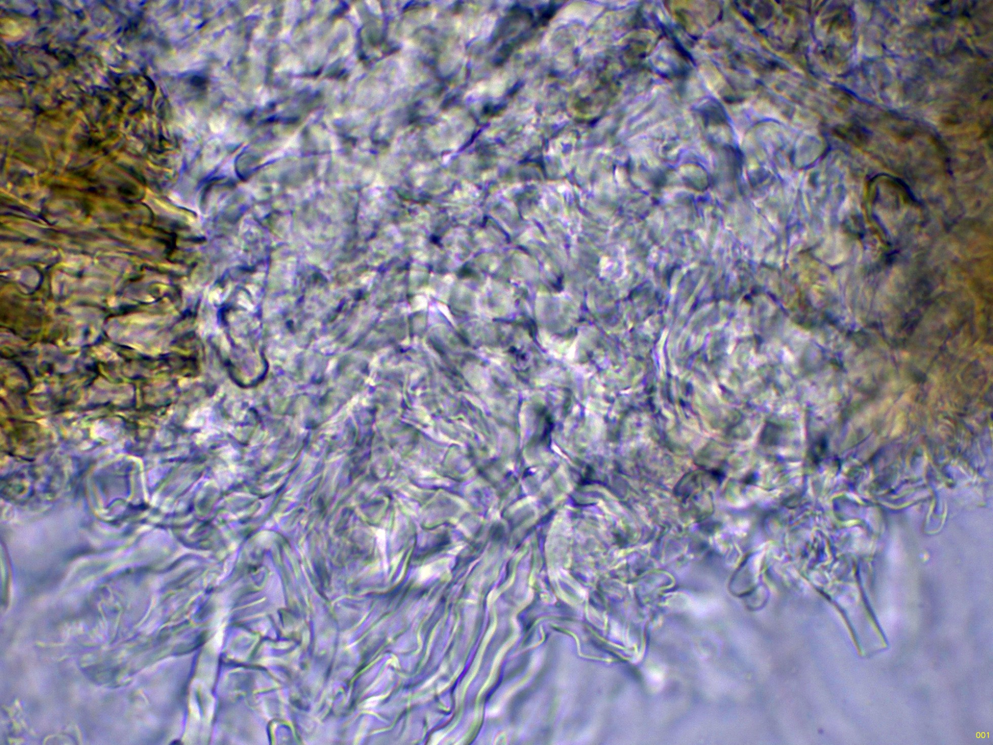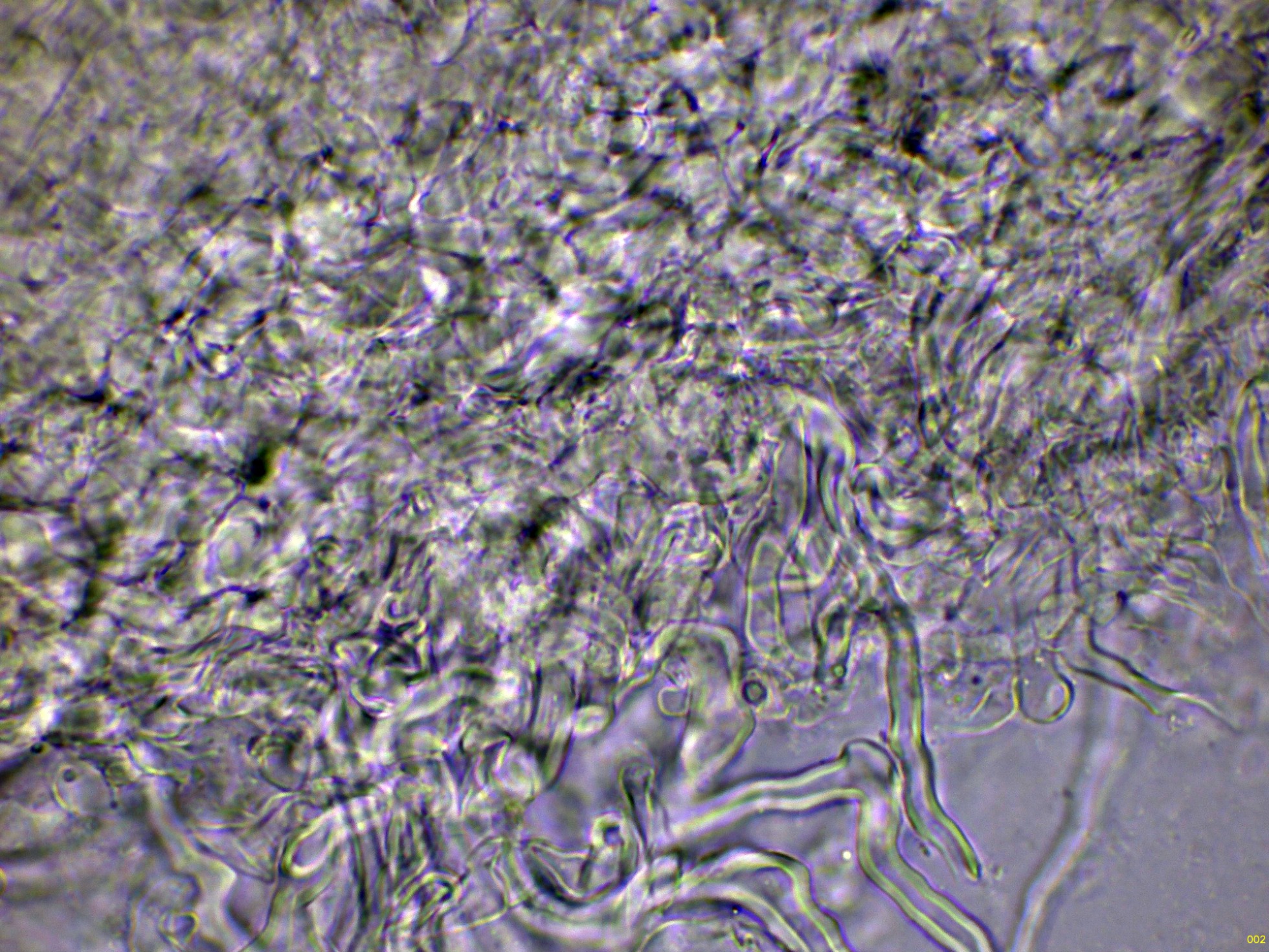 Por debajo de las anteriores, las hifas de la subpellis, estas ya más hialinas: