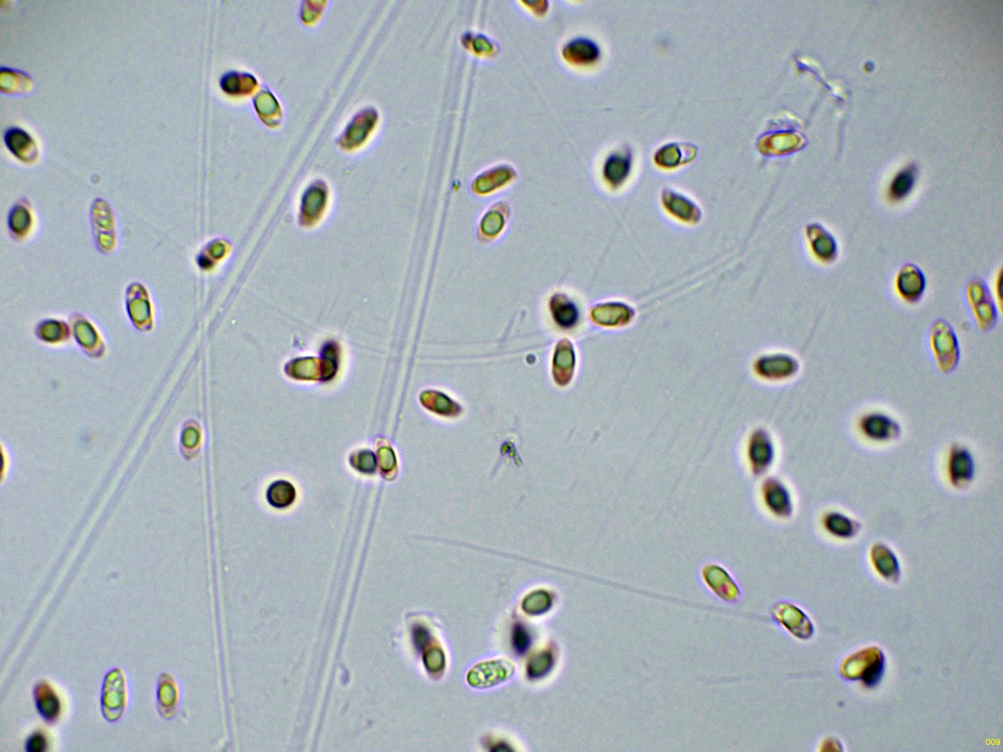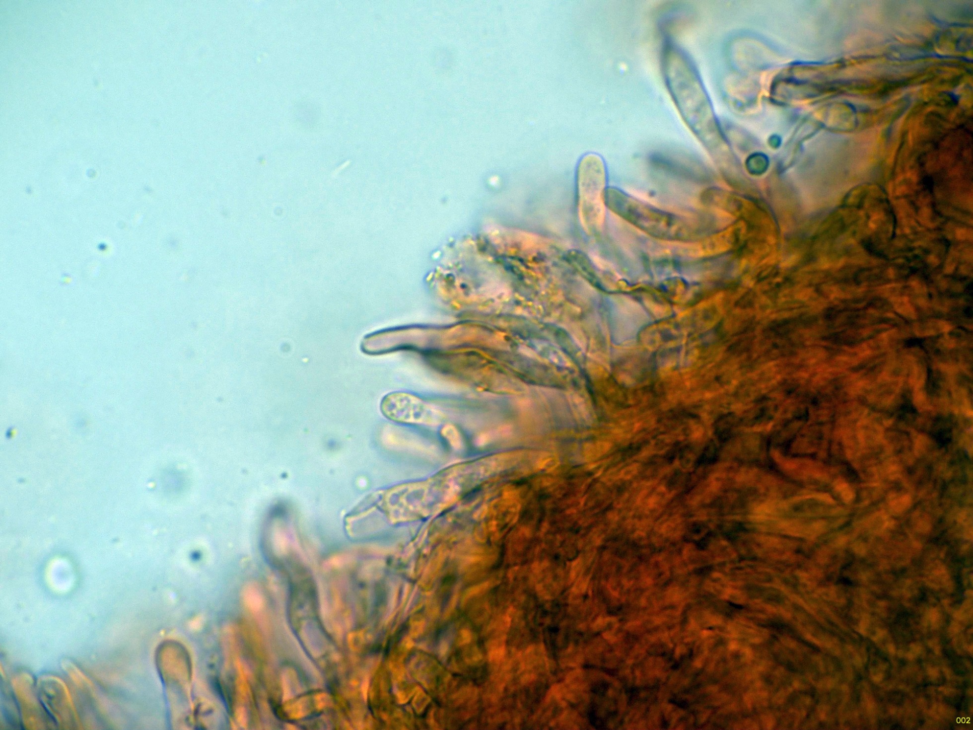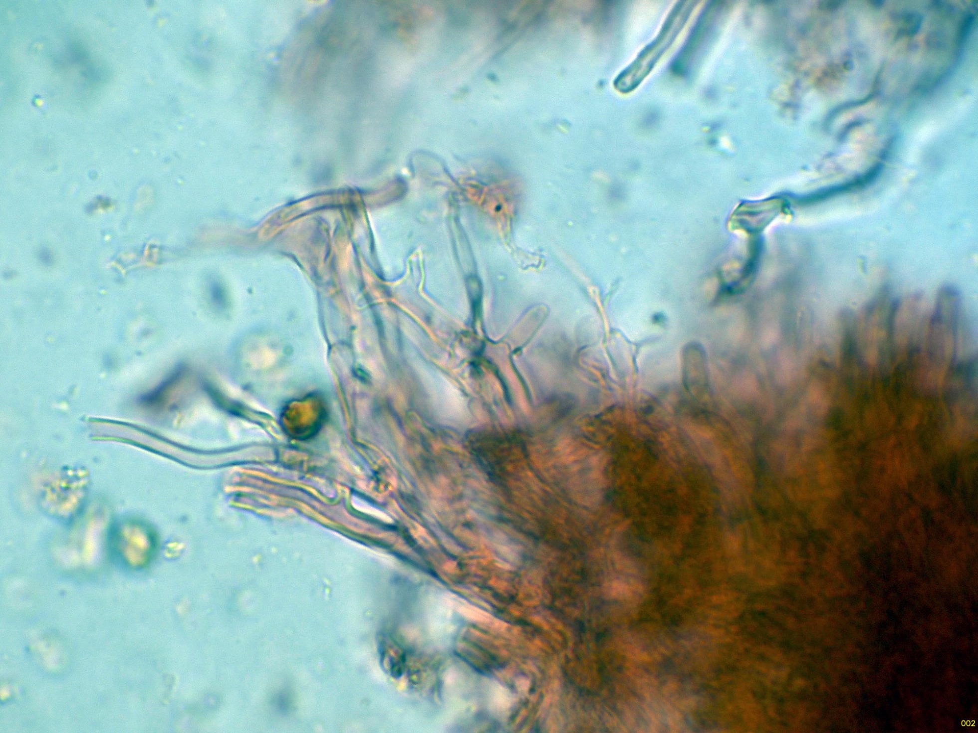 Las hifas de la suprapellis en agua, con pigmento intracelular ocráceo: