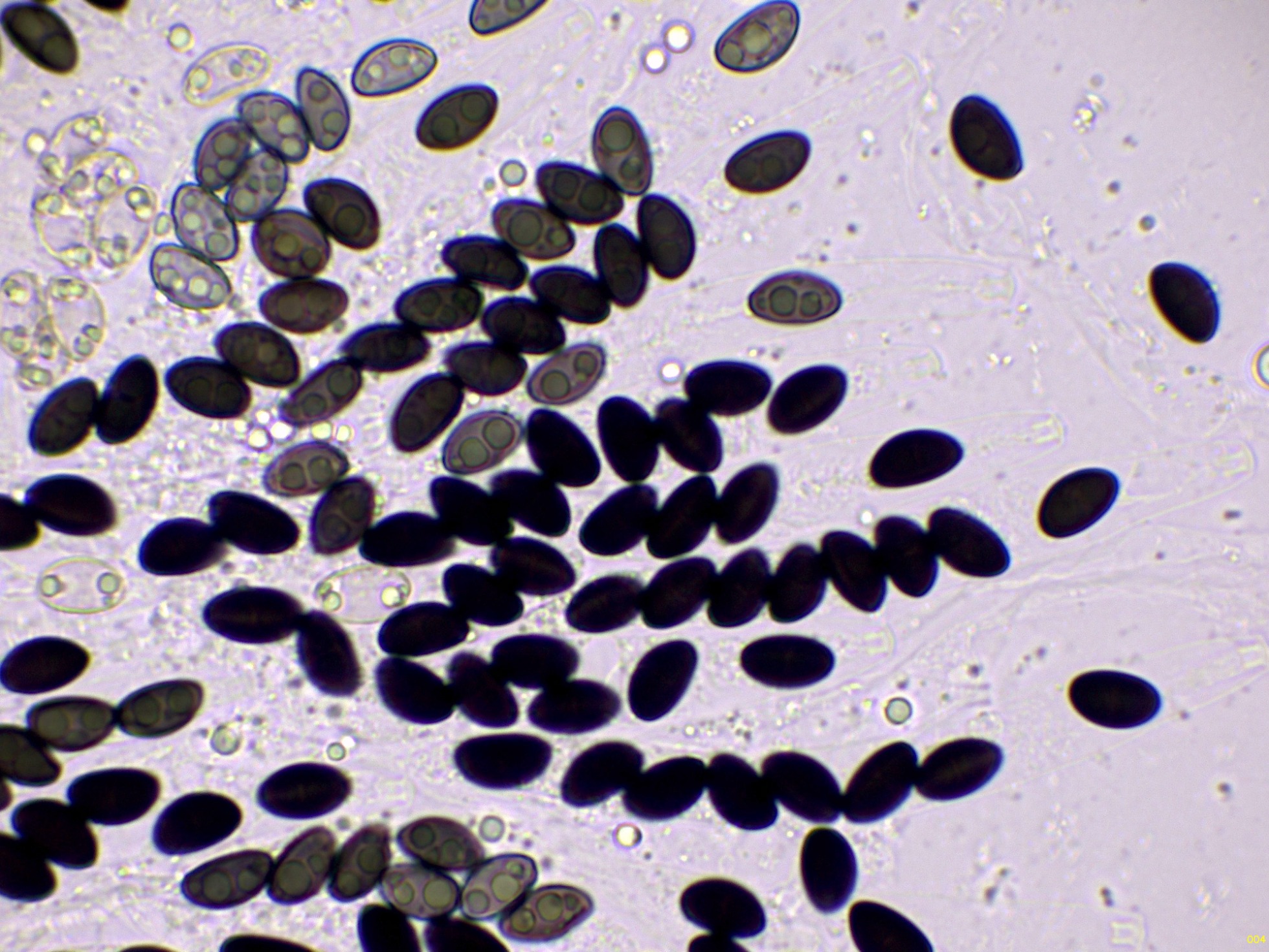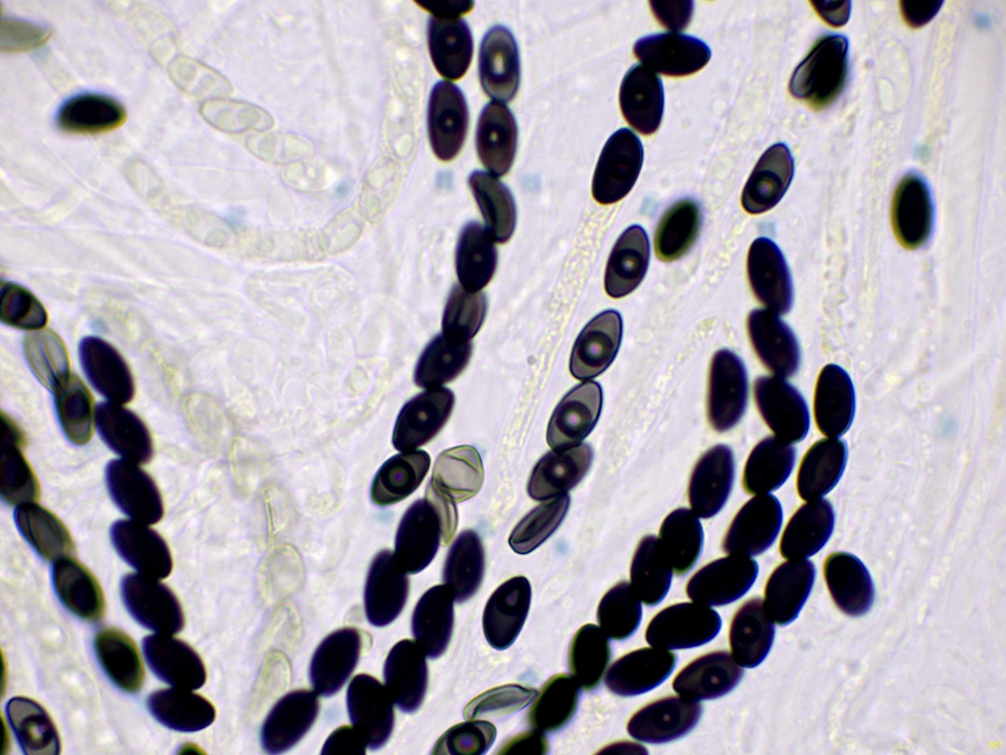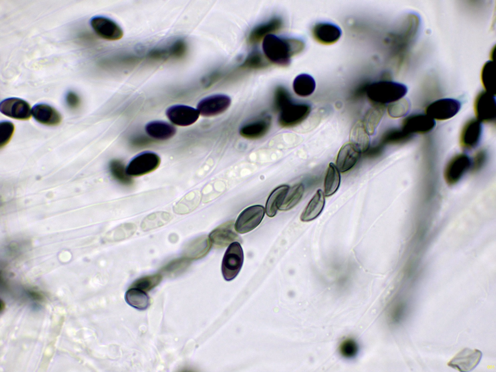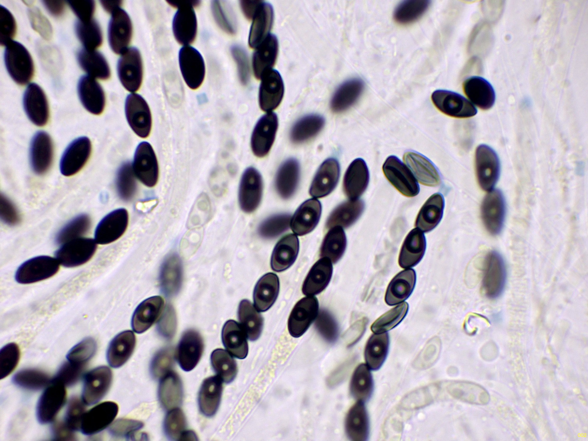 Ascosporas con hendidura germinal recta, muy difícil de observar: