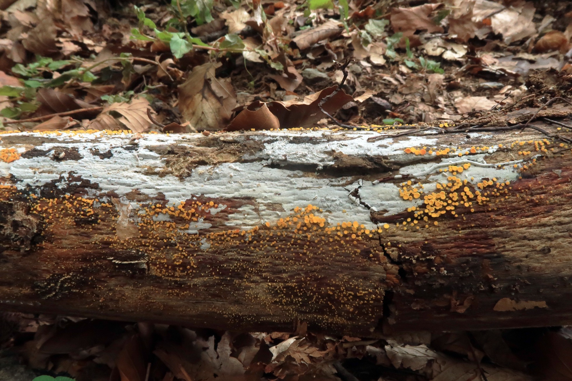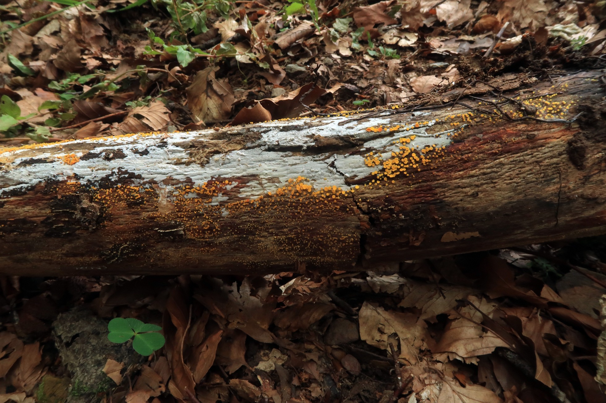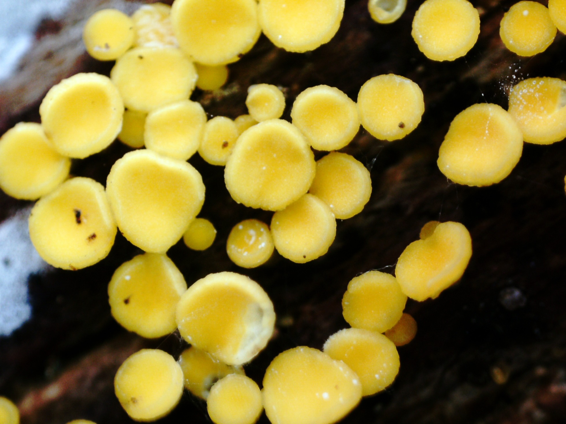 El primero, un ascomiceto, a pie de campo pensamos en otra cosa, pero acabó tratándose de la abundante Bisporella citrina = Calycina citrina: