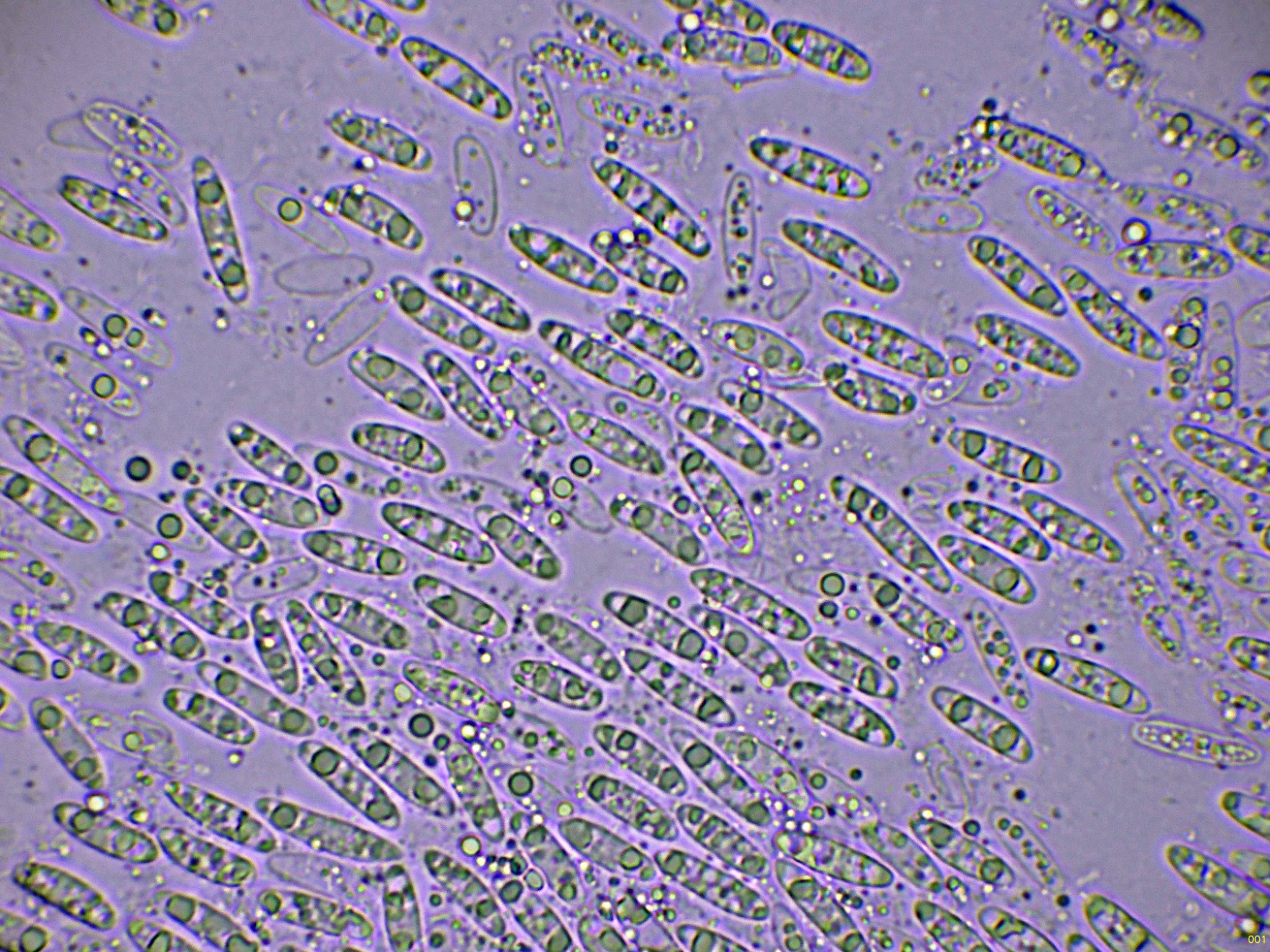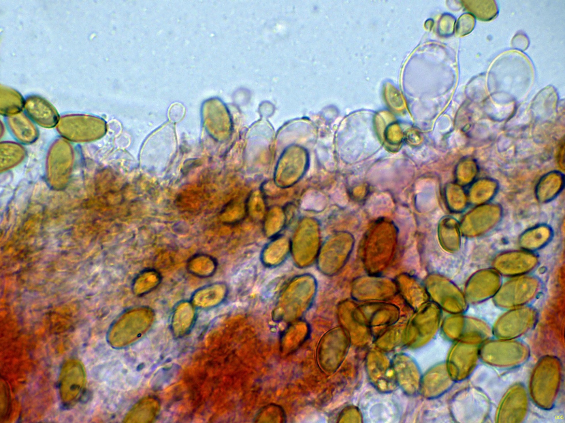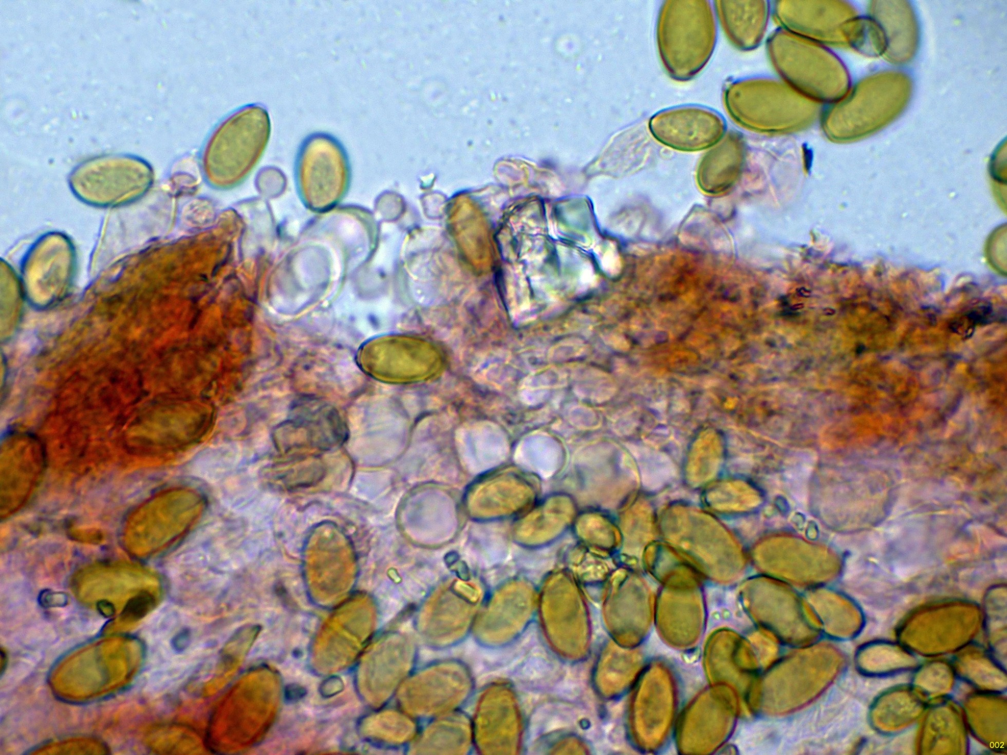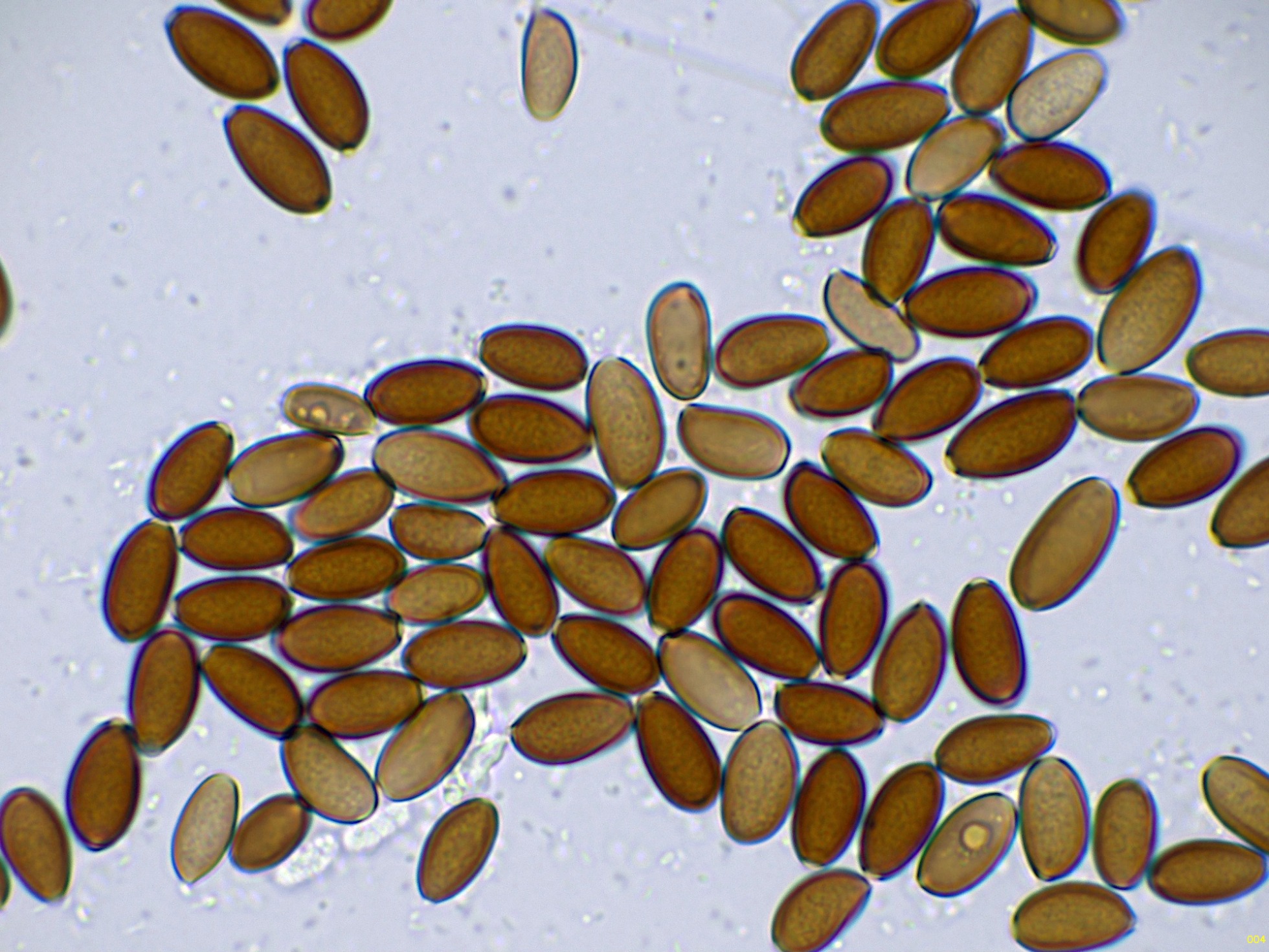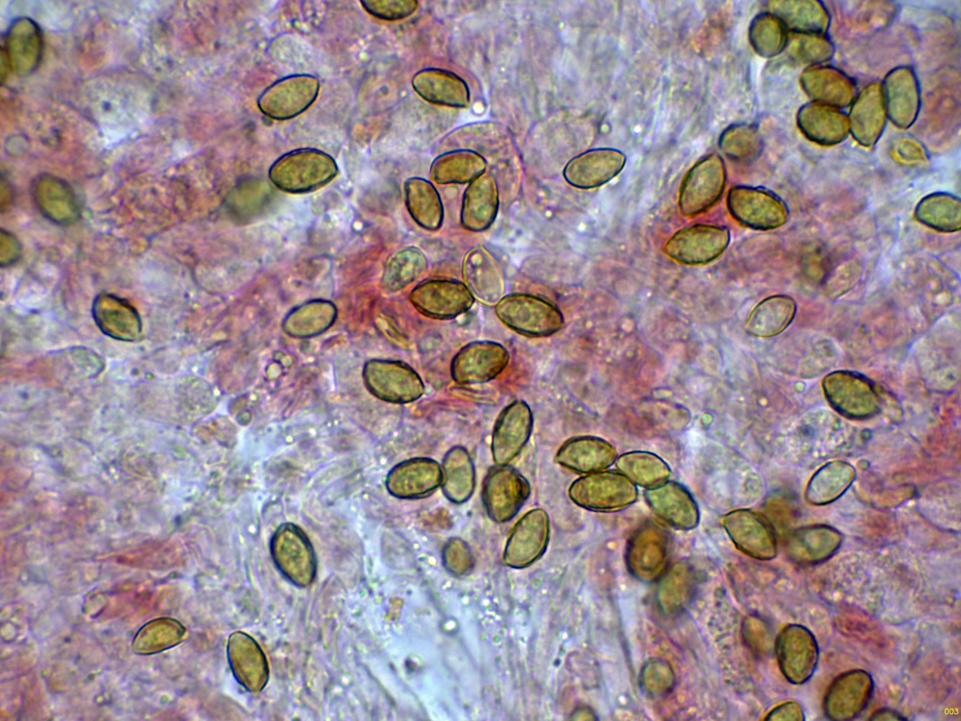 Las esporas en solución de KOH, en este medio oscurecen notablemente: