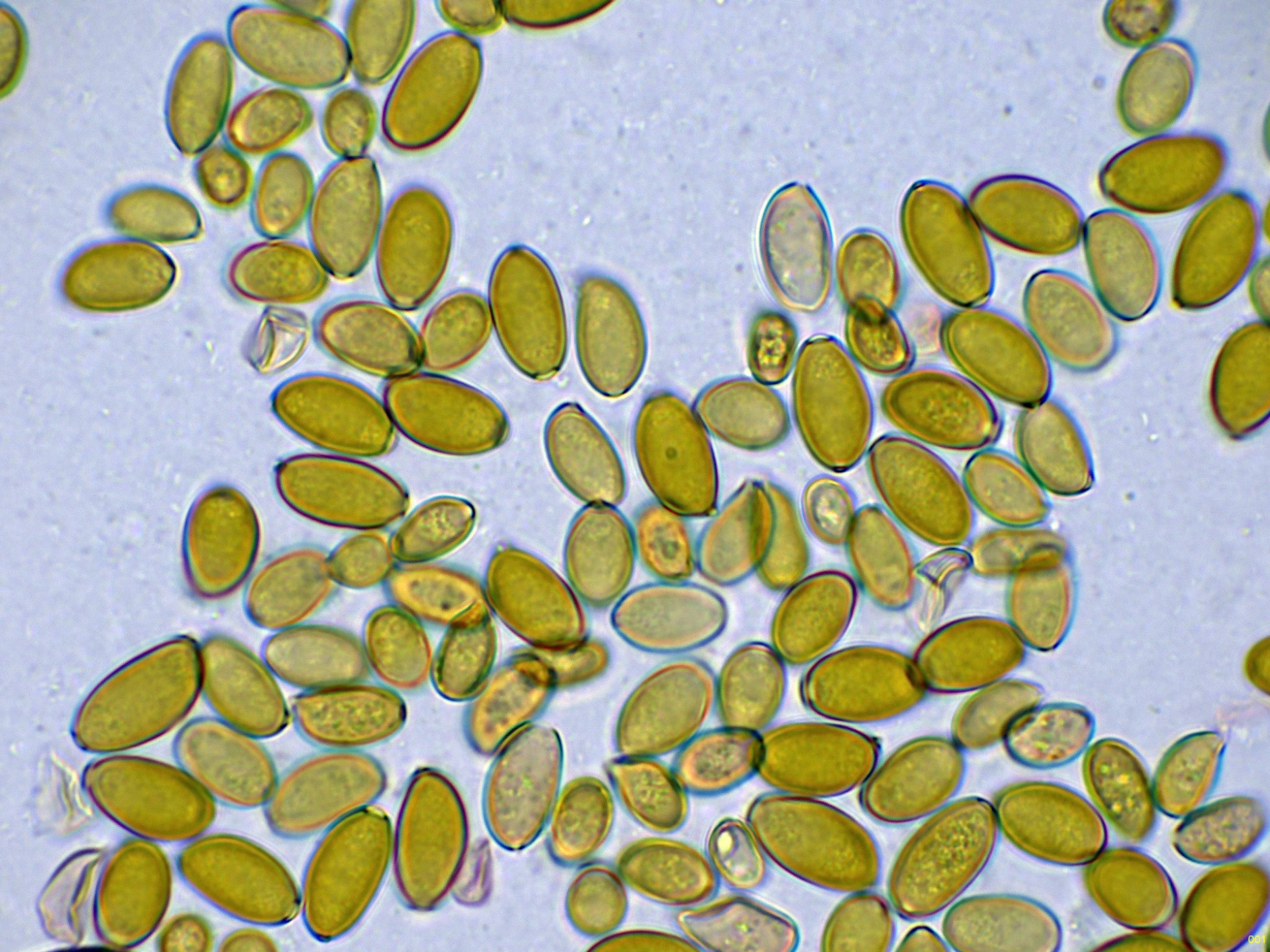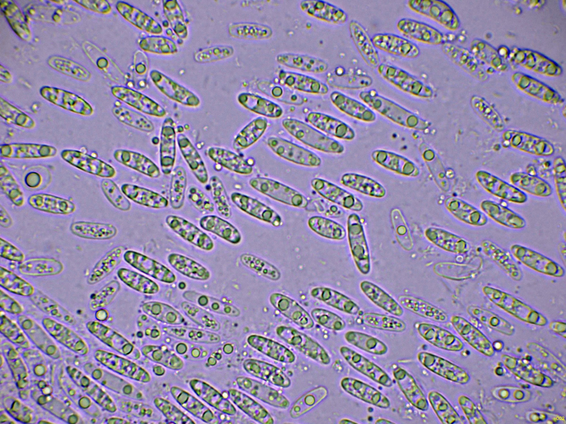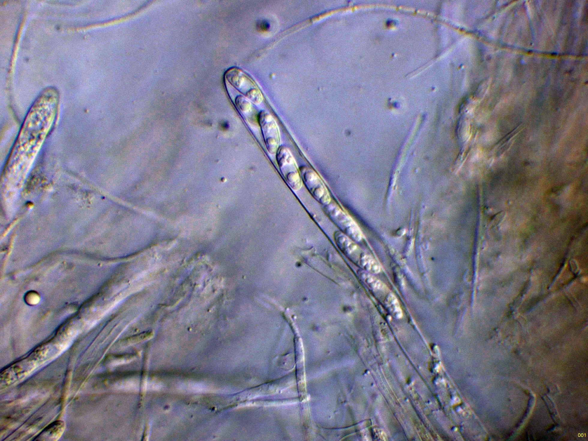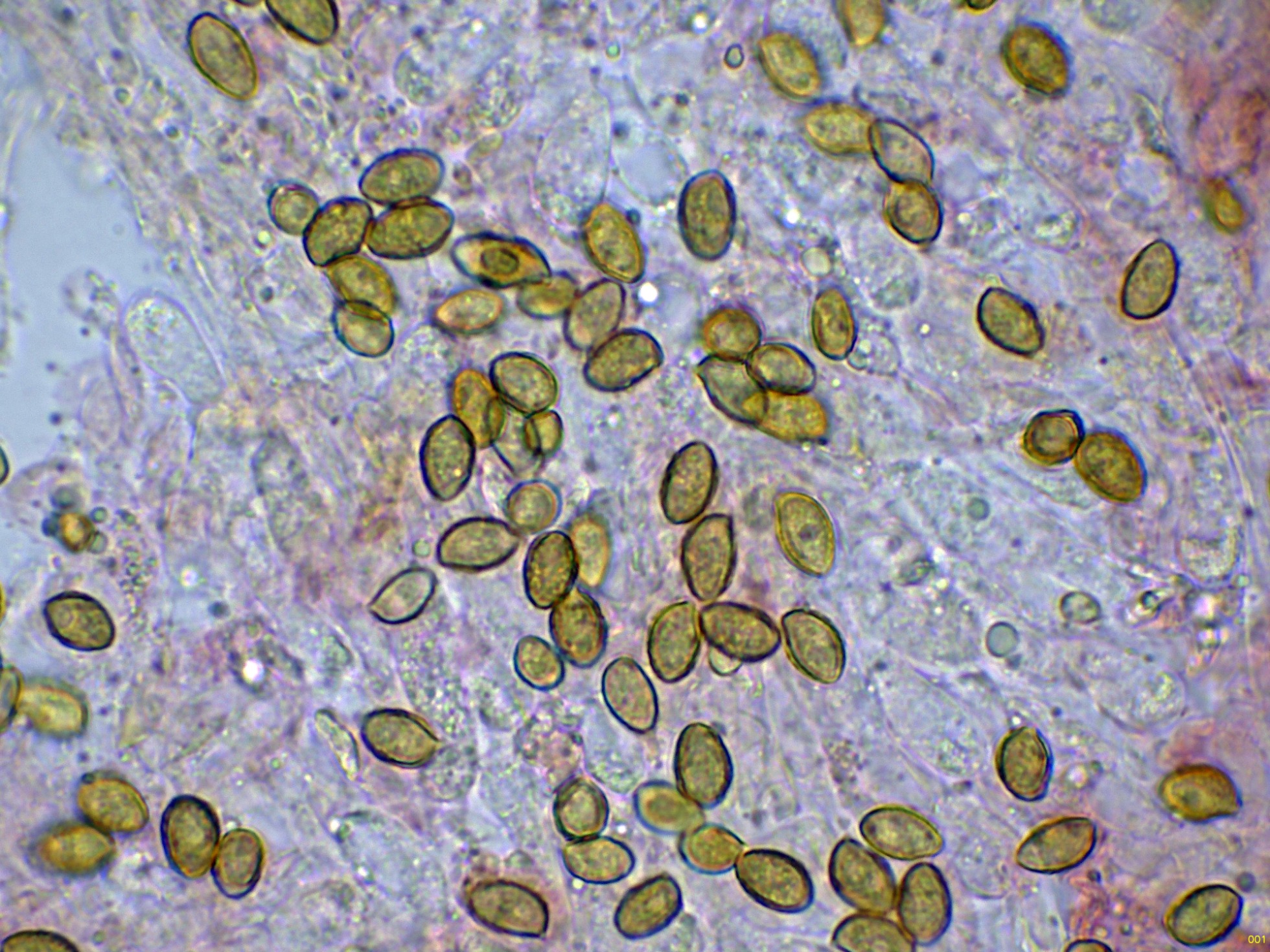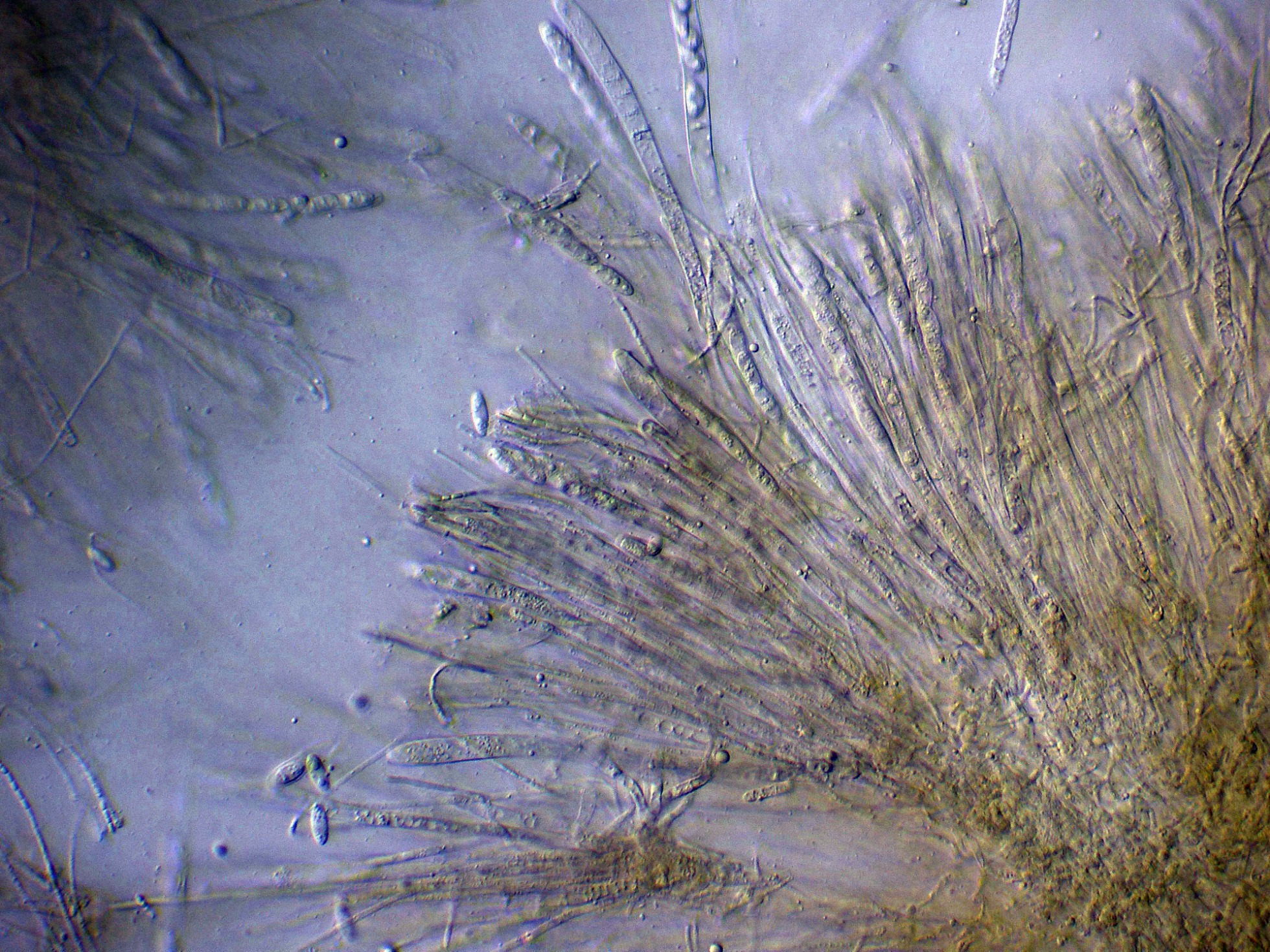 Las esporas en solución de KOH, en este medio oscurecen notablemente: