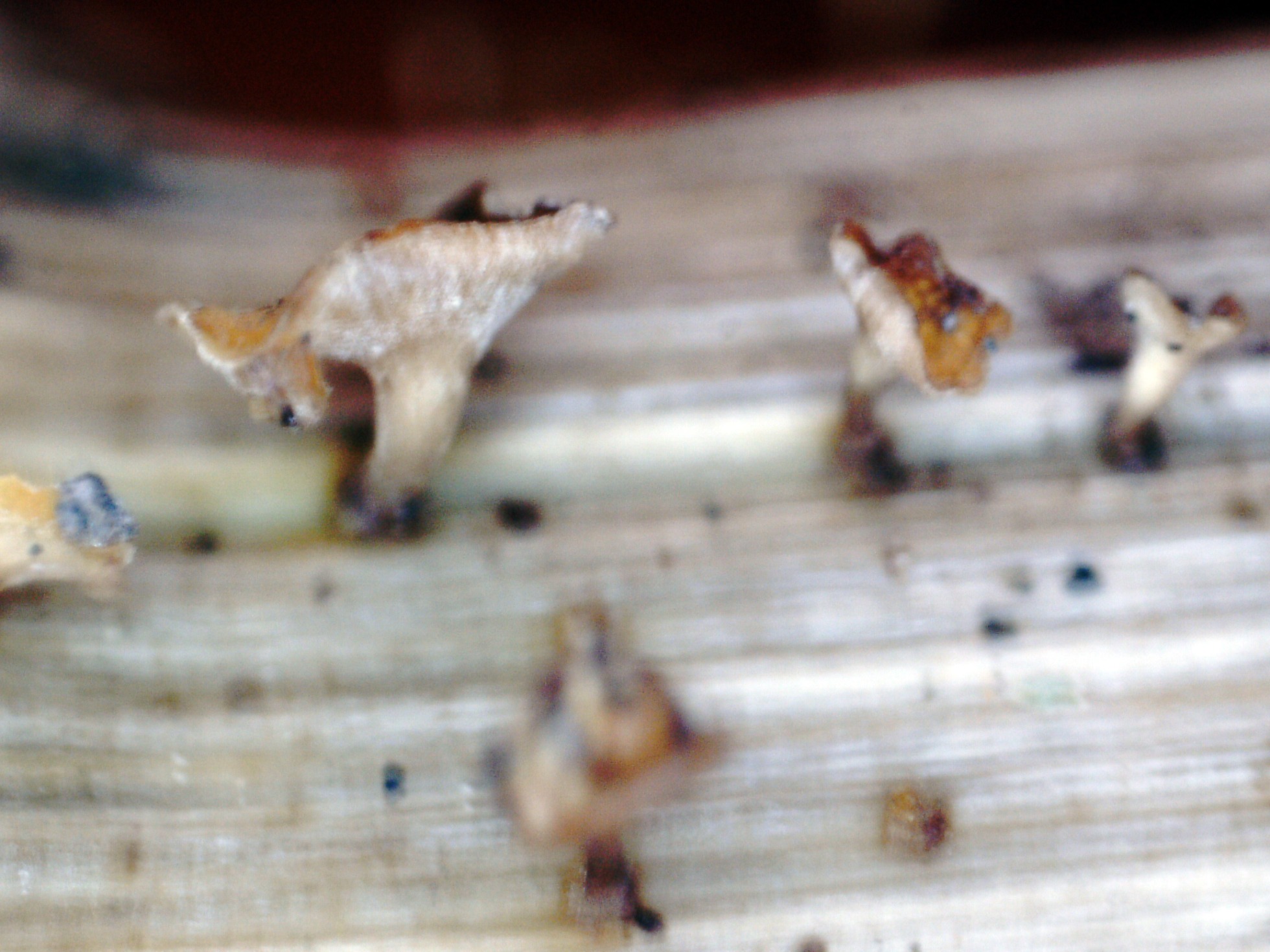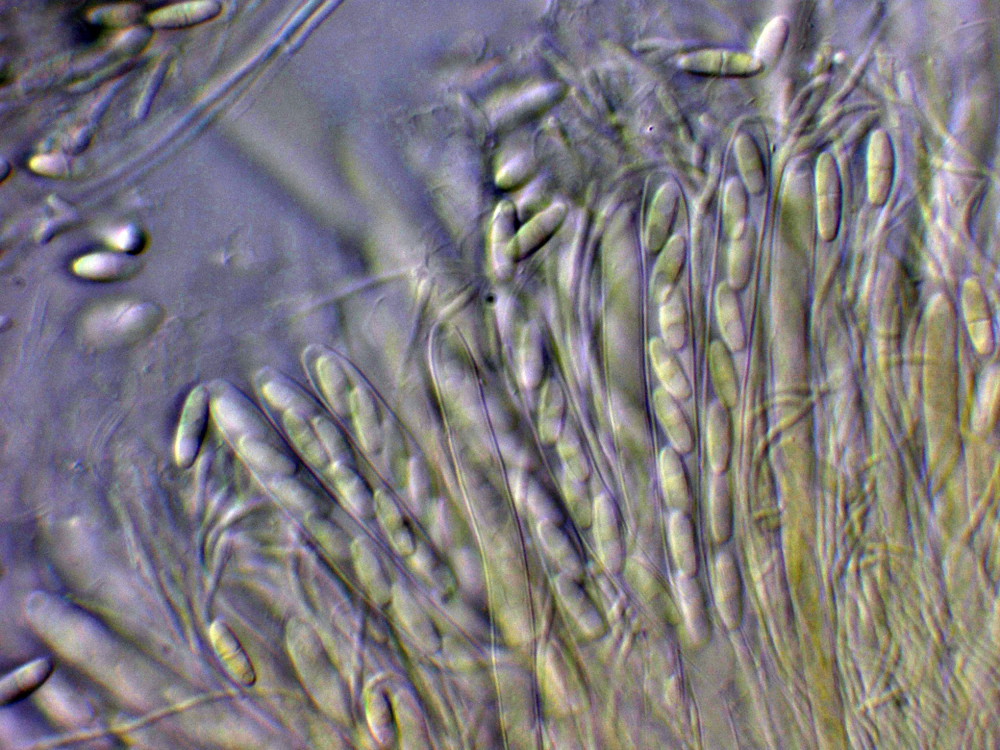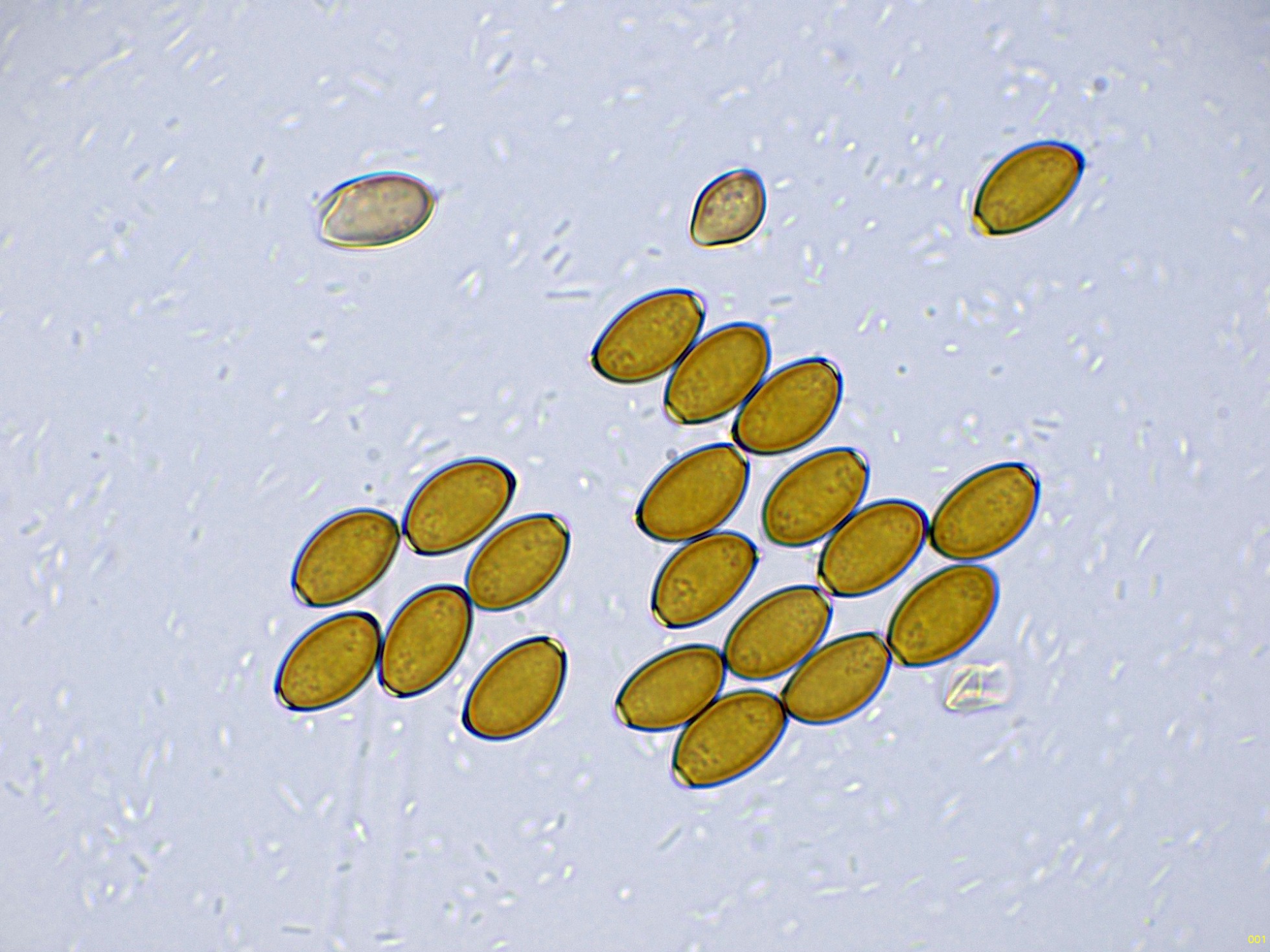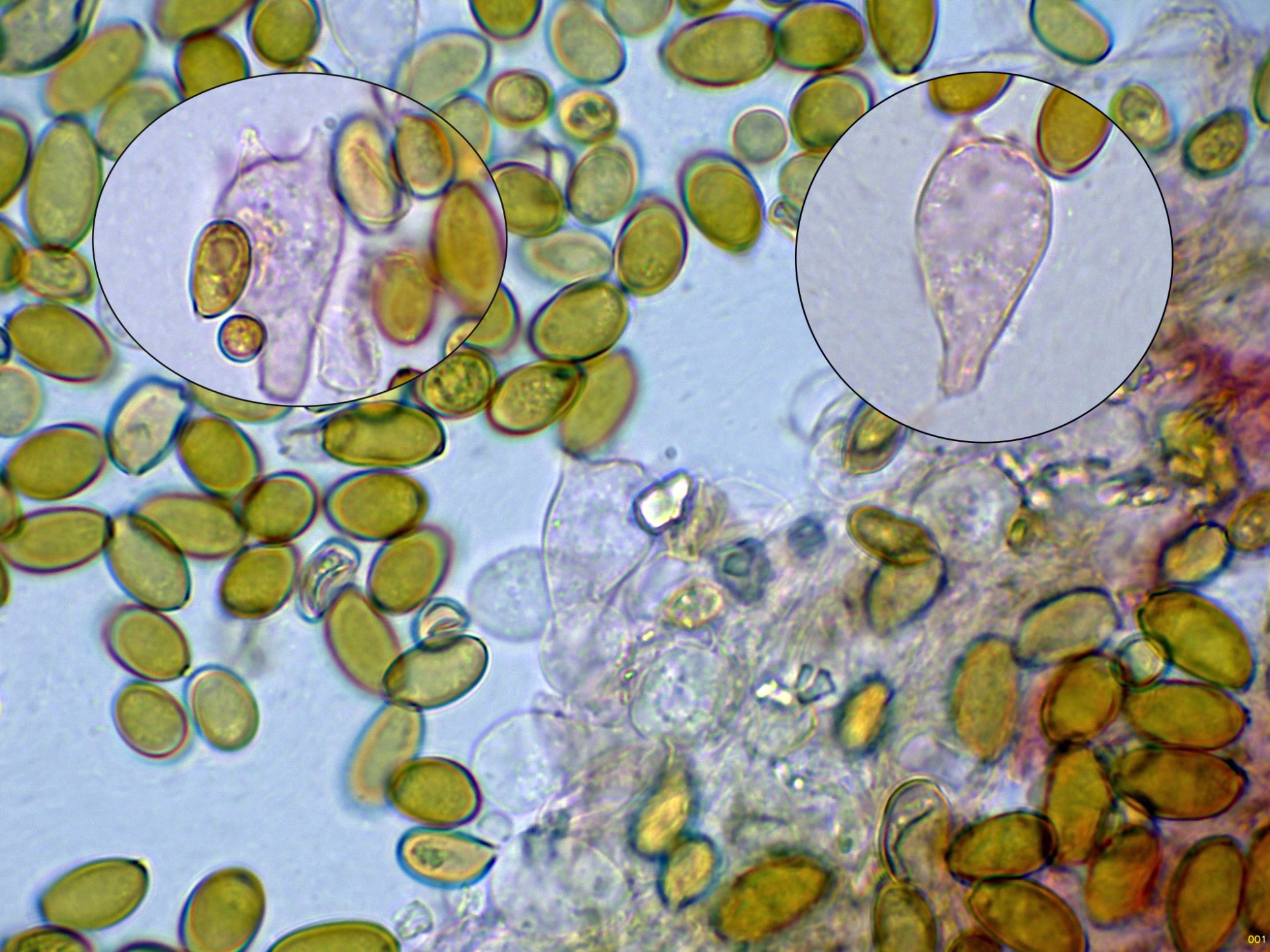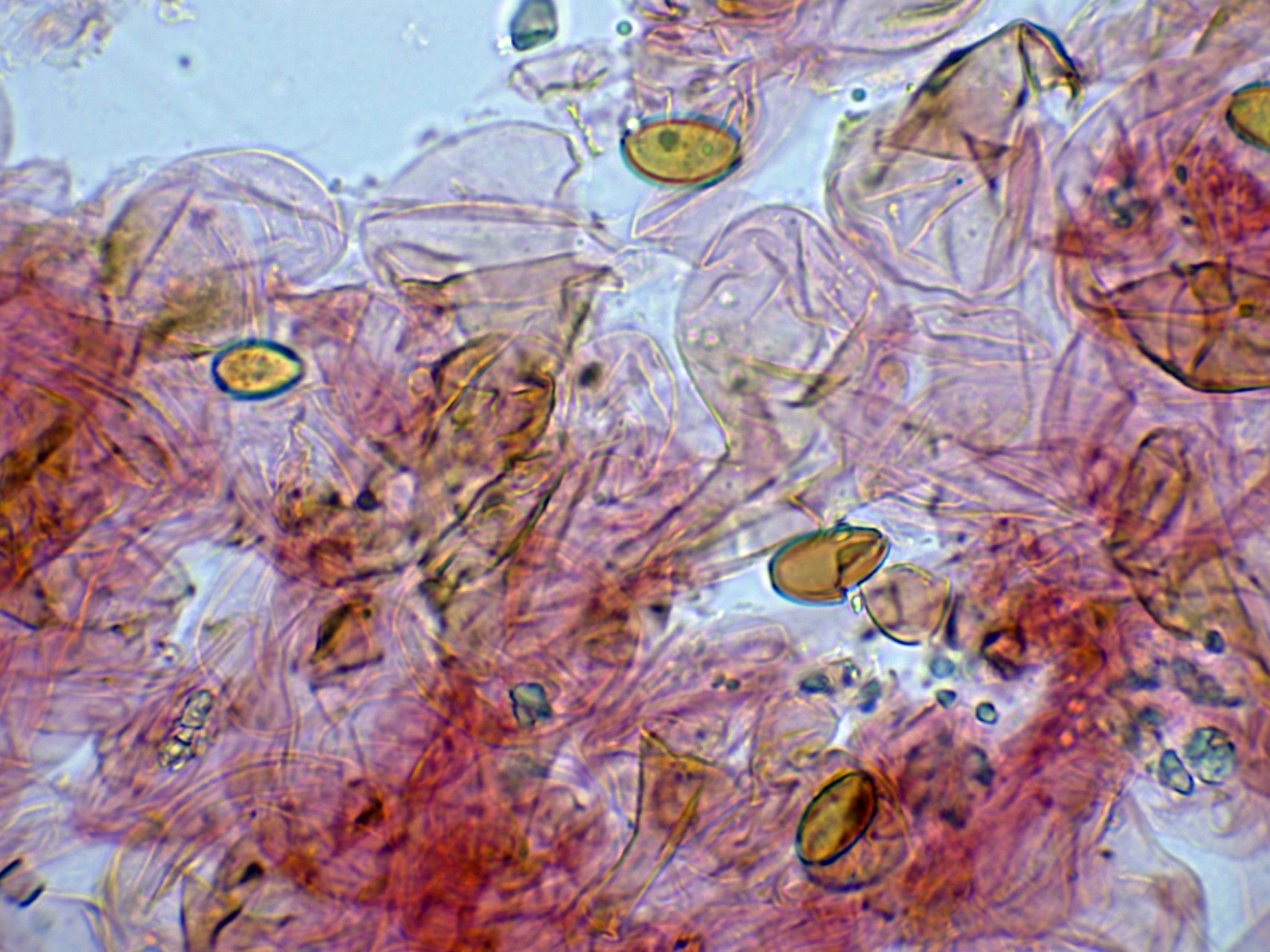 Las esporas en solución de KOH, en este medio oscurecen notablemente: