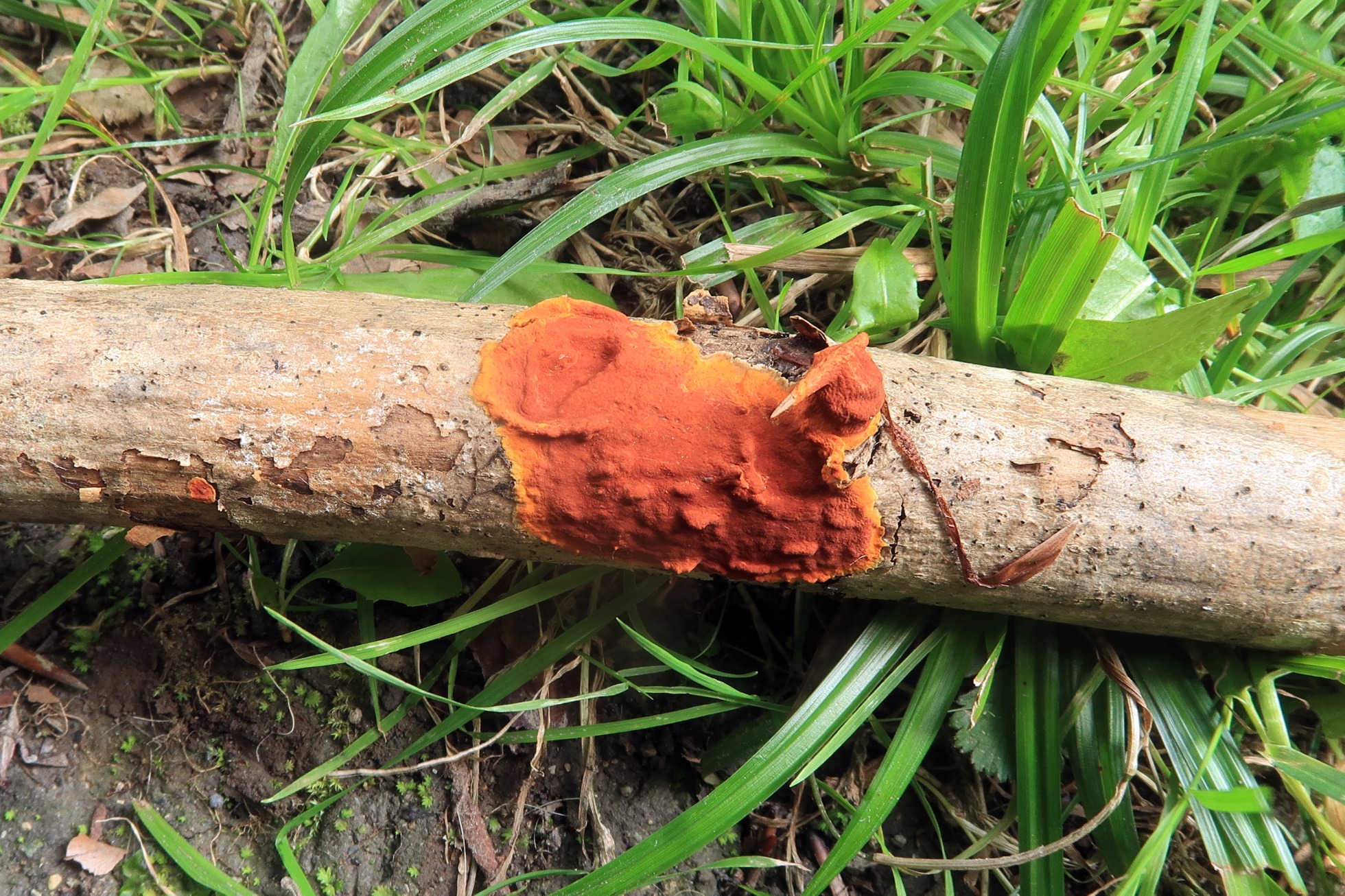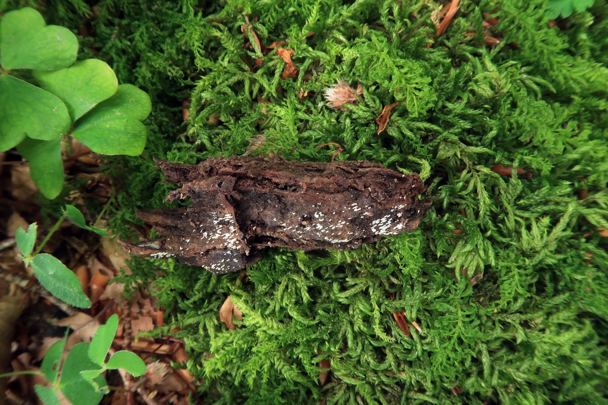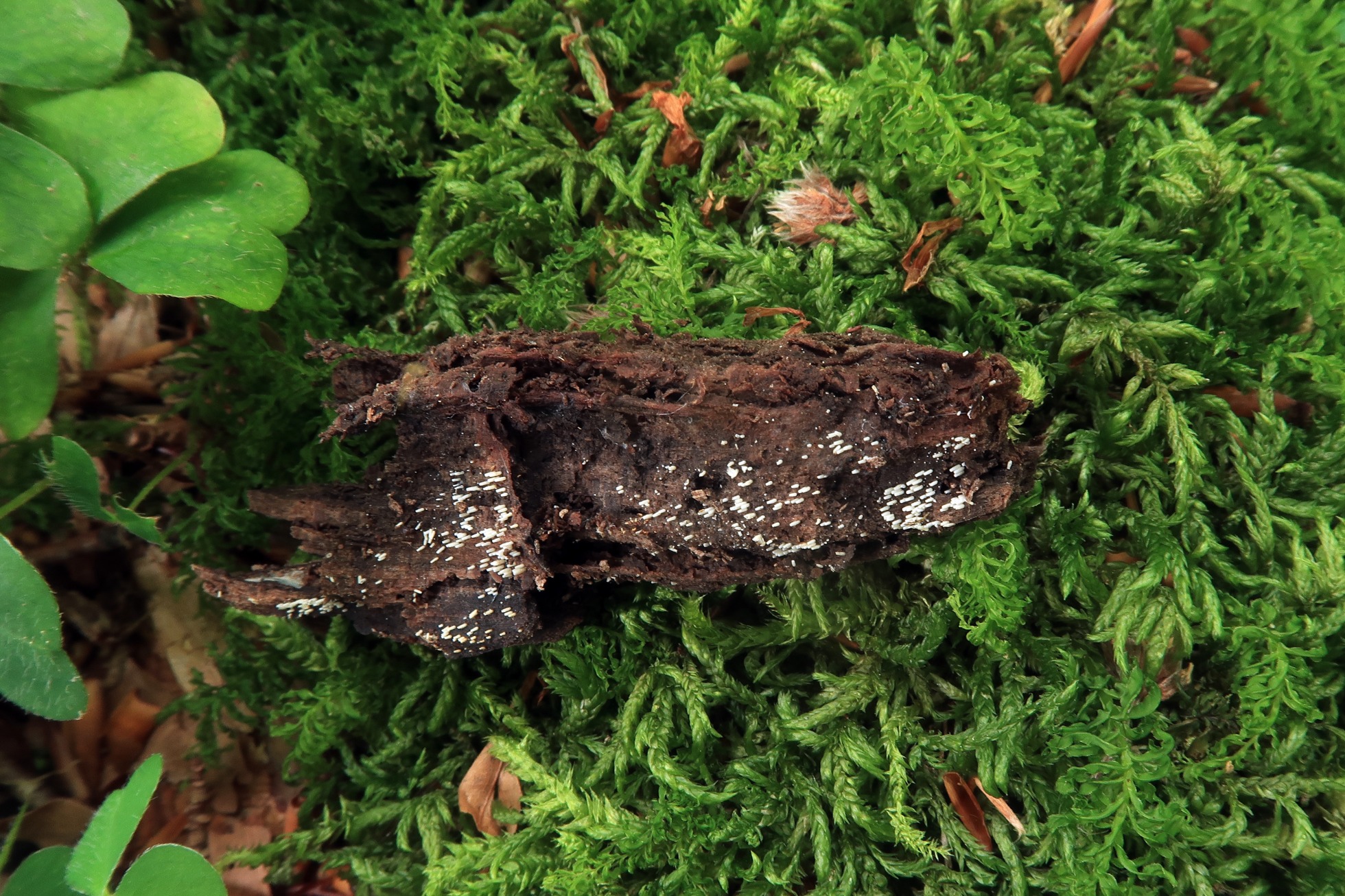 Un Hypoxylon, a pie de campo pensamos en Hypoxylon subticinense, pero aunque los ejemplares estaban inmaduros y no pudimos observar ascos , ni tampoco conidios, a tenor de la anchura de las hifas que producirían clamidosporas y las medidas de estas clamidosporas, todo parece apuntar al Hypoxylon ticinense: