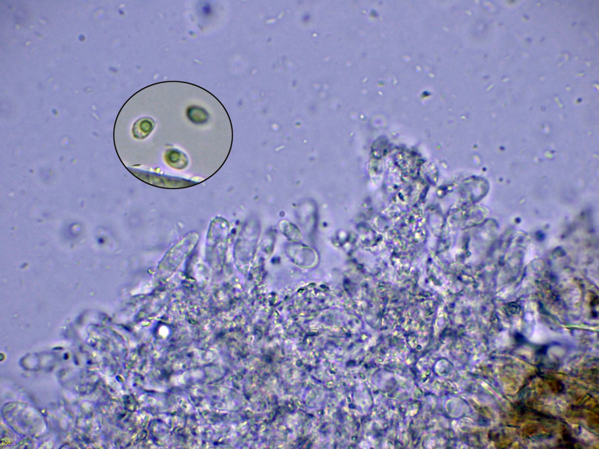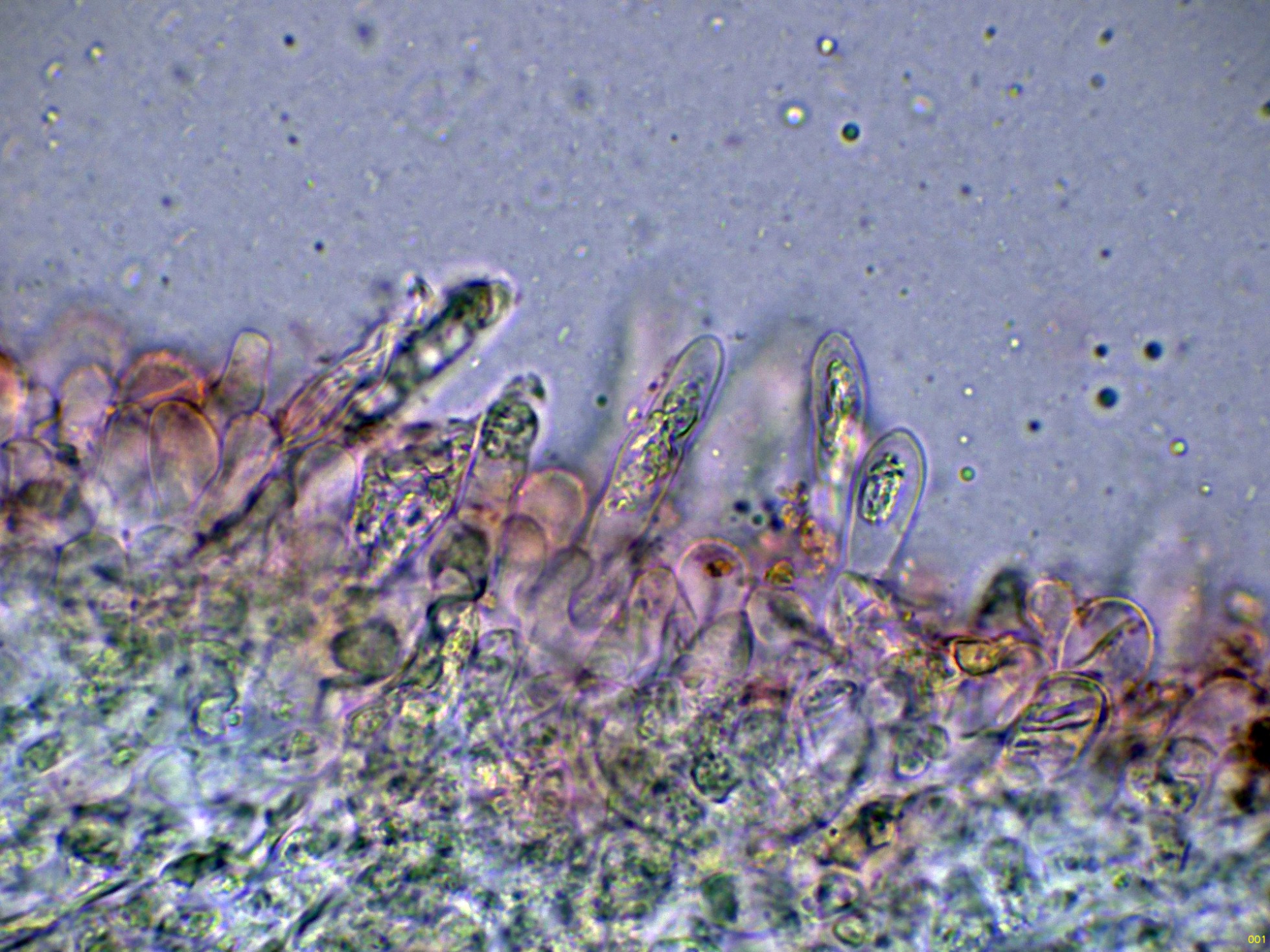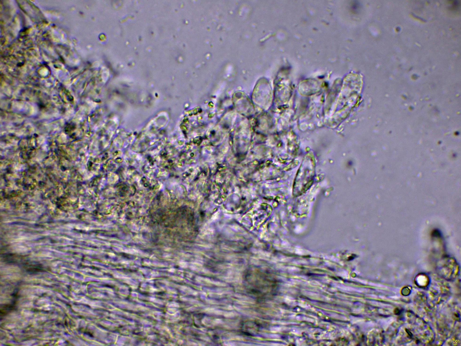 En la base de estos cistidios podemos observar los basidios: