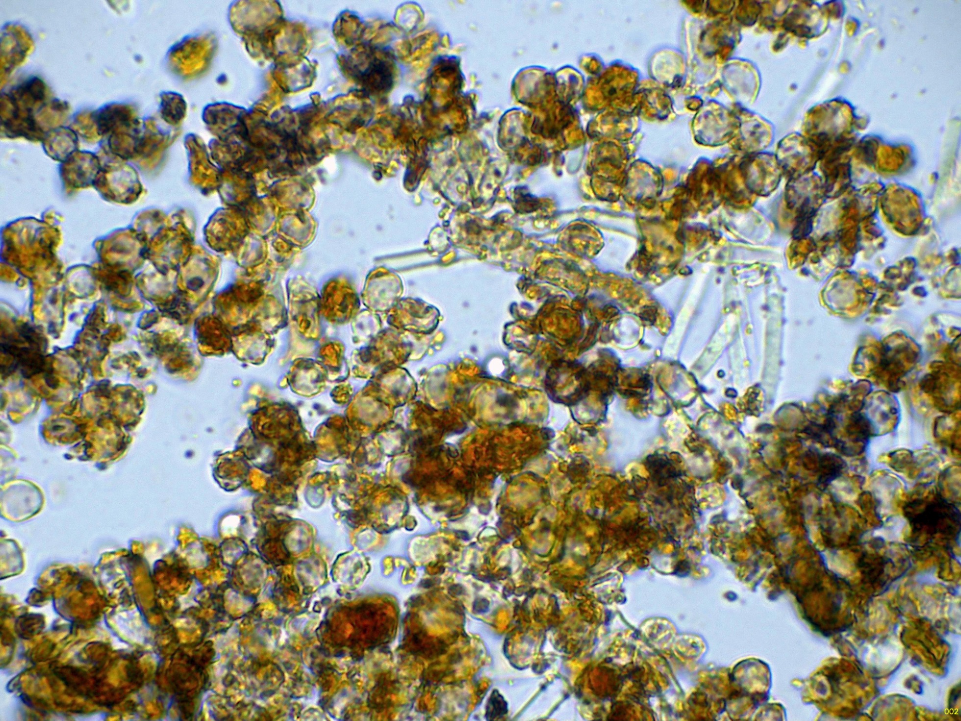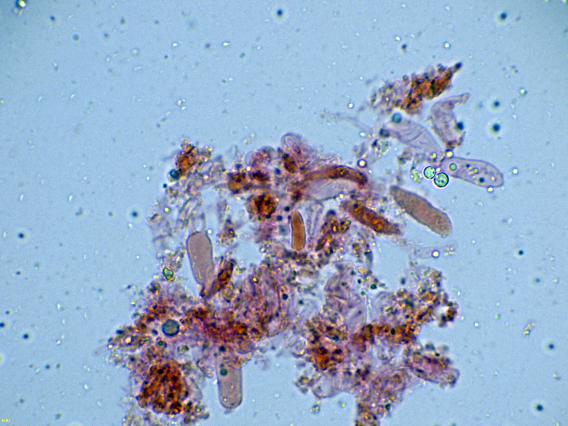 Y por último los basidios y unas pocas esporas en agua: