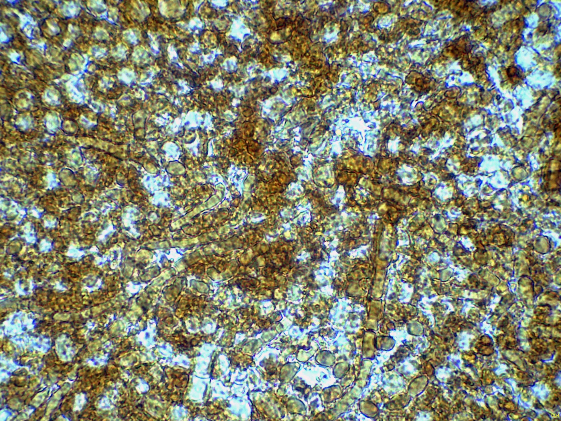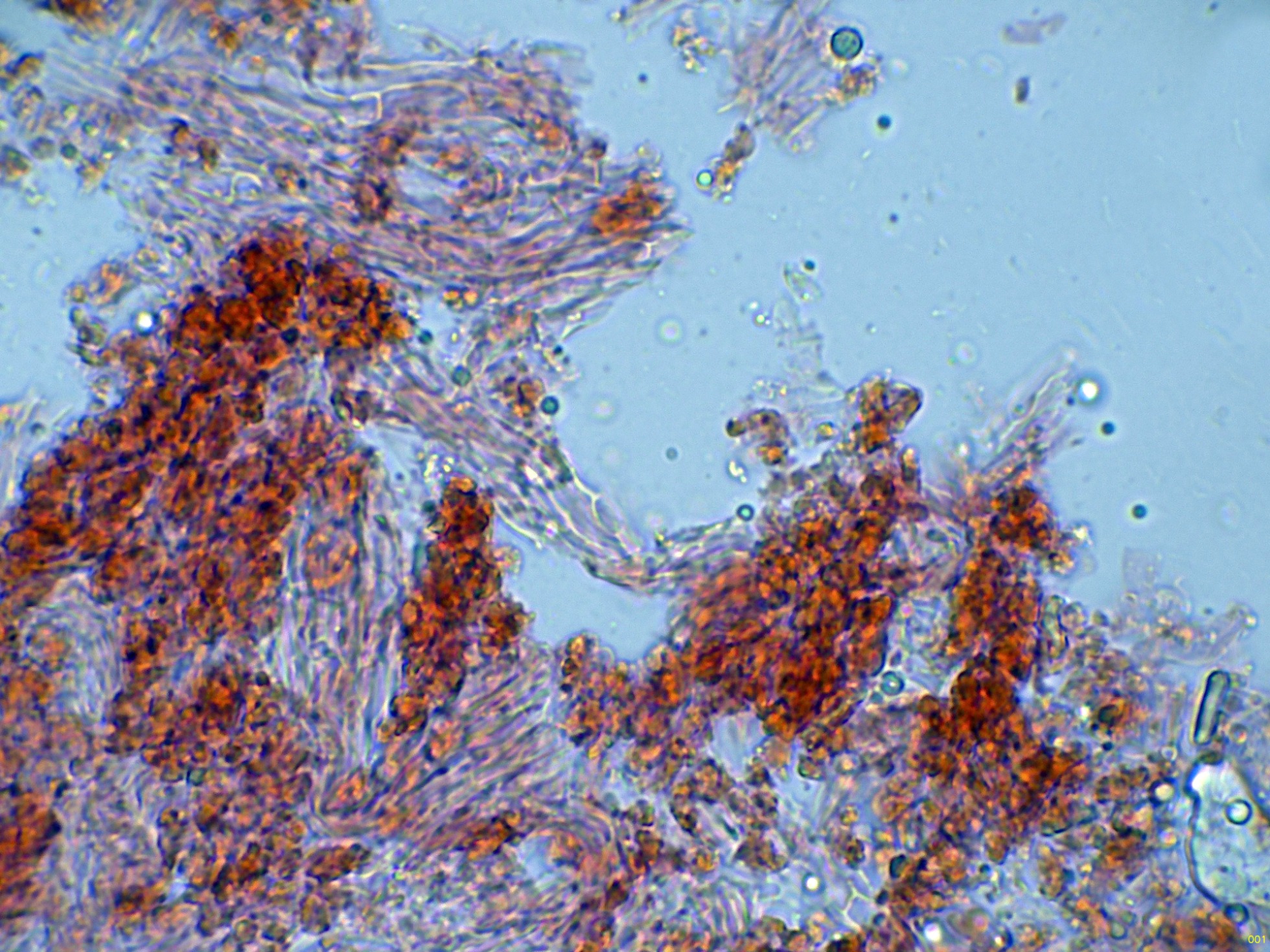 Y por último las esporas en Reactivo de Melzer: