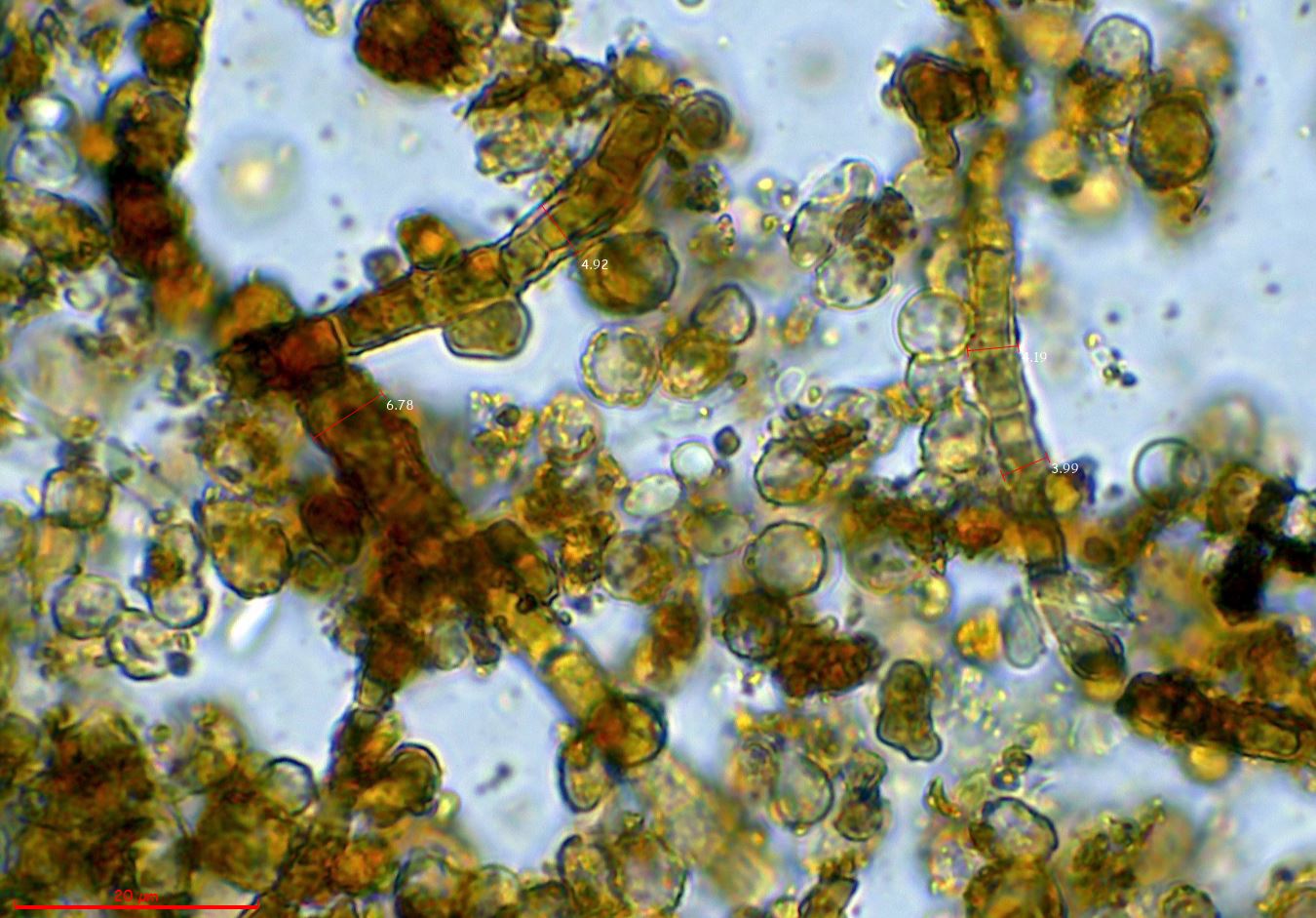 Una imágen con las medidas en anchura de estas hifas: