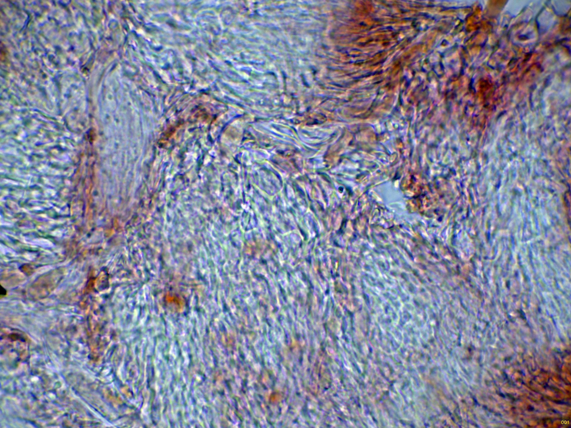Hifas del excípulo medular intricadas y por debajo de estas unas hifas ya con tendencia a globoso angularis.