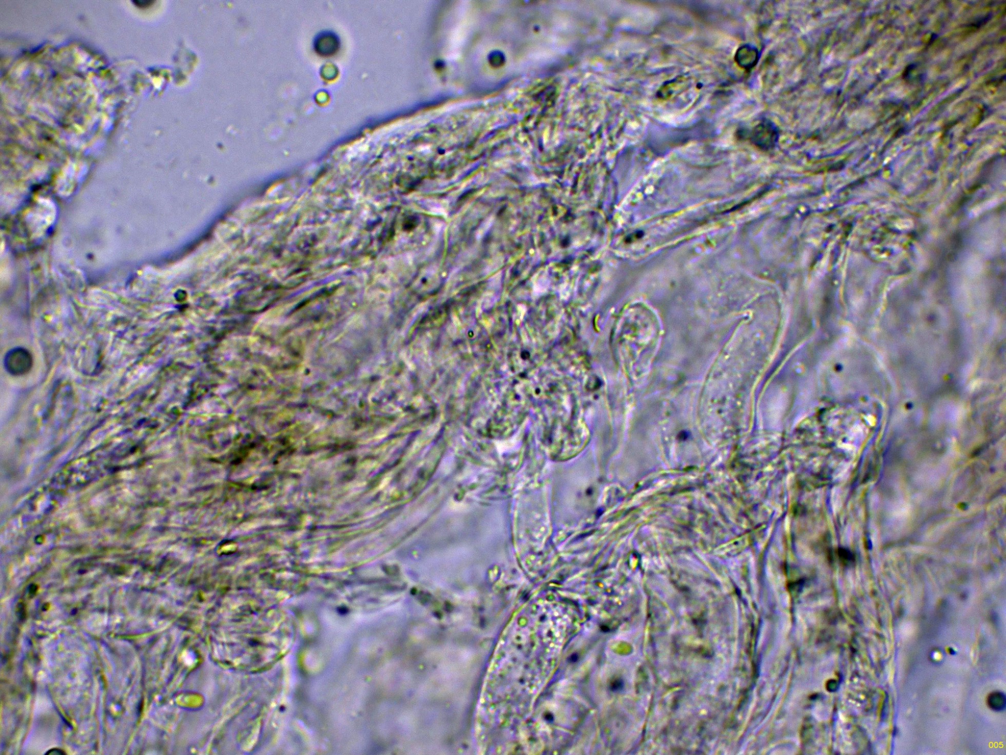 Las hifas de la subpellis en agua, muy parecidas a las de la suprapellis: