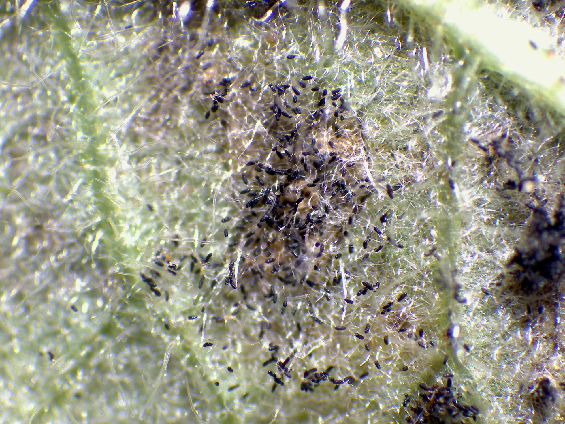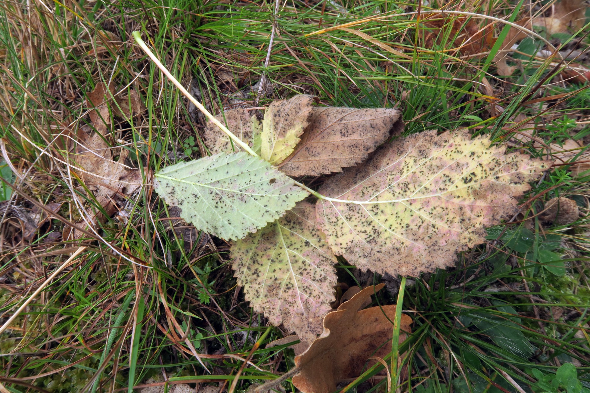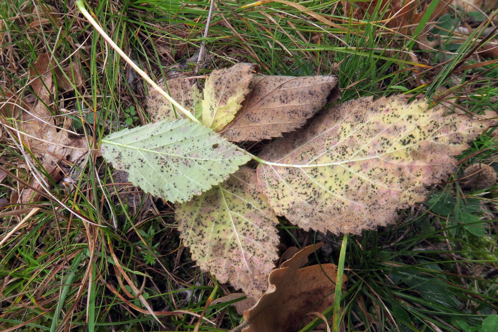 Un Puccinial brotando sobre unas hojas vivas de Rosacea, fotografiado y recolectado el pasado 5 de septiembre.