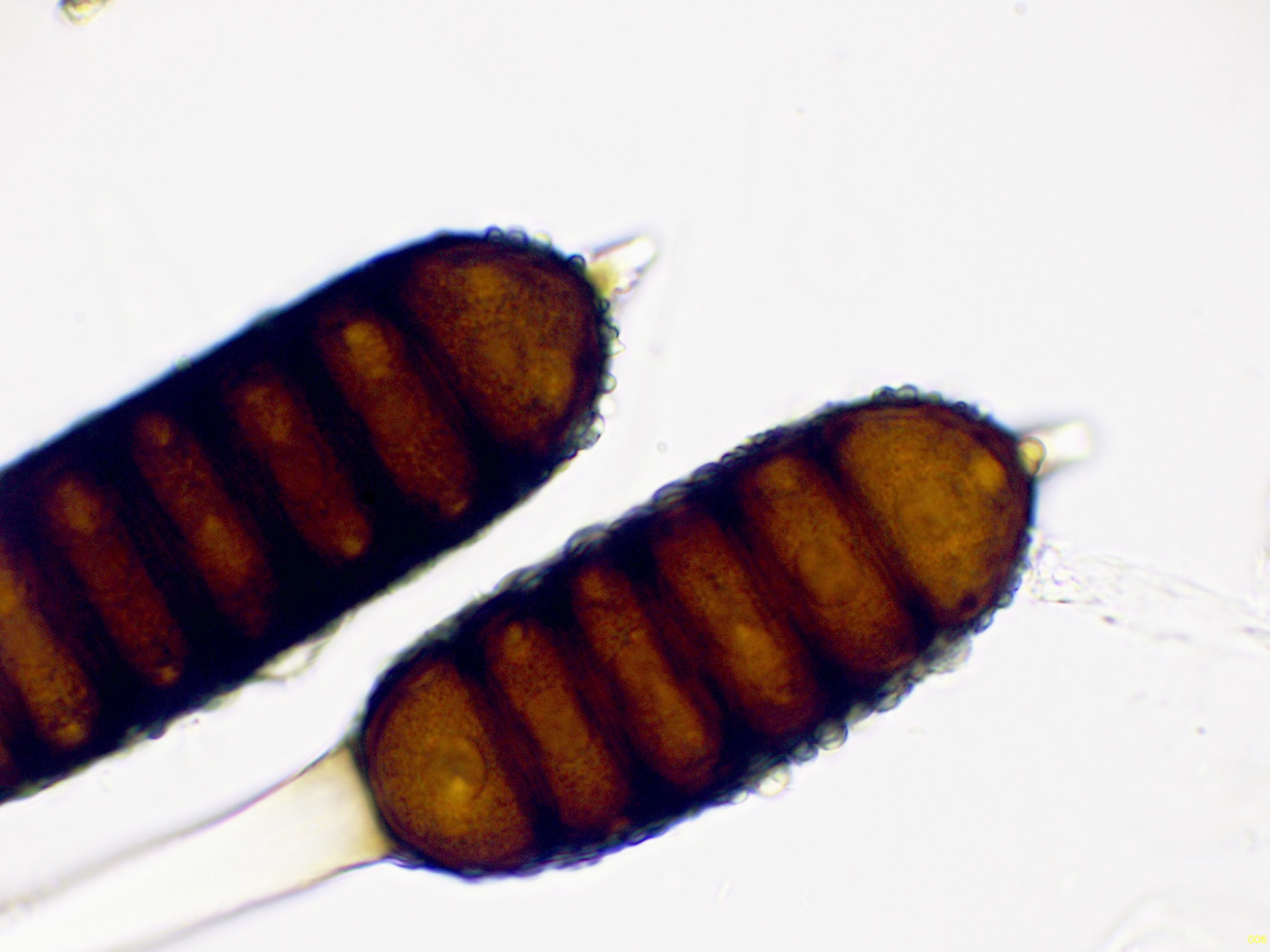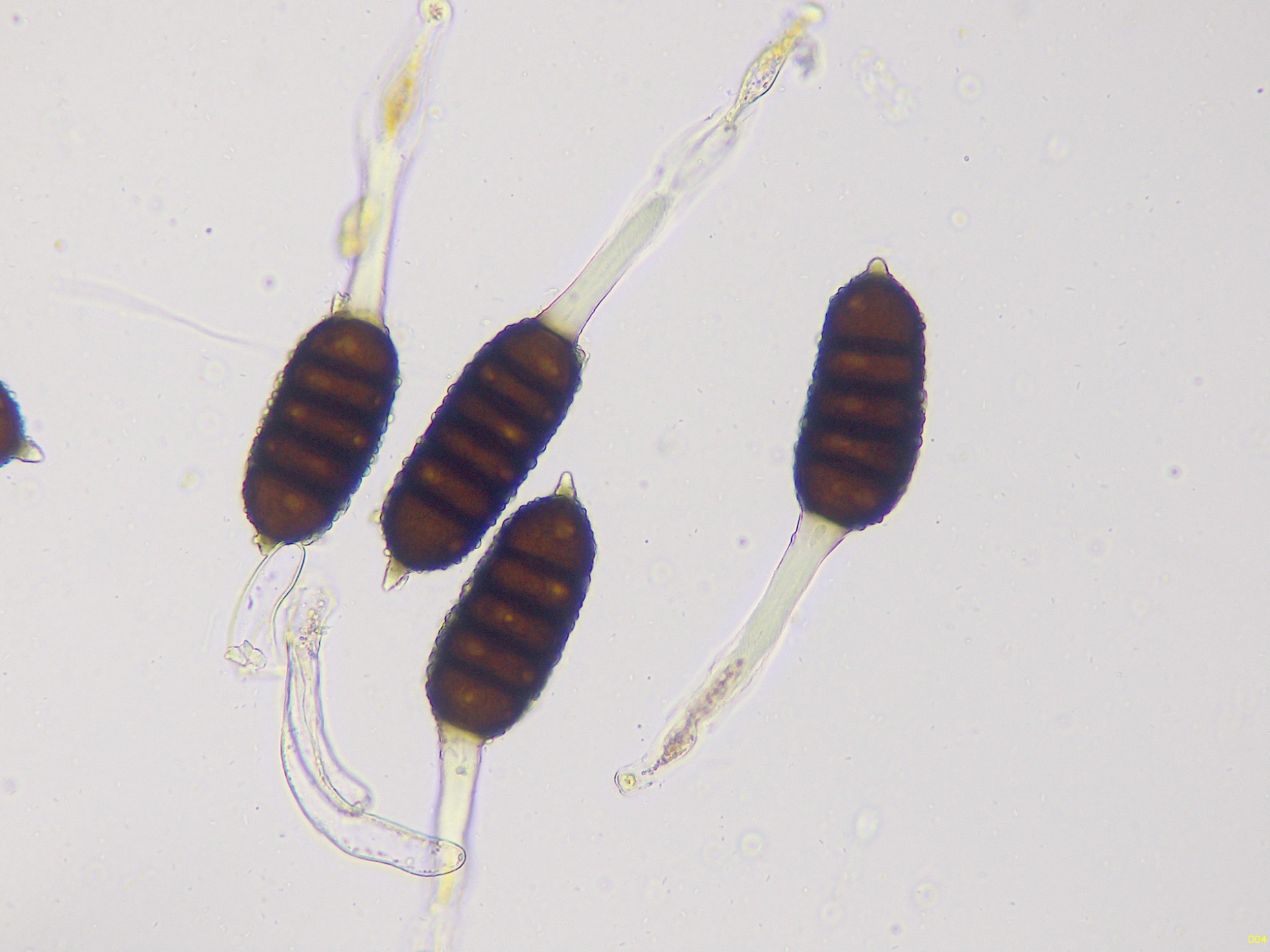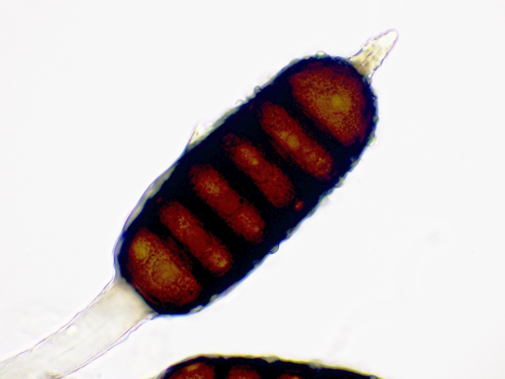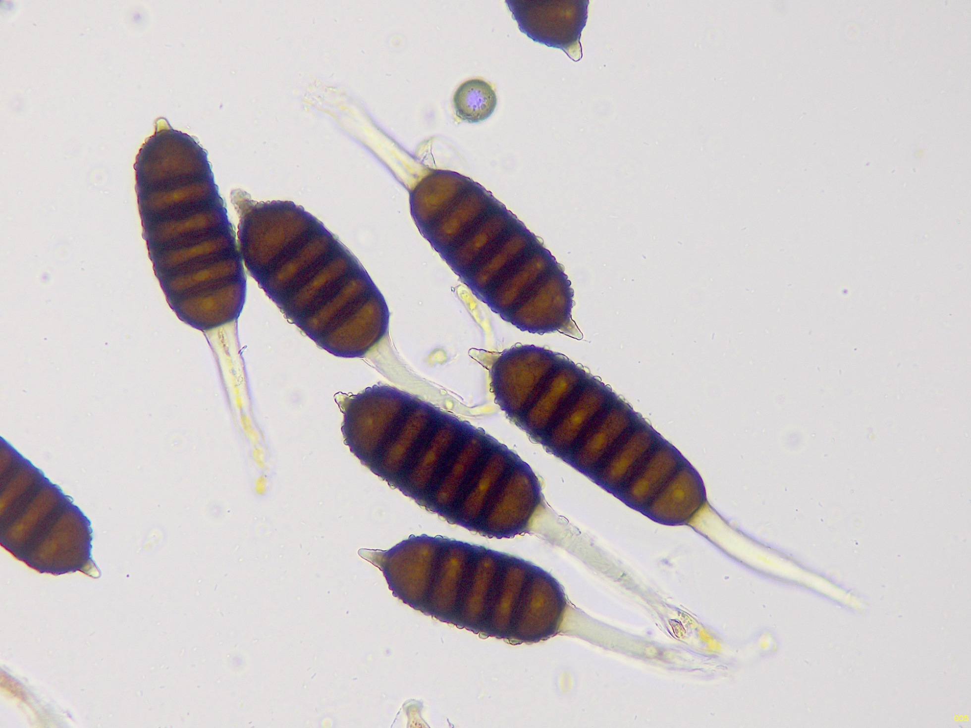 Teliosporas a 400 aumentos, con 4 a 7 celdas:
