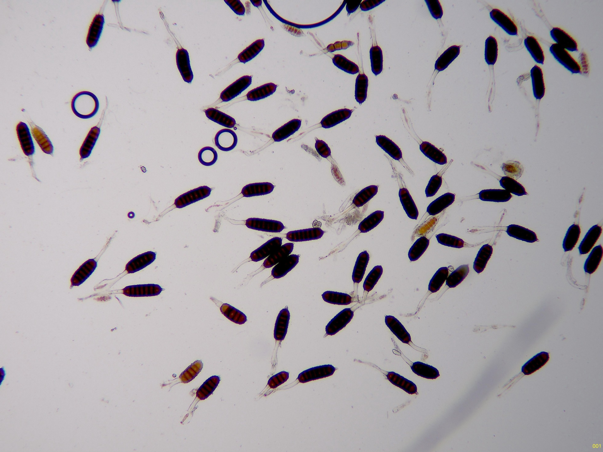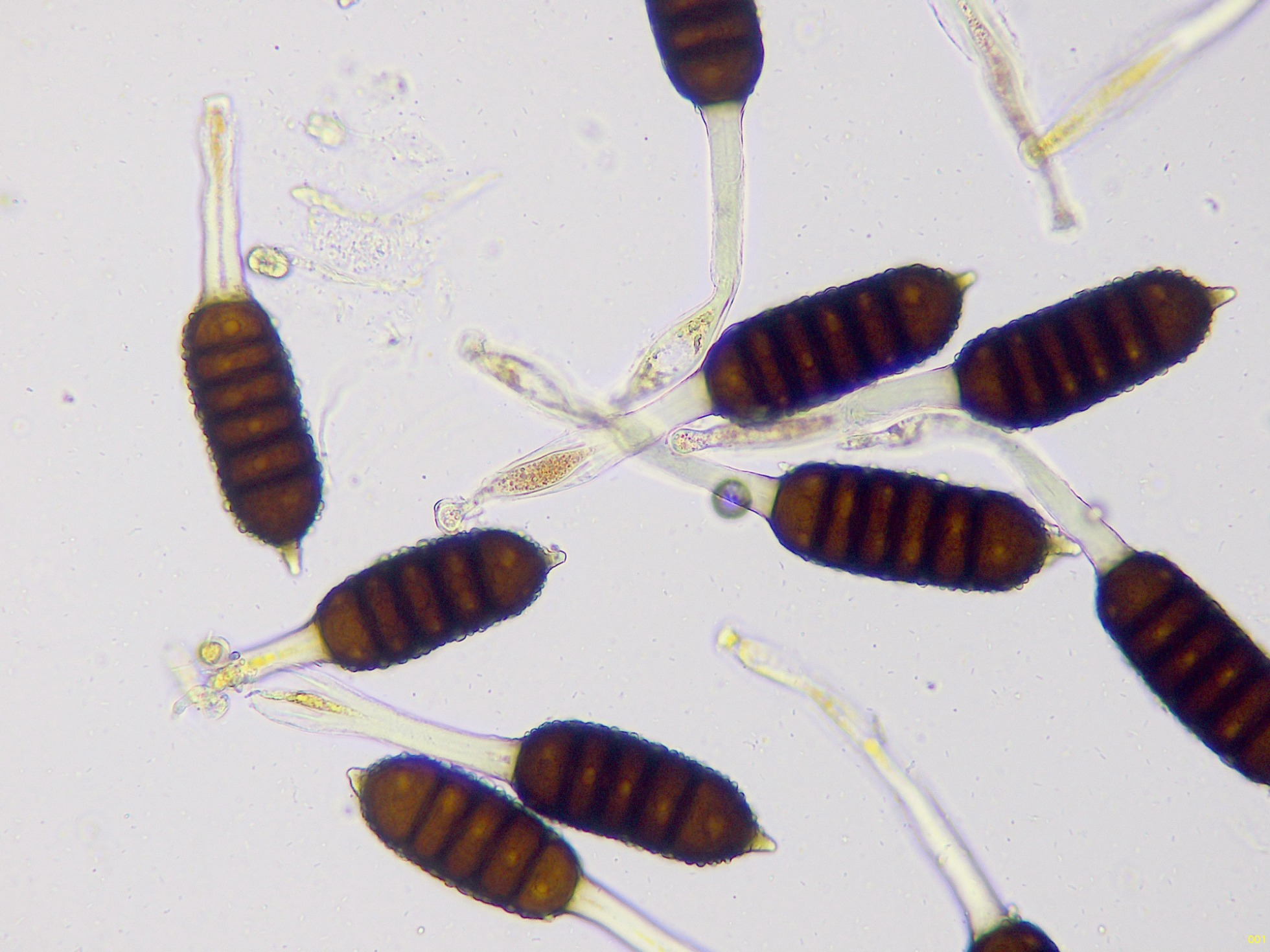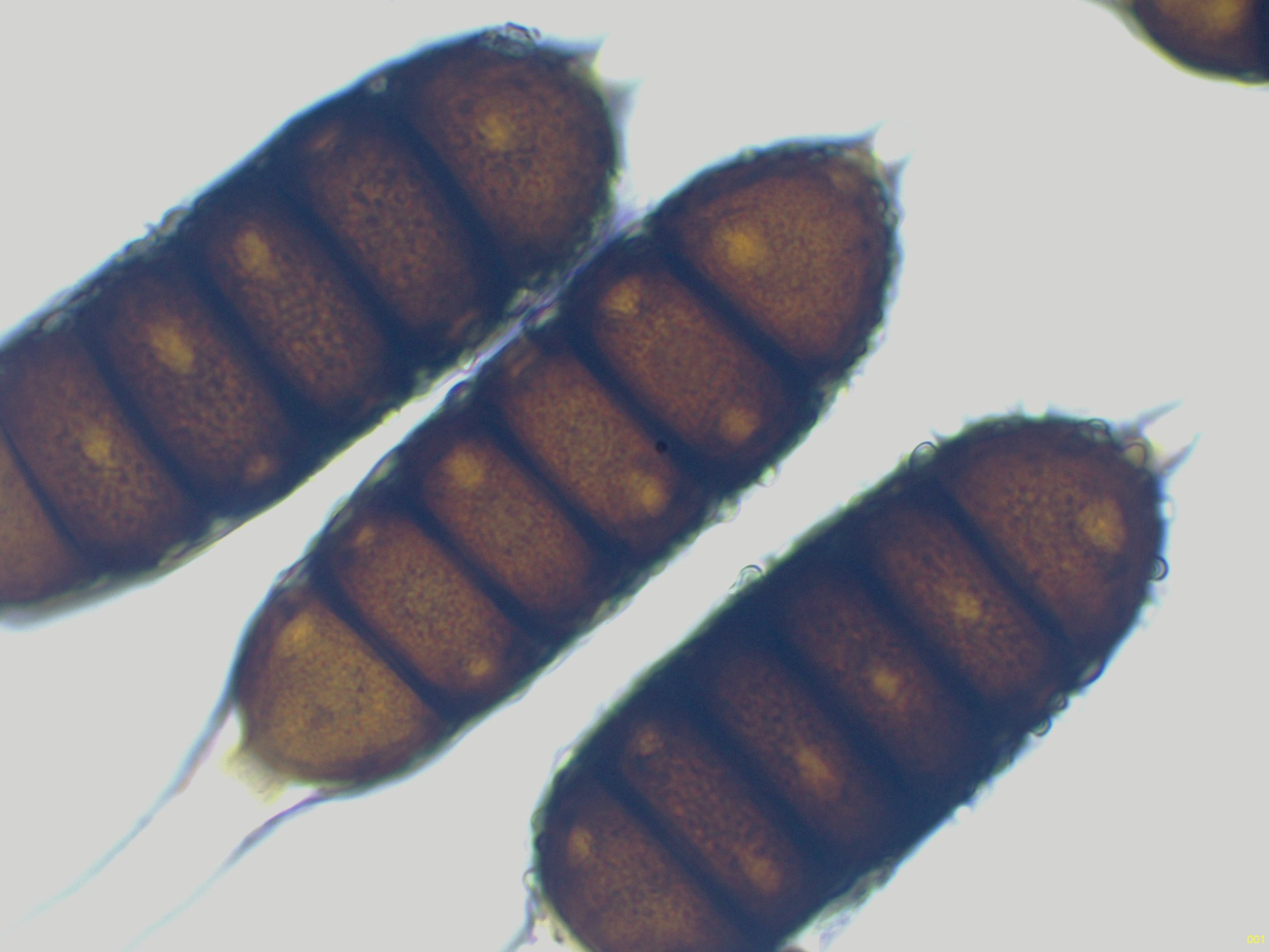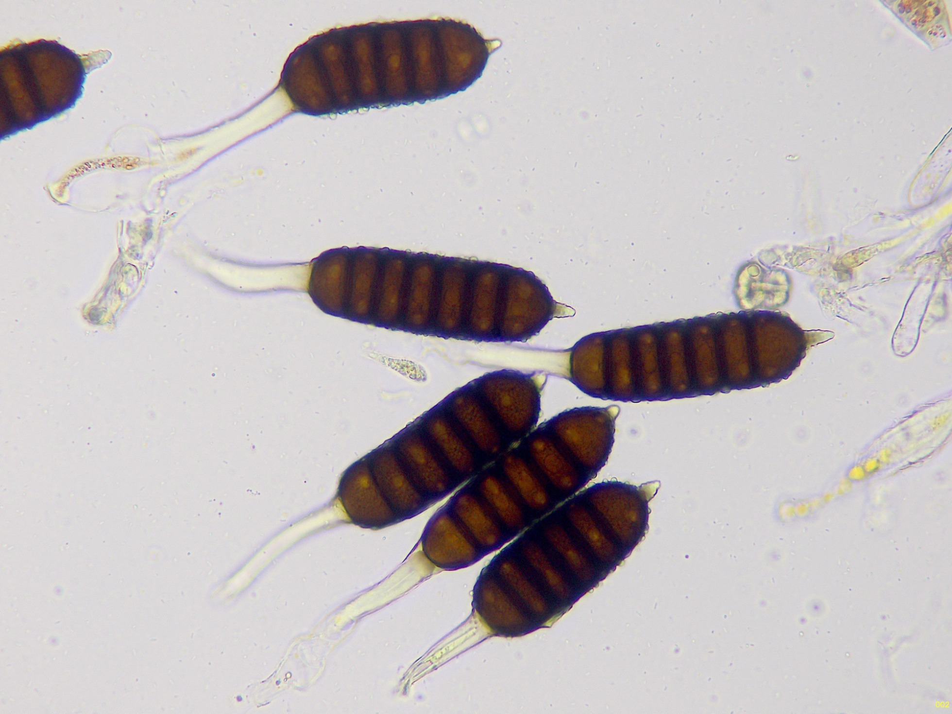 Teliosporas a 400 aumentos, con 4 a 7 celdas: