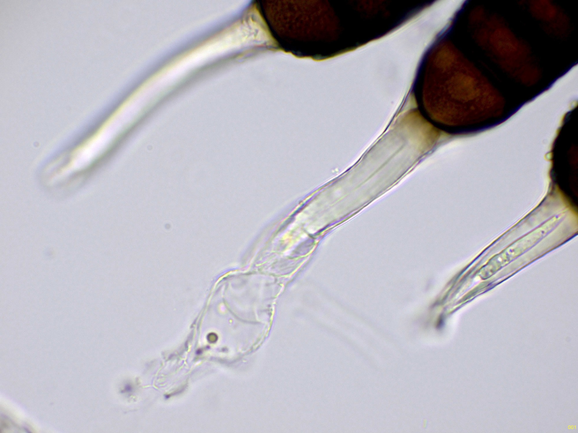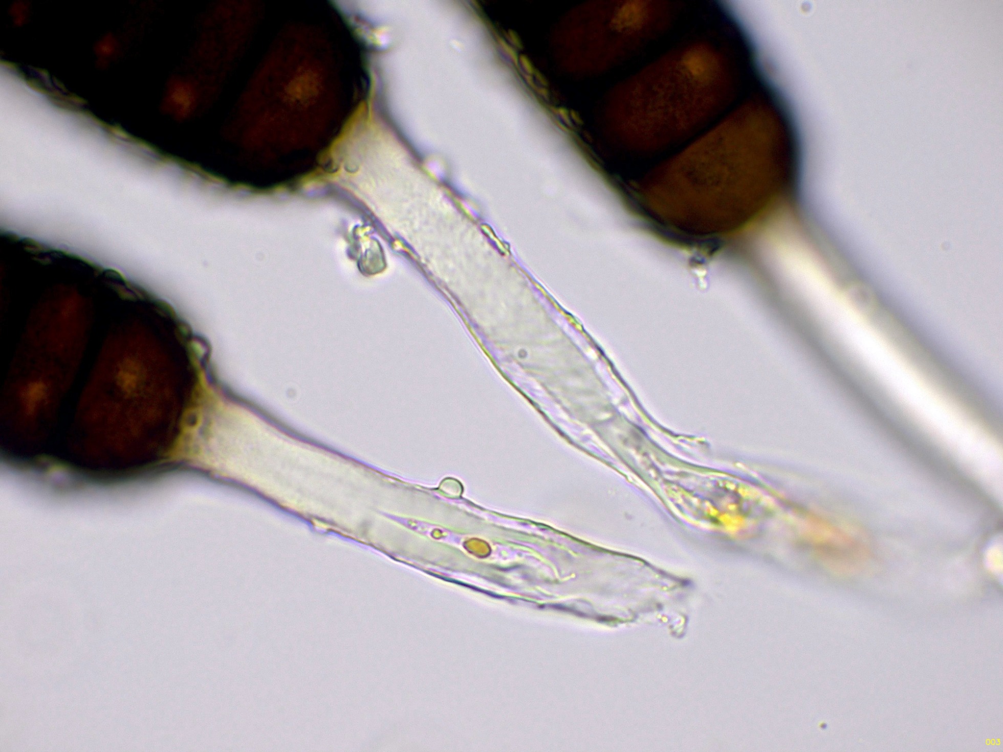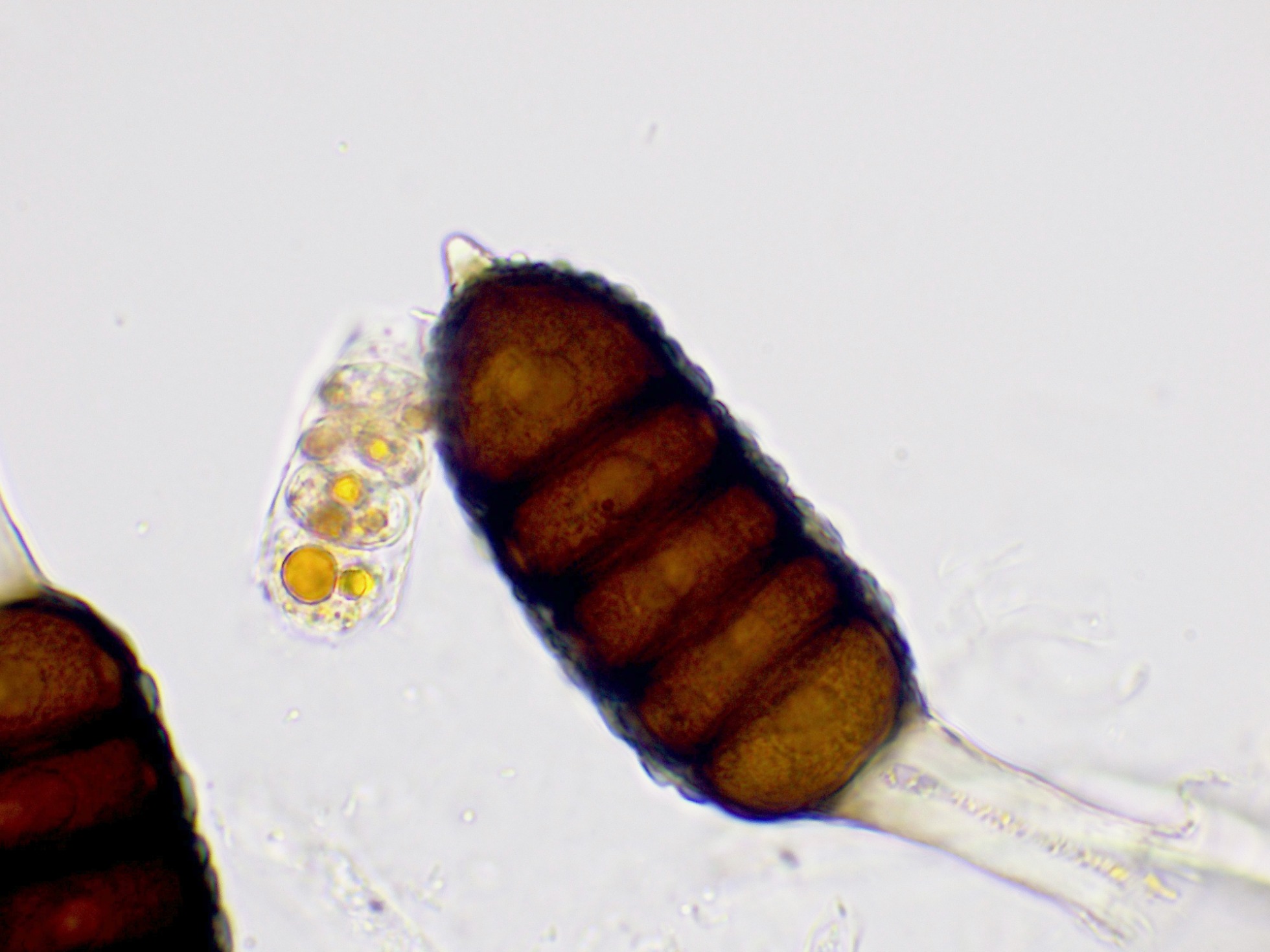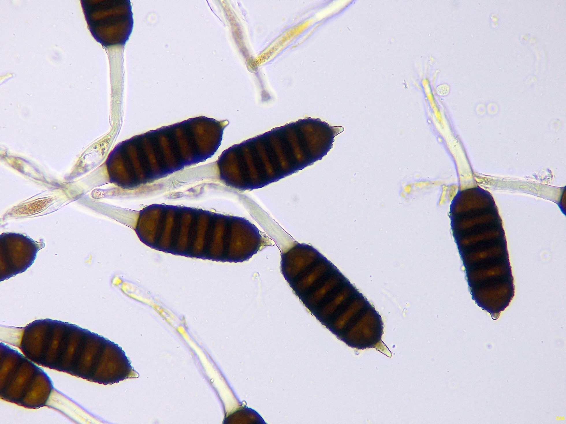 Teliosporas a 400 aumentos, con 4 a 7 celdas: