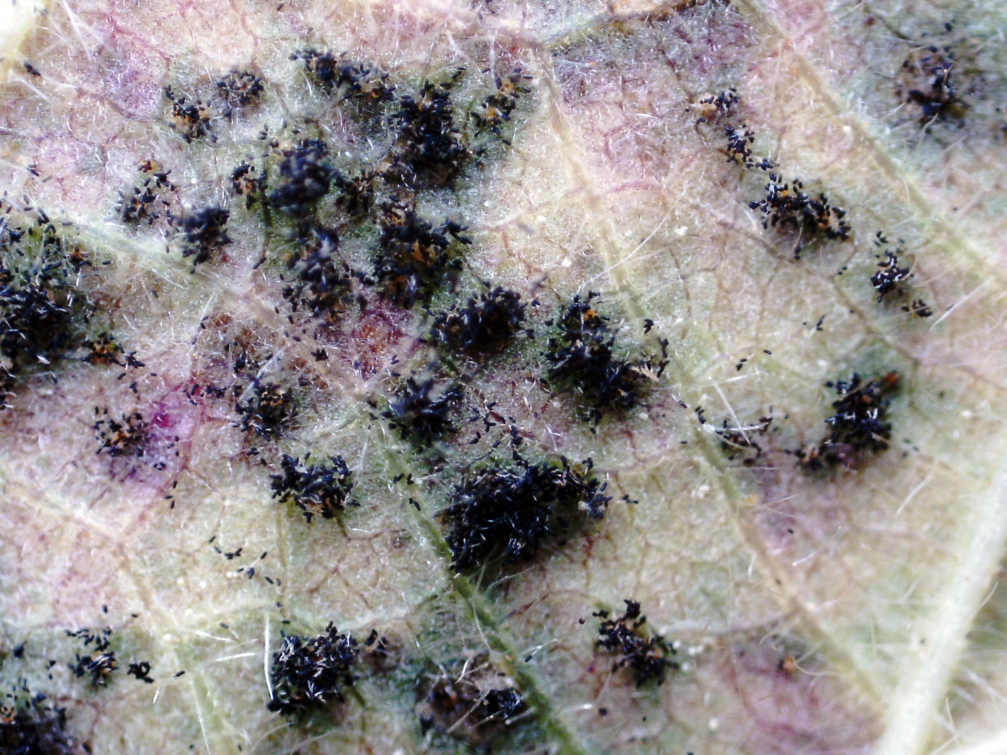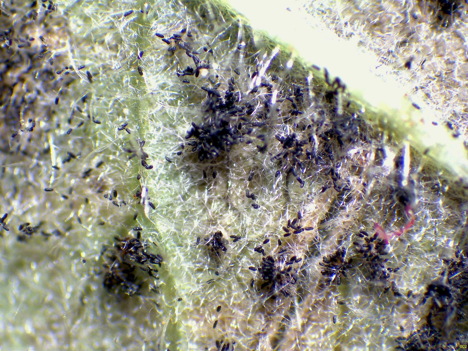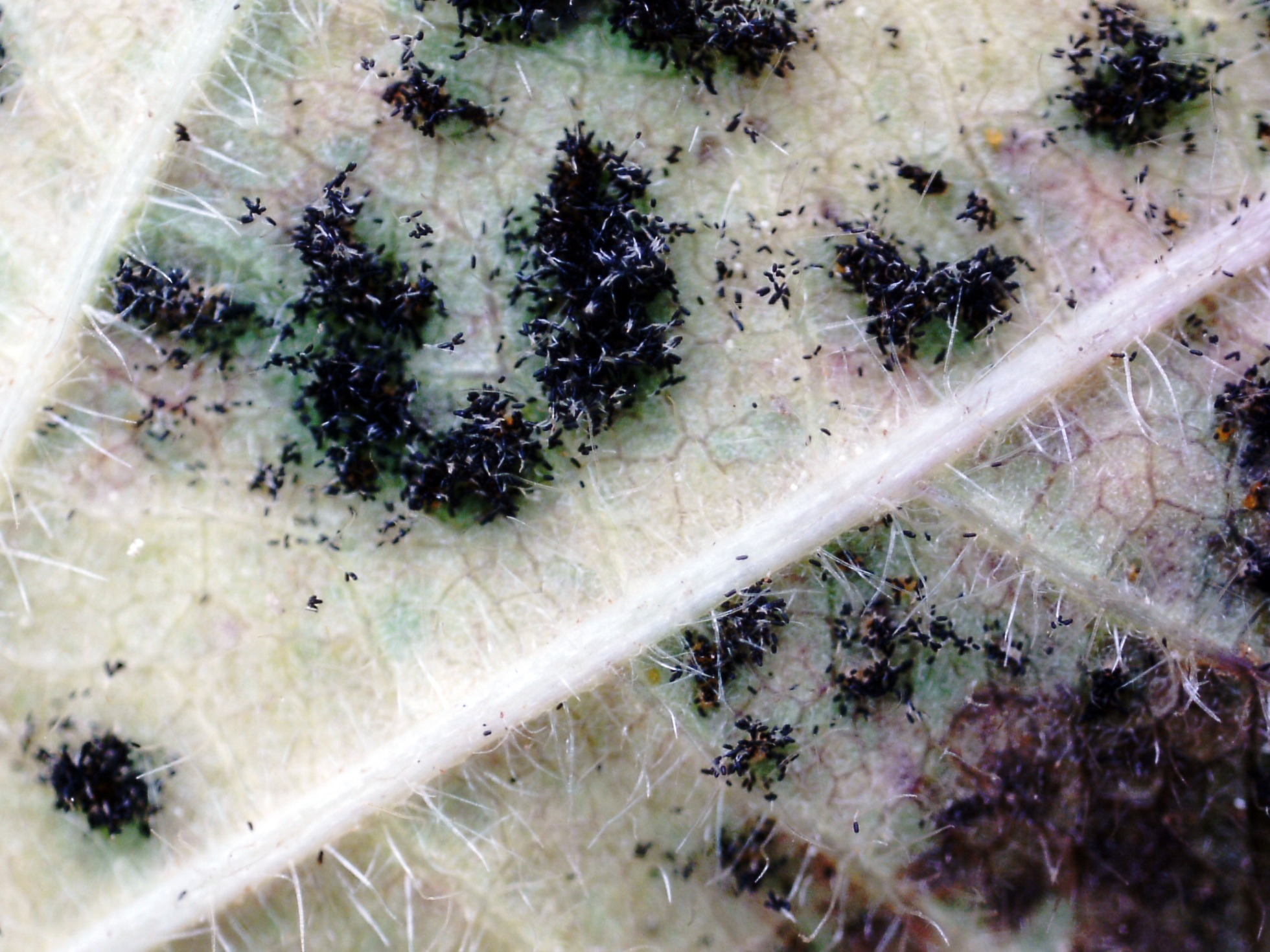 En el envés de las hojas a simple vista ya se pueden apreciar los telios: