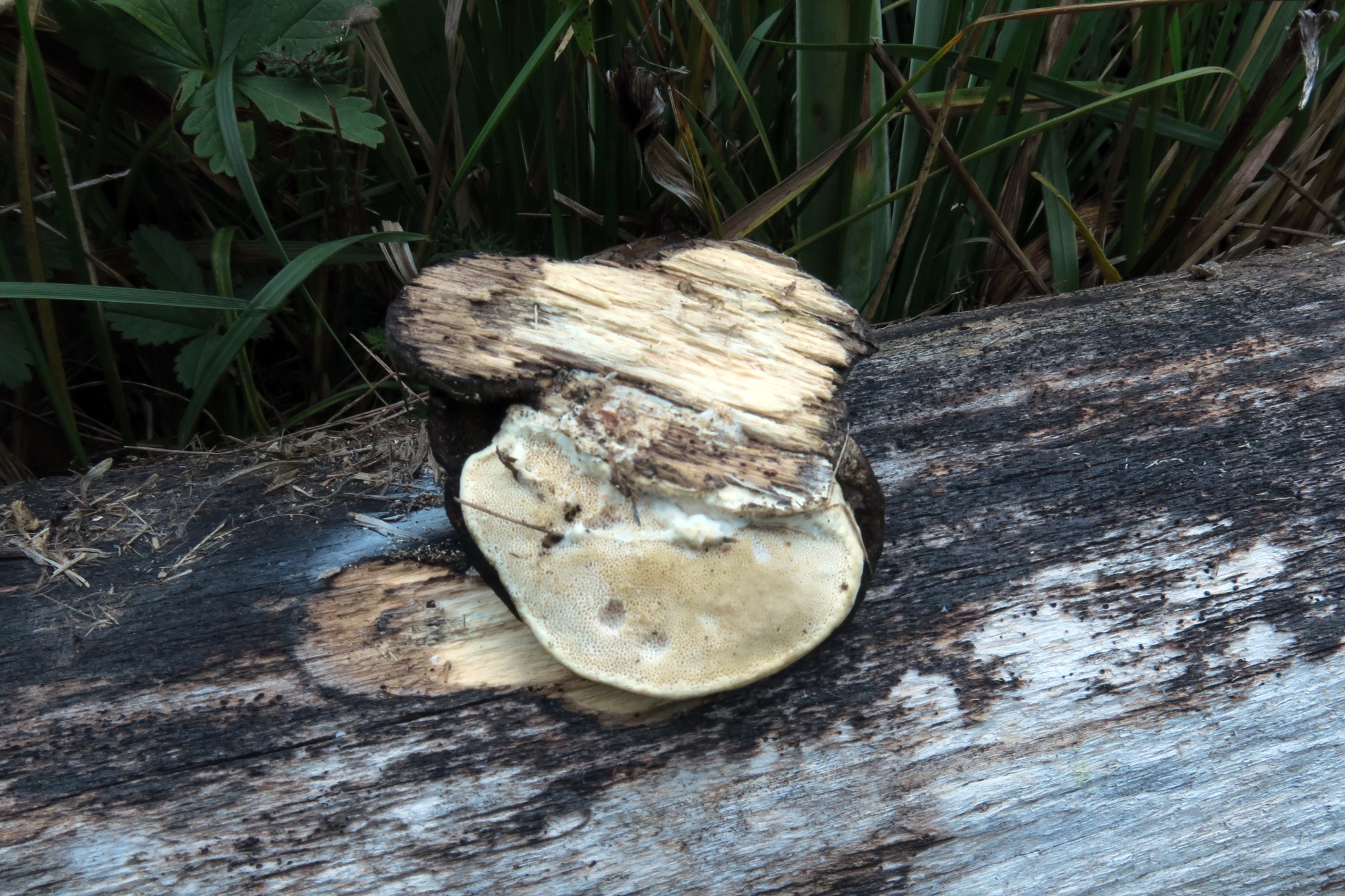 Un Polyporal muy común sobre madera de pino, con un aspecto que ni por un instante pensé que se podría tratar de ella, la Fomitopsis pinicola: