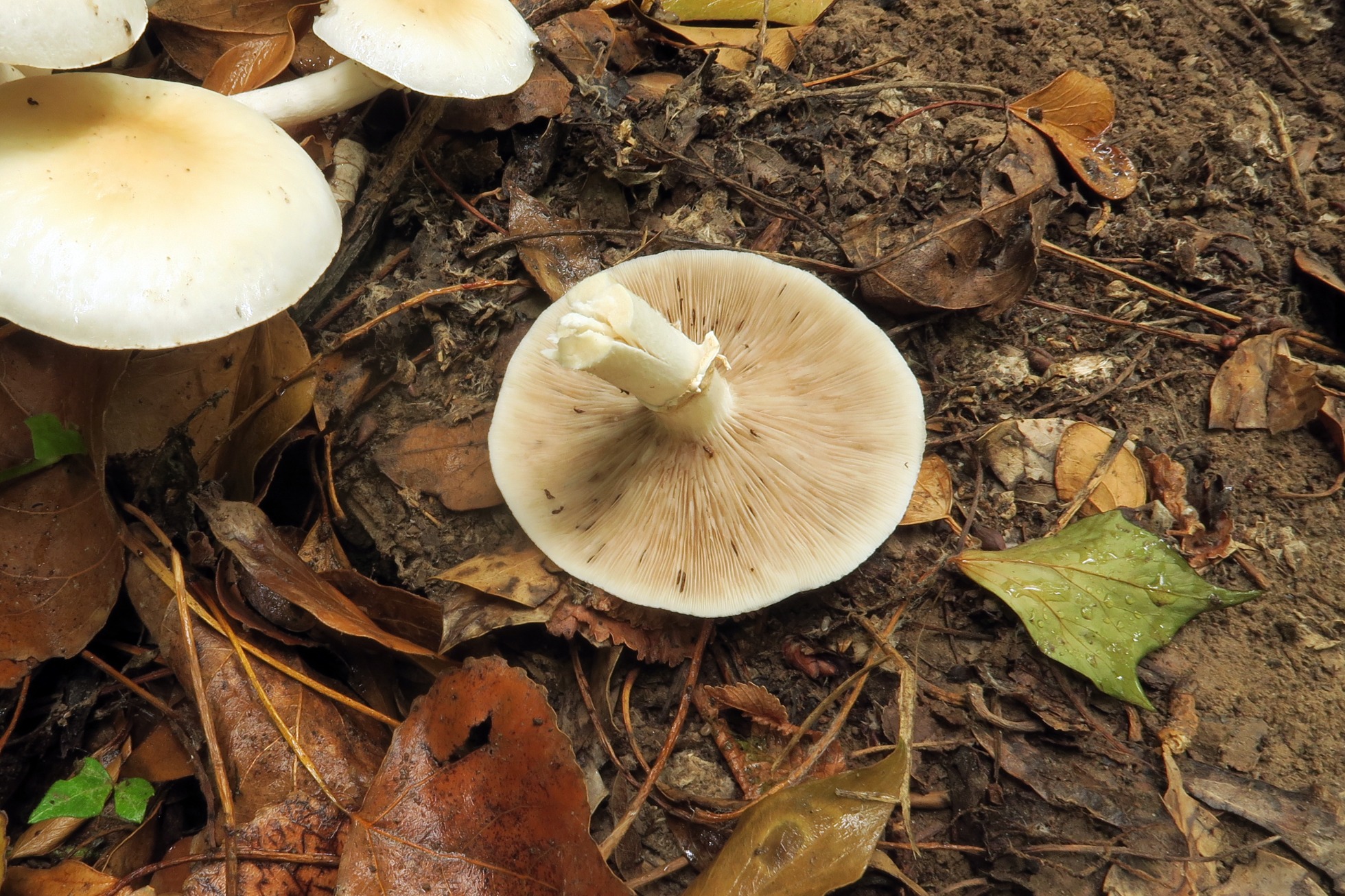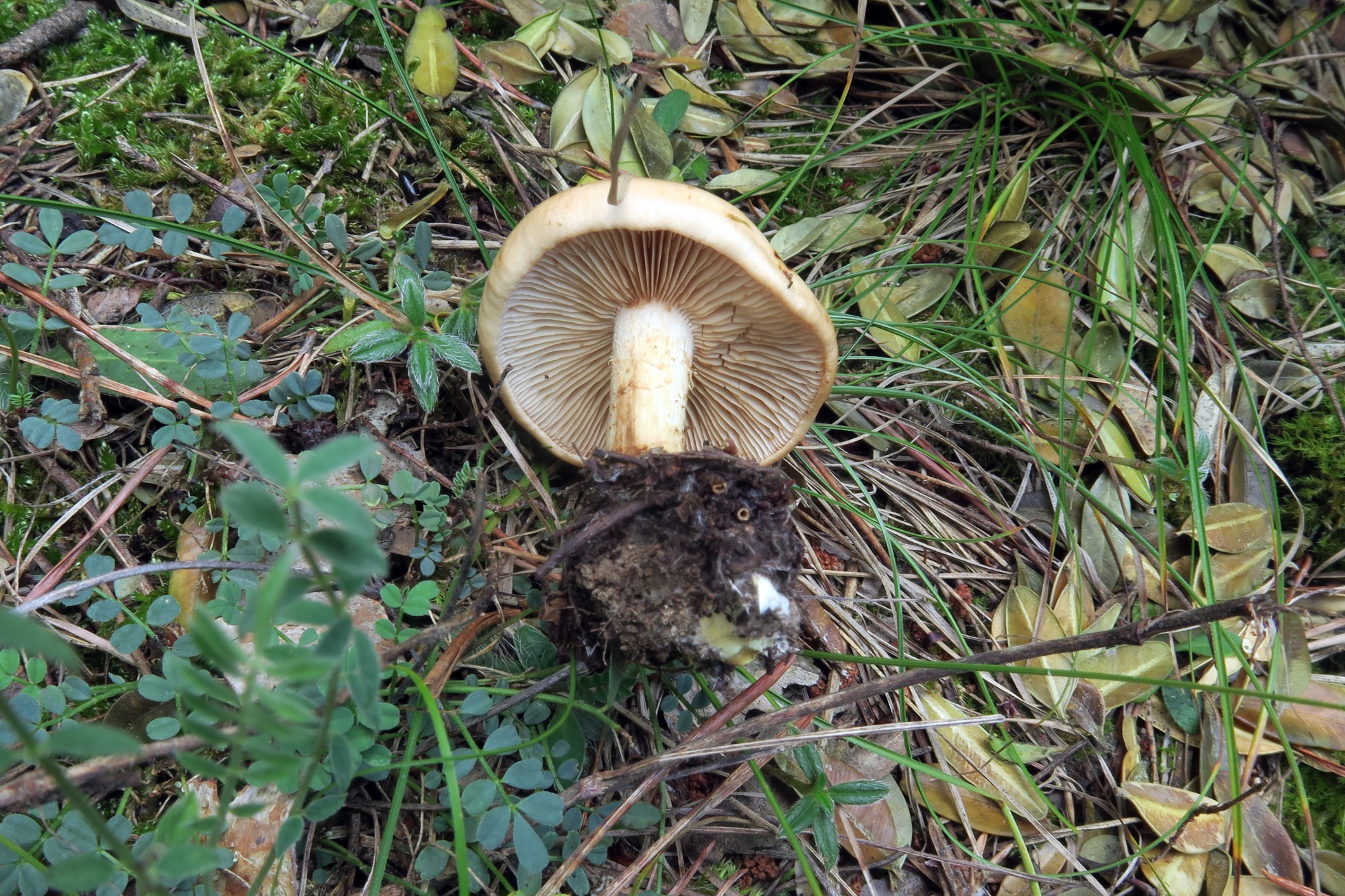 Un Hebeloma con el pie hueco, bastante común y extendido por la zona, el Hebeloma sinapizans: