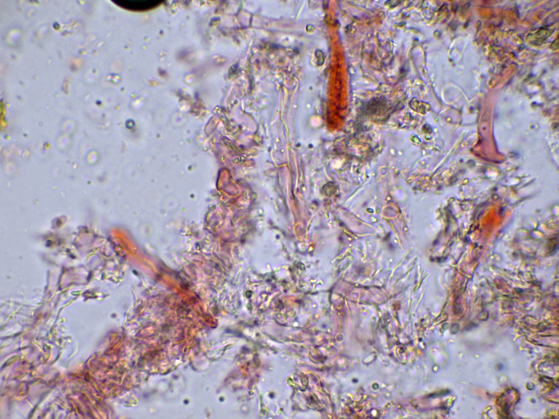 Un Corticial del que no he podido obtener esporas, a tenor de su aspecto, y en especial a sus lamprocistidios, todo apunta a la Scopuloides rimosa, a falta de datos dejo el tema abierto como Scopuloides cf. rimosa: