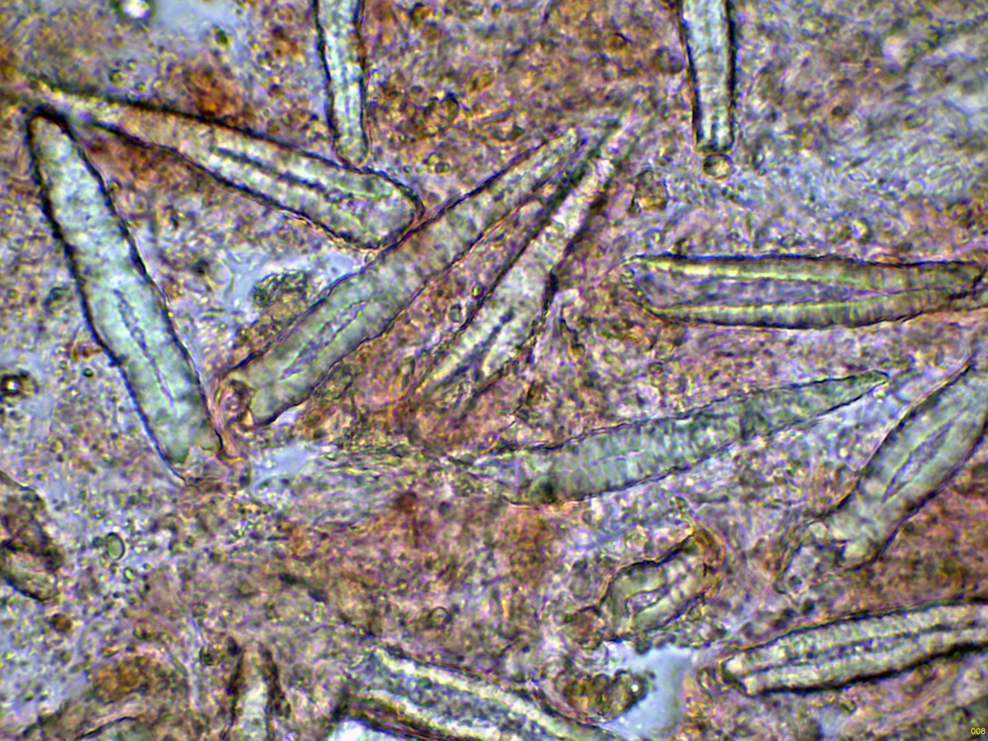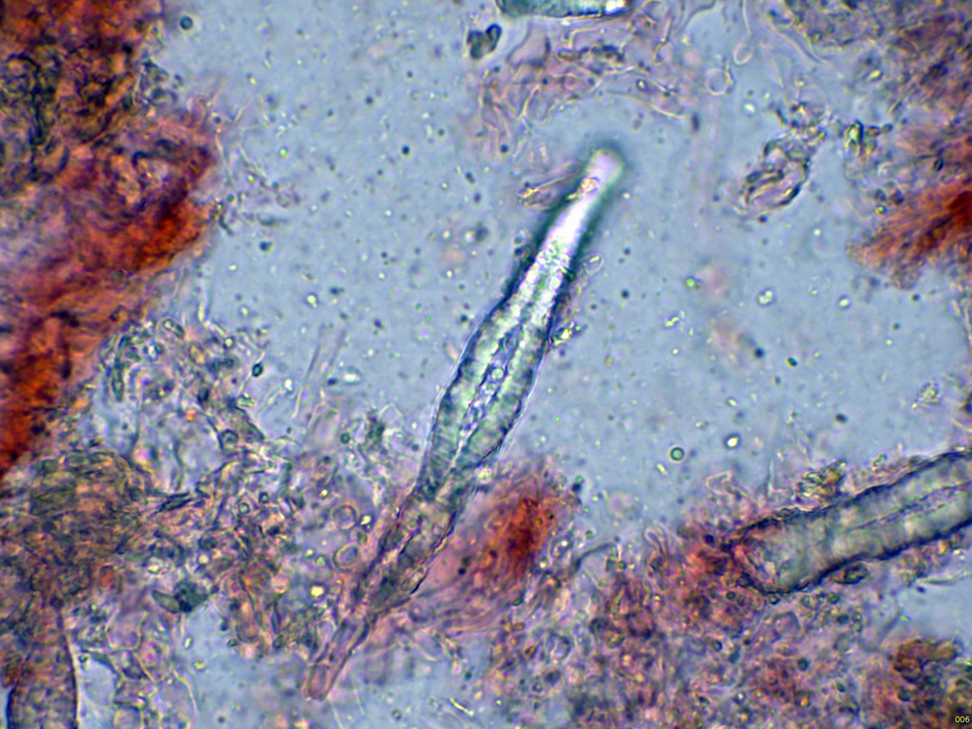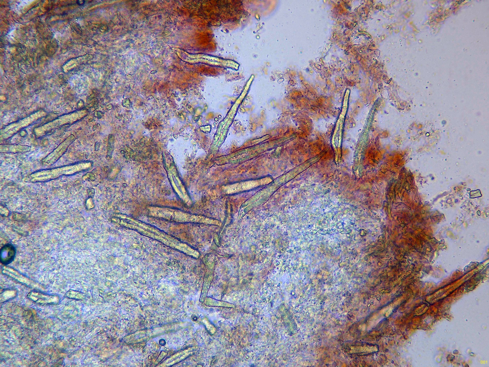 Lamprocistidios en solución de Rojo Congo a 1000 aumentos: