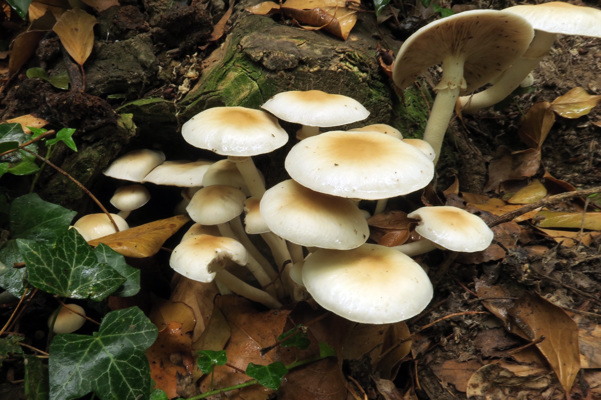 Ya sin microscopía, añado un par de imágenes tomadas en soto fluvial, de un pequeño grupo de setas de chopo, la Cyclocybe cylindracea = Cyclocybe aegerita: