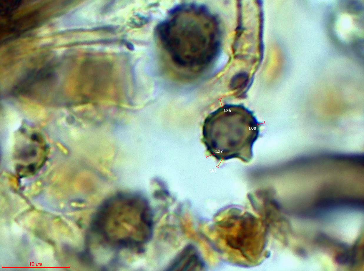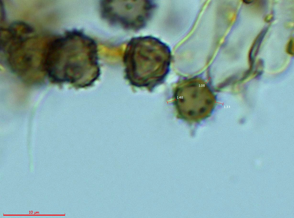 Y para terminar añado un par de imágenes de esporas ampliadas, con las medidas de las espinas: