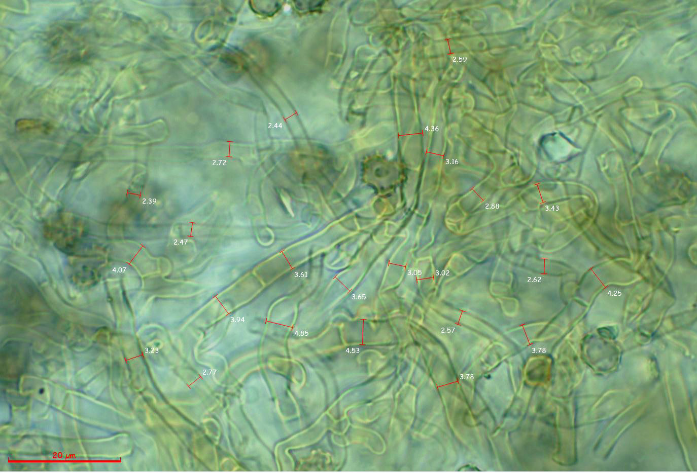 Una imágen de las hifas subiculares con sus medidas en anchura: