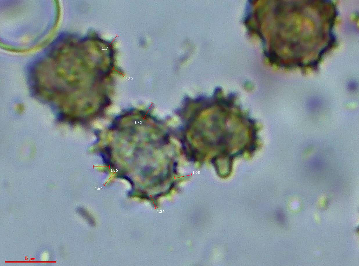 Y por último un par de imágenes con unas esporas y las medidas de sus espinas: