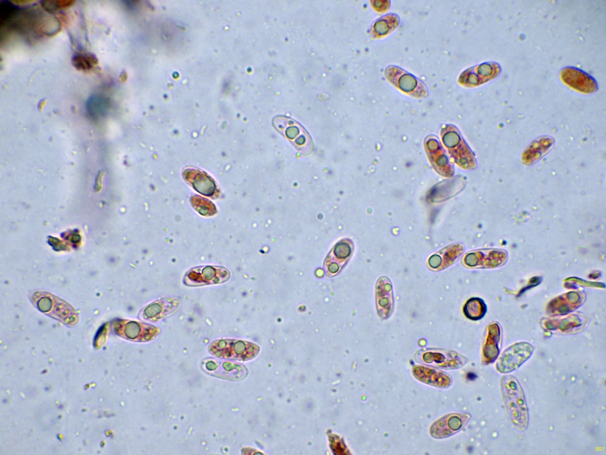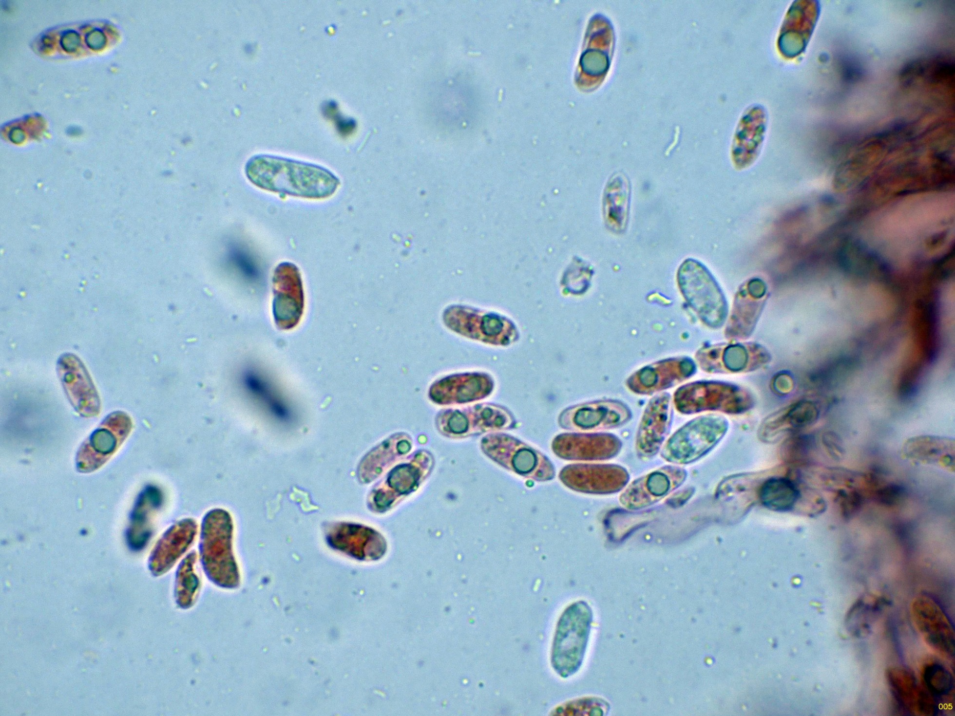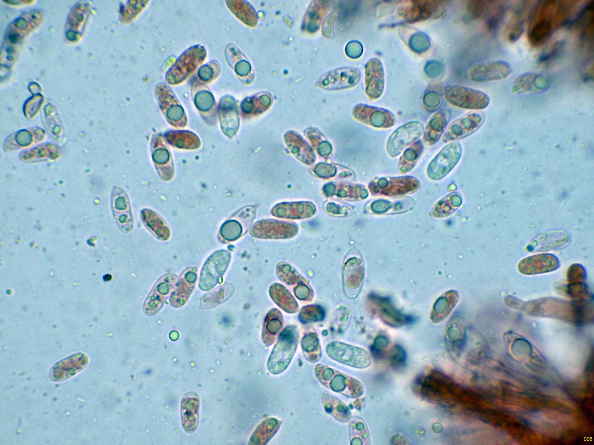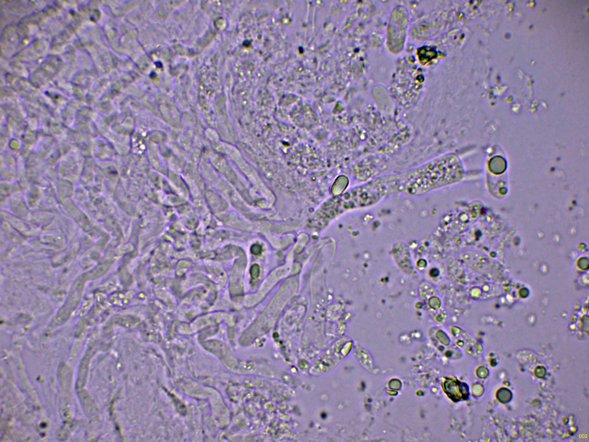 En este medio se puede observar alguna estructura que se correspondería a unos cistidios muy incrustados y hundidos en el himenio que no sobresalen por encima del nivel de los basidios: