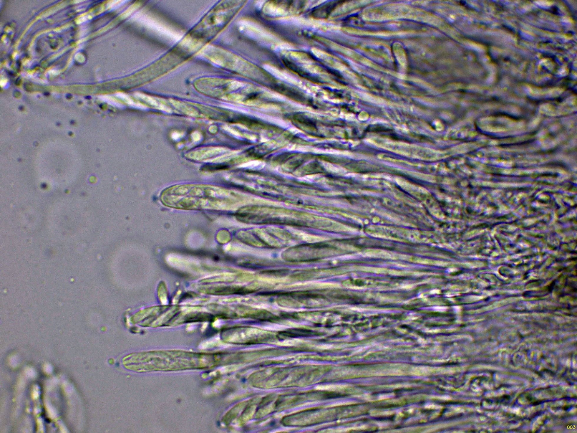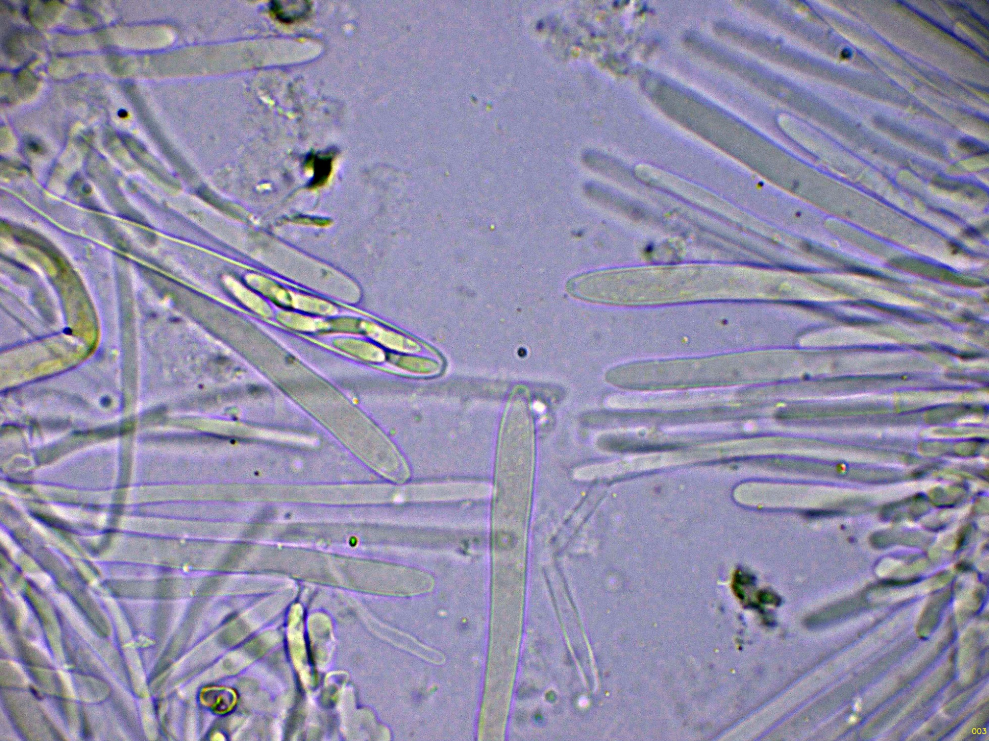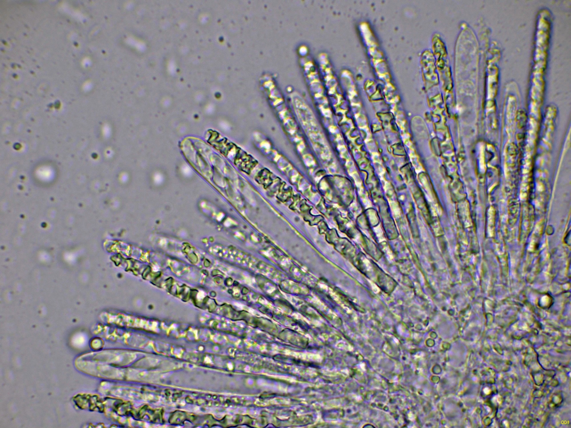 Los ascos en reactivo de Melzer, con una muy discreta reacción amiloide de su diminuto aparato apical: