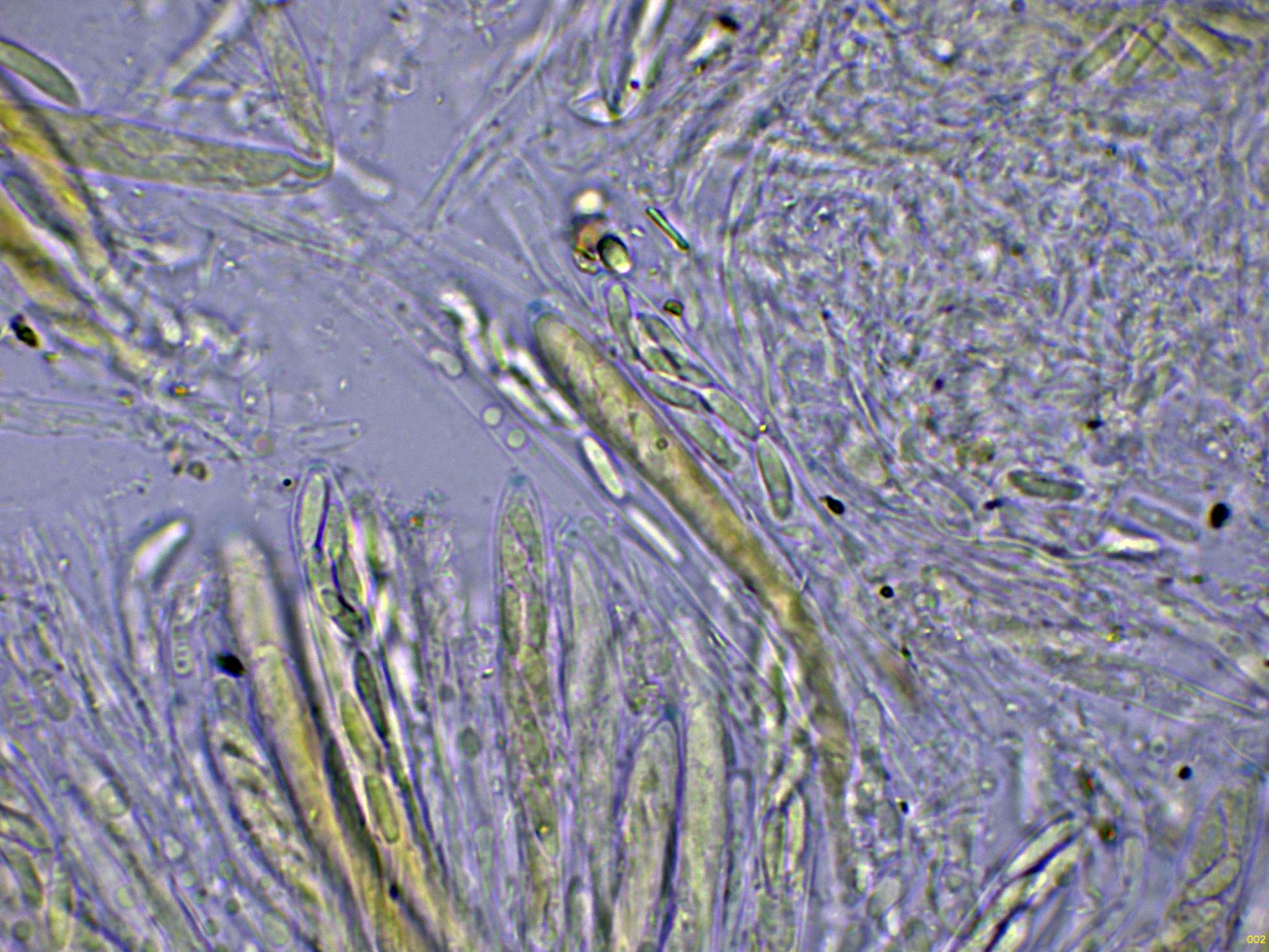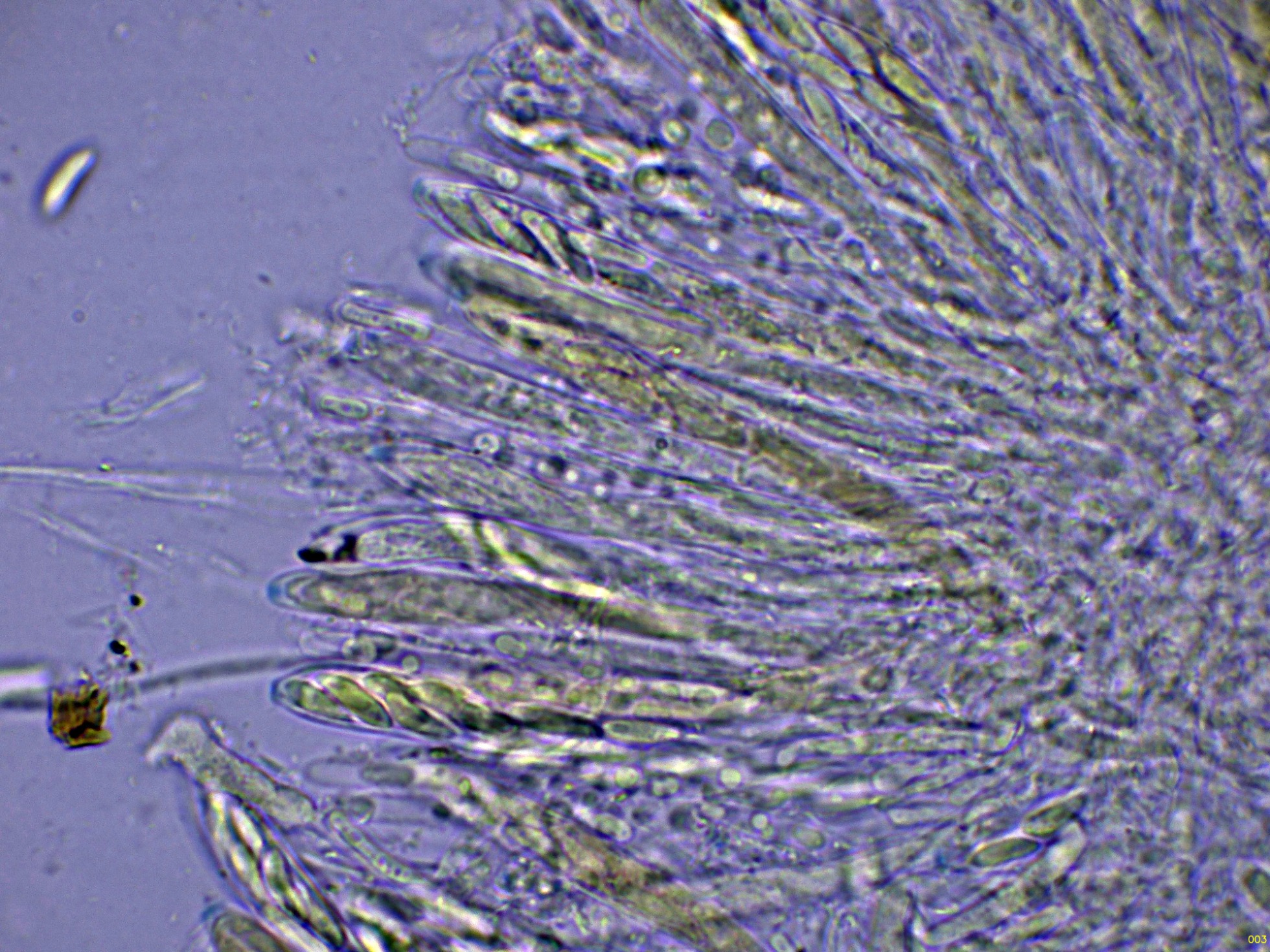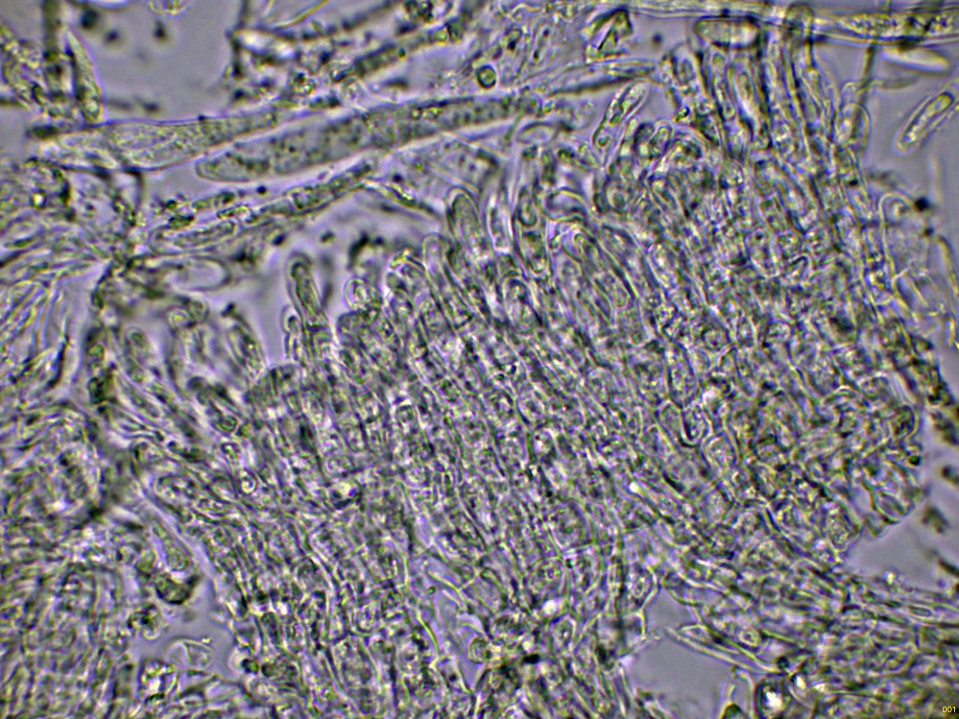 Los ascos en reactivo de Melzer, con una muy discreta reacción amiloide de su diminuto aparato apical: